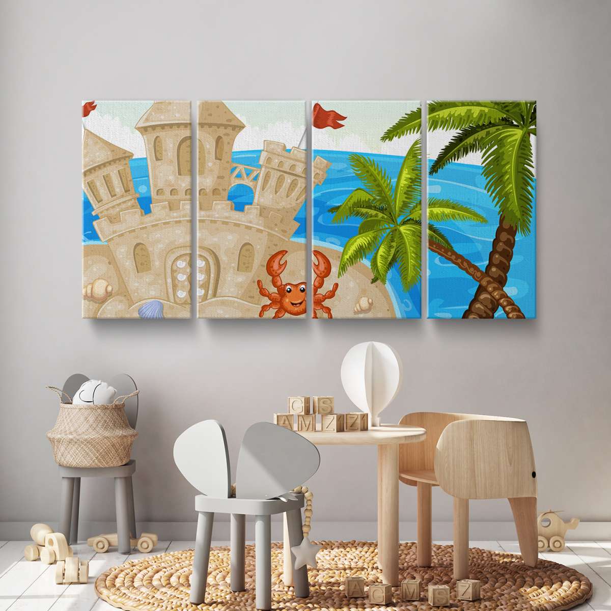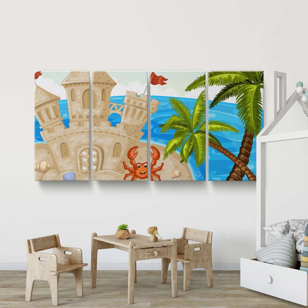 Hrad z písku s krabem - ilustrace