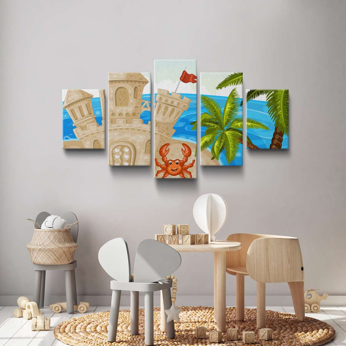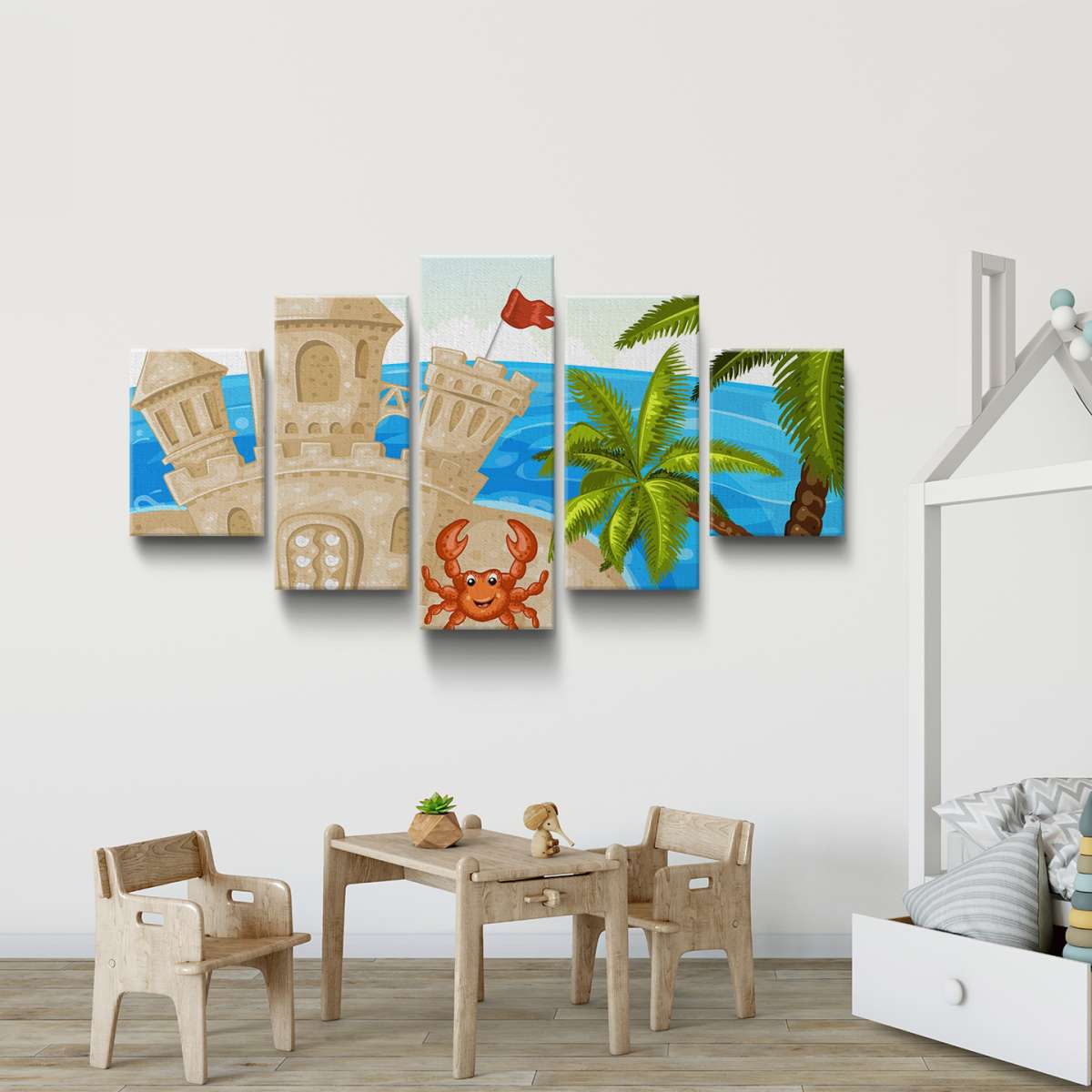 Hrad z písku s krabem - ilustrace