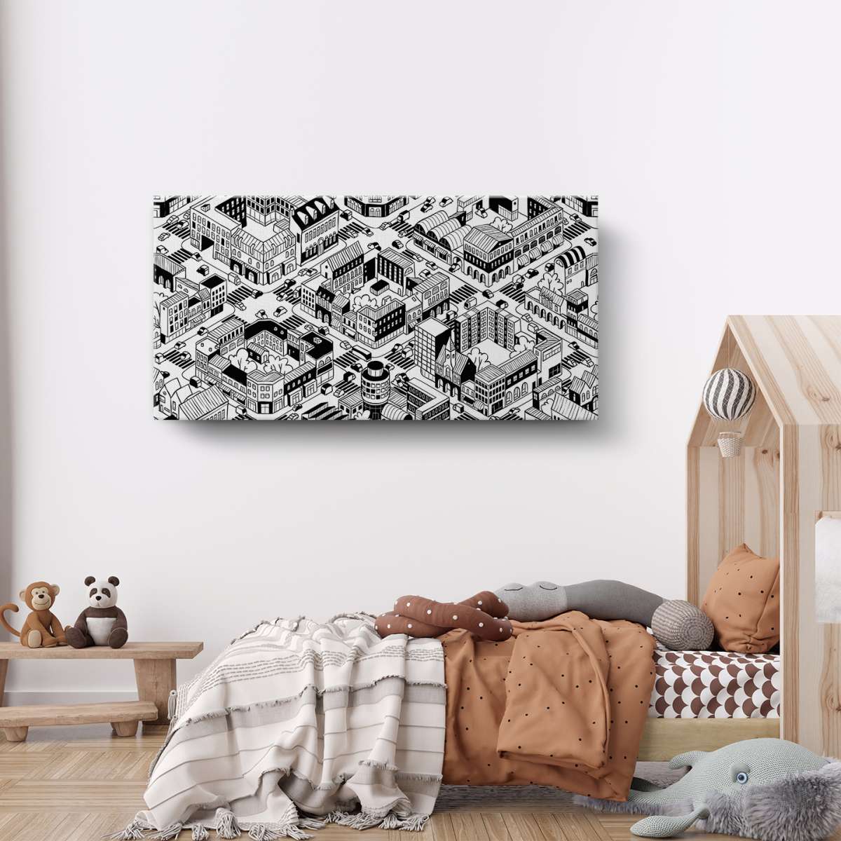 Izometrické město - černobílé ilustrace