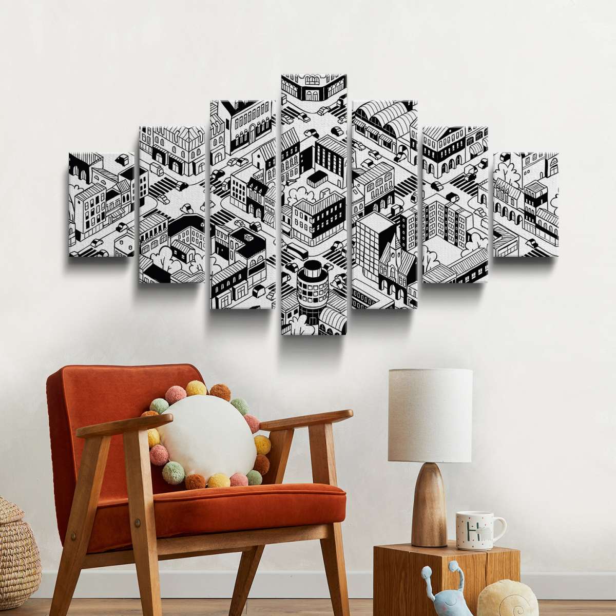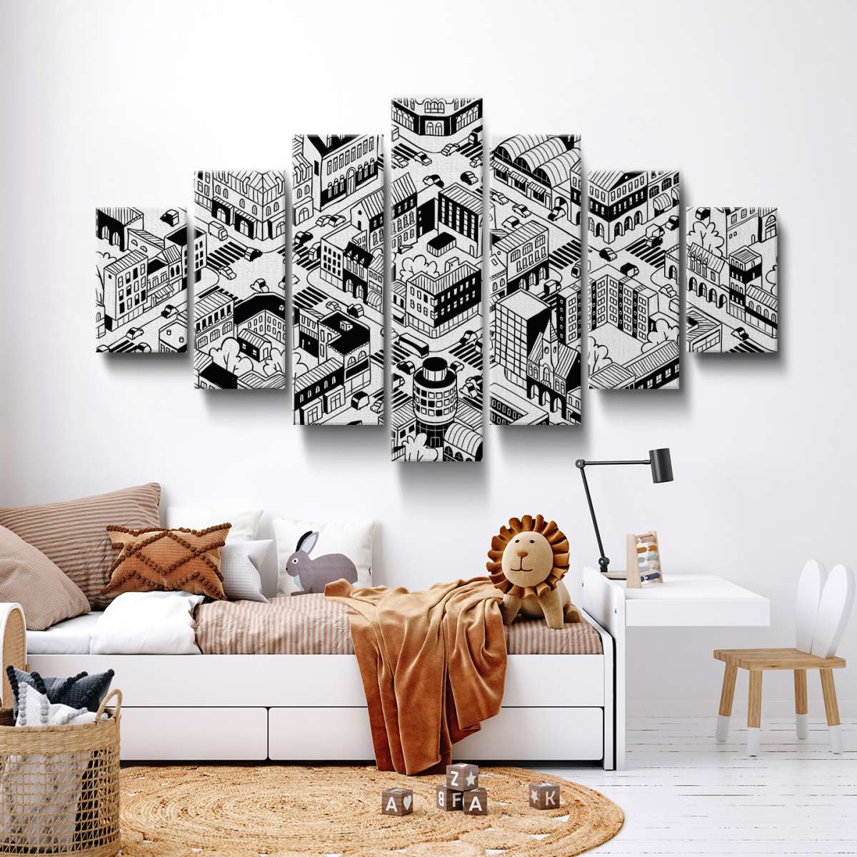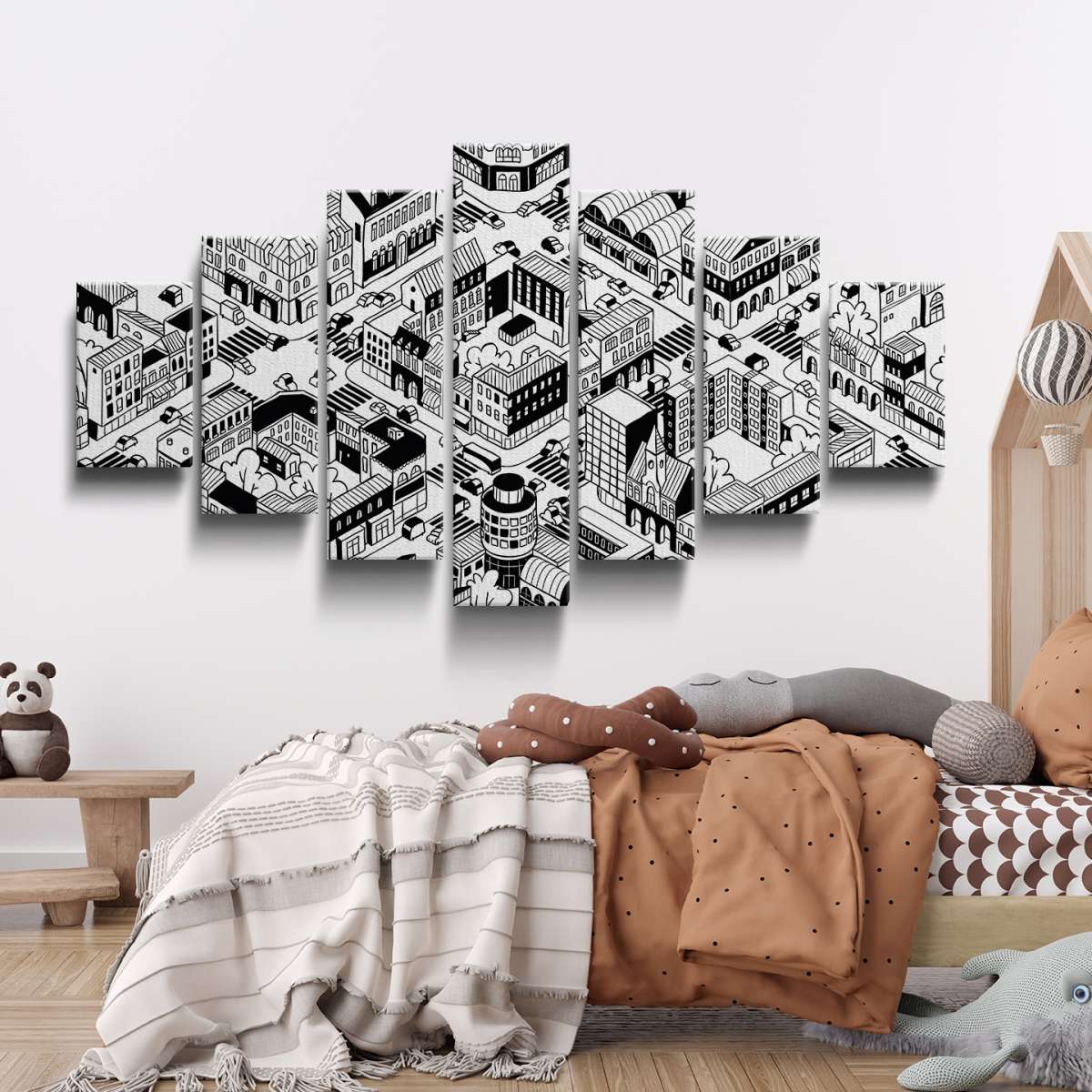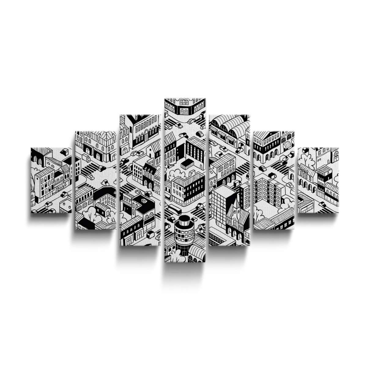 Izometrické město - černobílé ilustrace