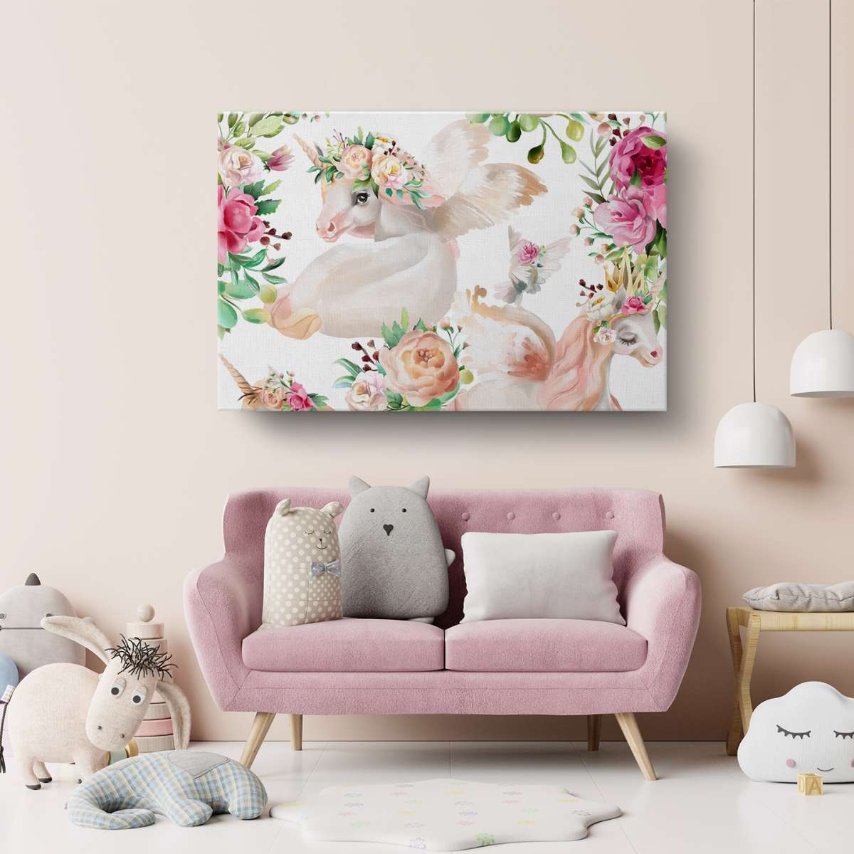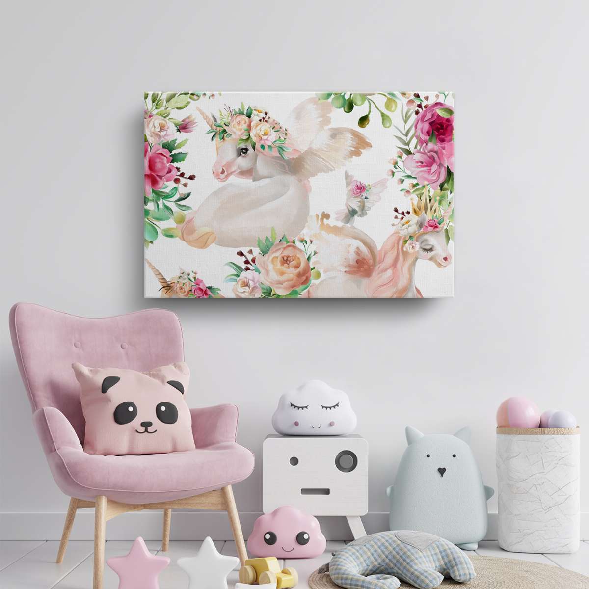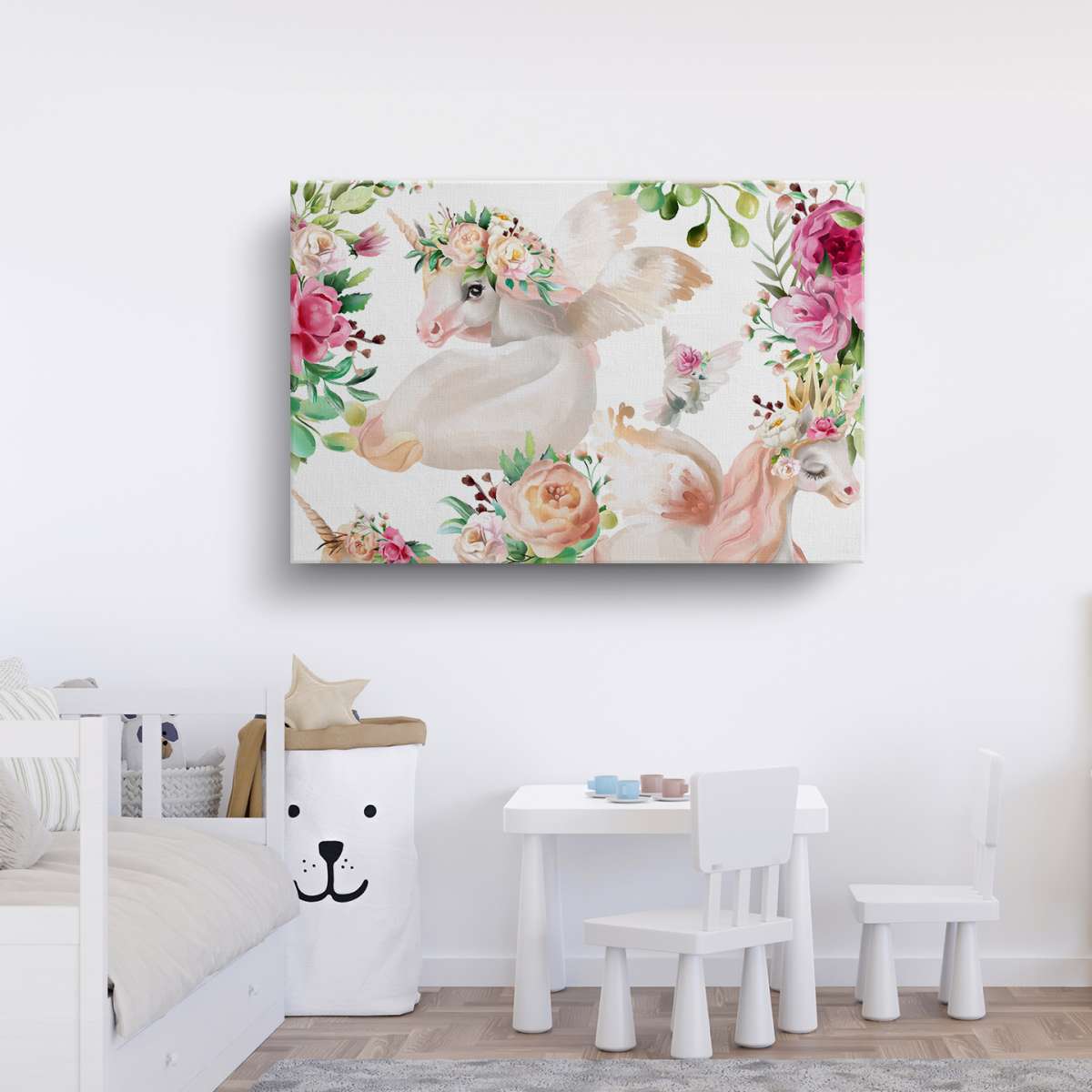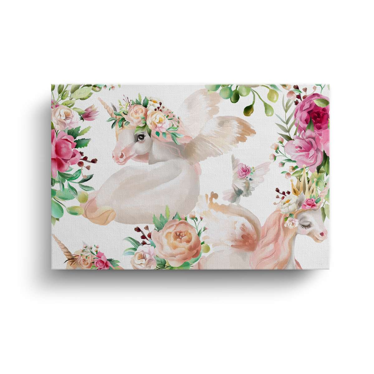 Jednorožci s květinami - akvarel