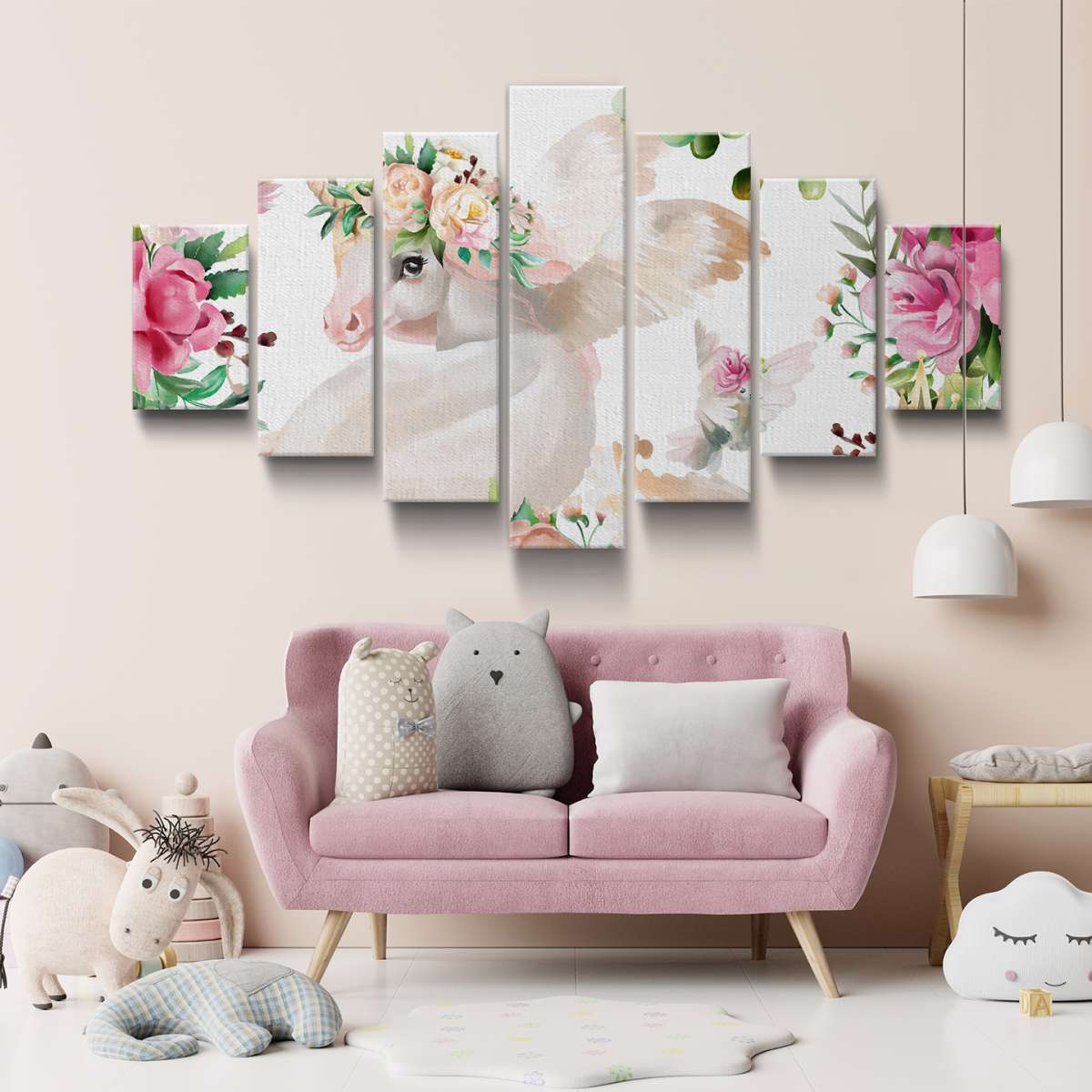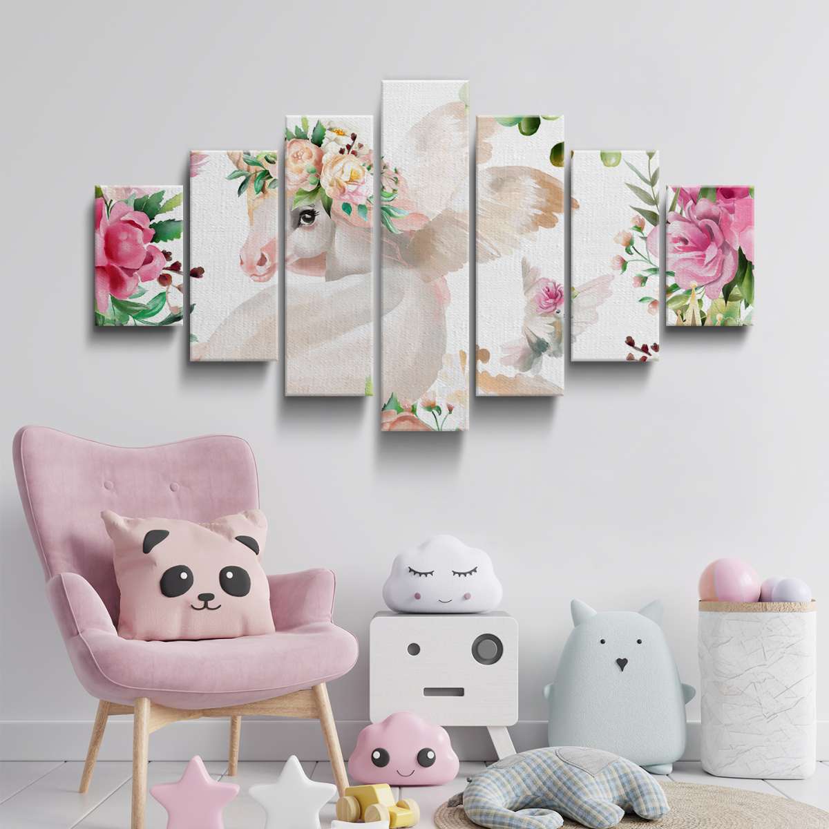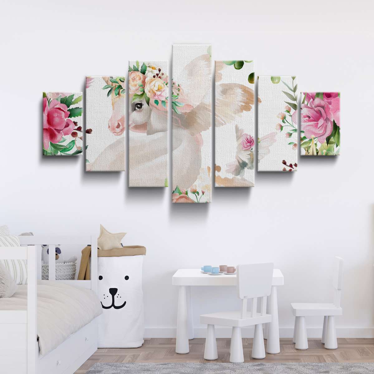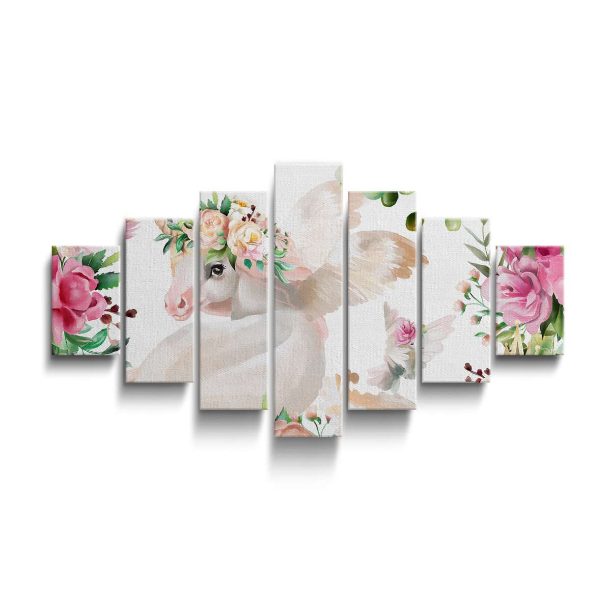 Jednorožci s květinami - akvarel