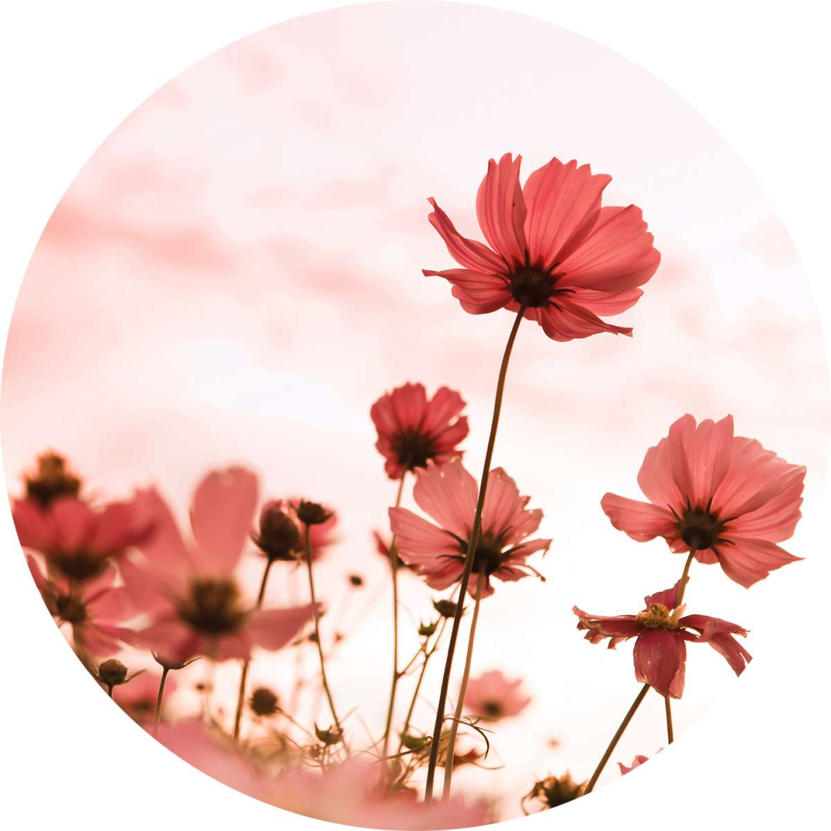 Kosmos květiny při západu slunce