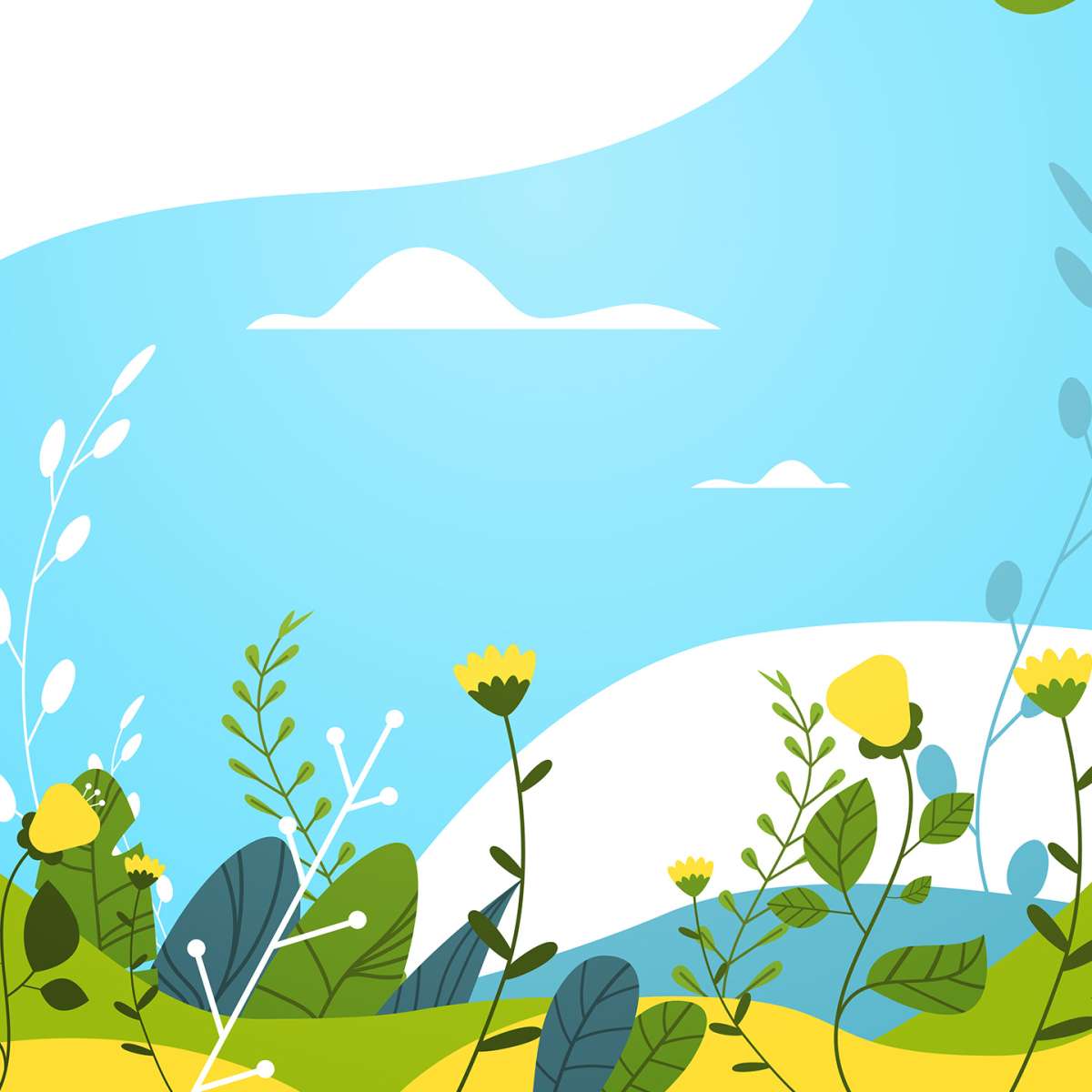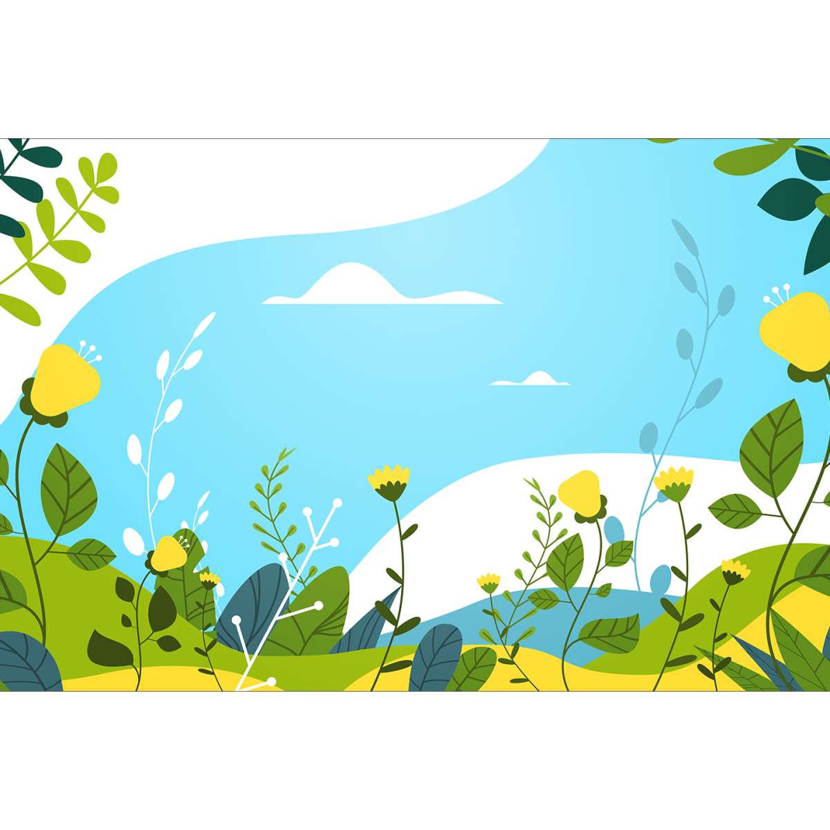 Krajina s květinami a listy - ilustrace