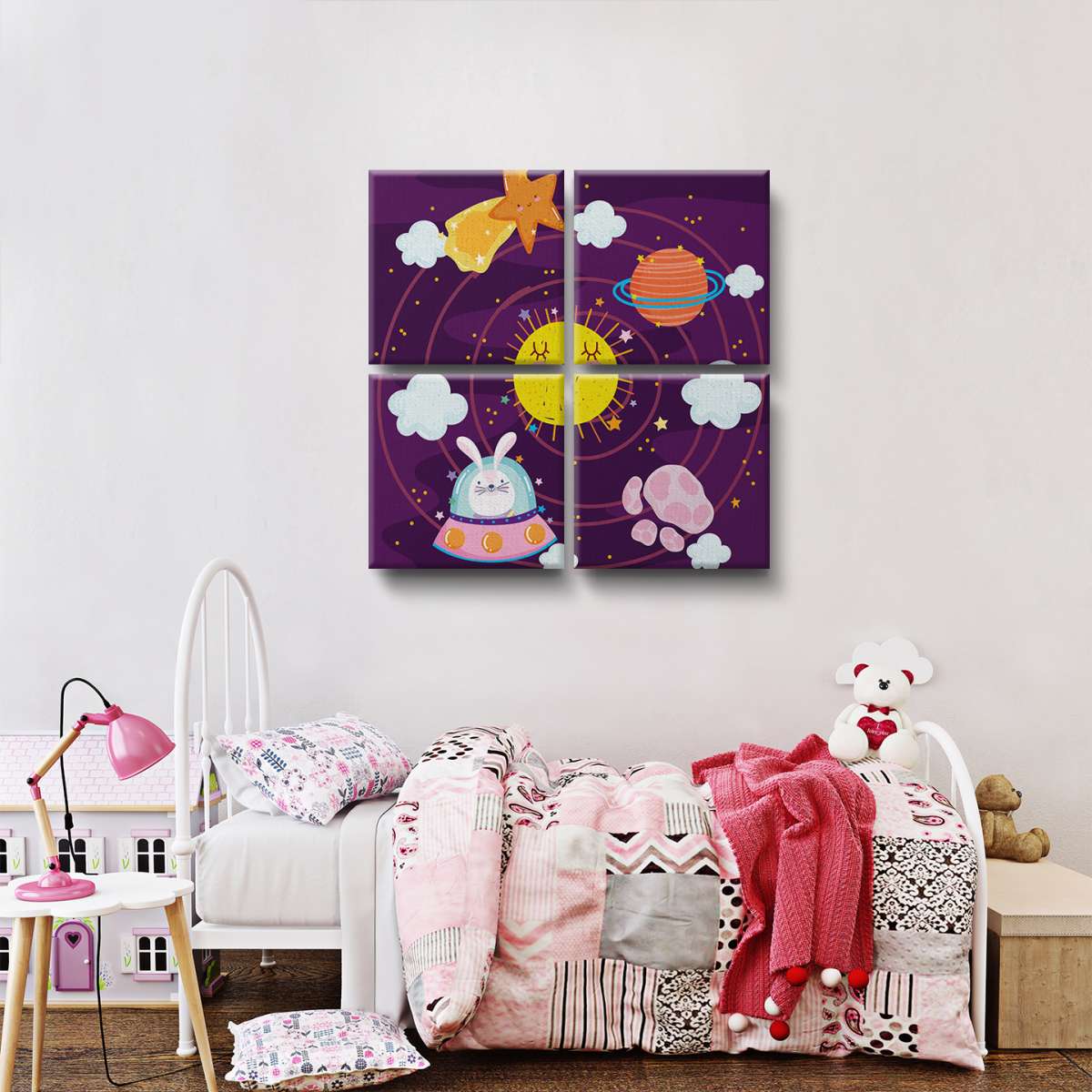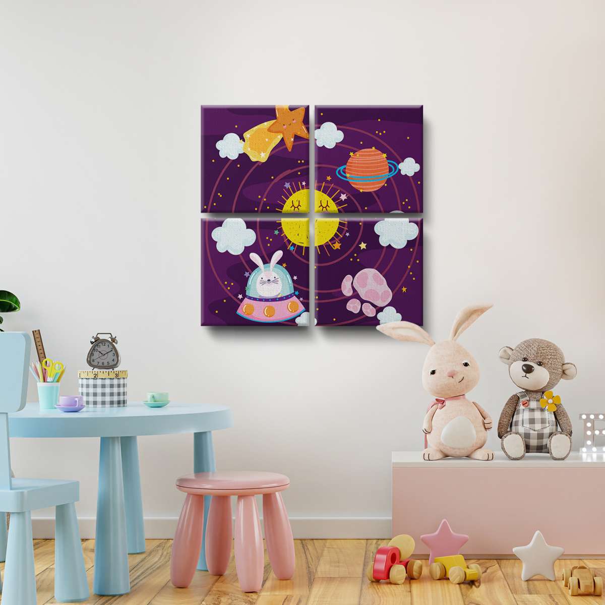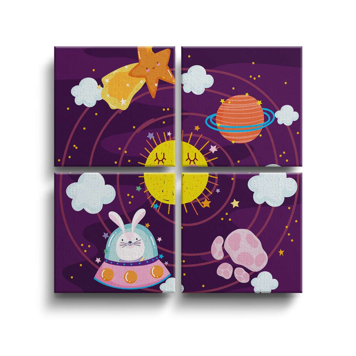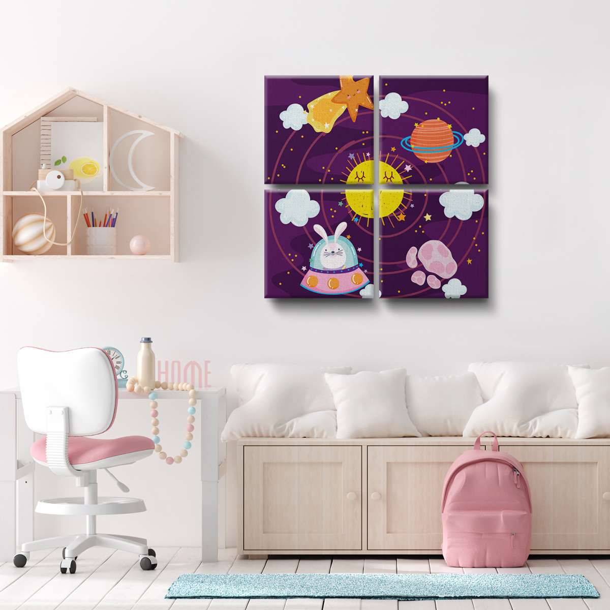Králík v kosmické lodi ve Sluneční soustavě - ilustrace