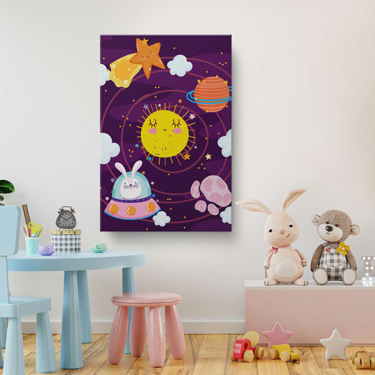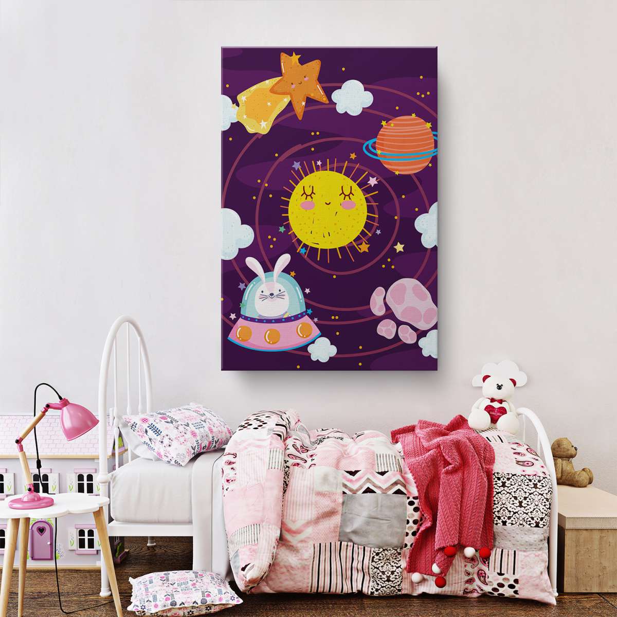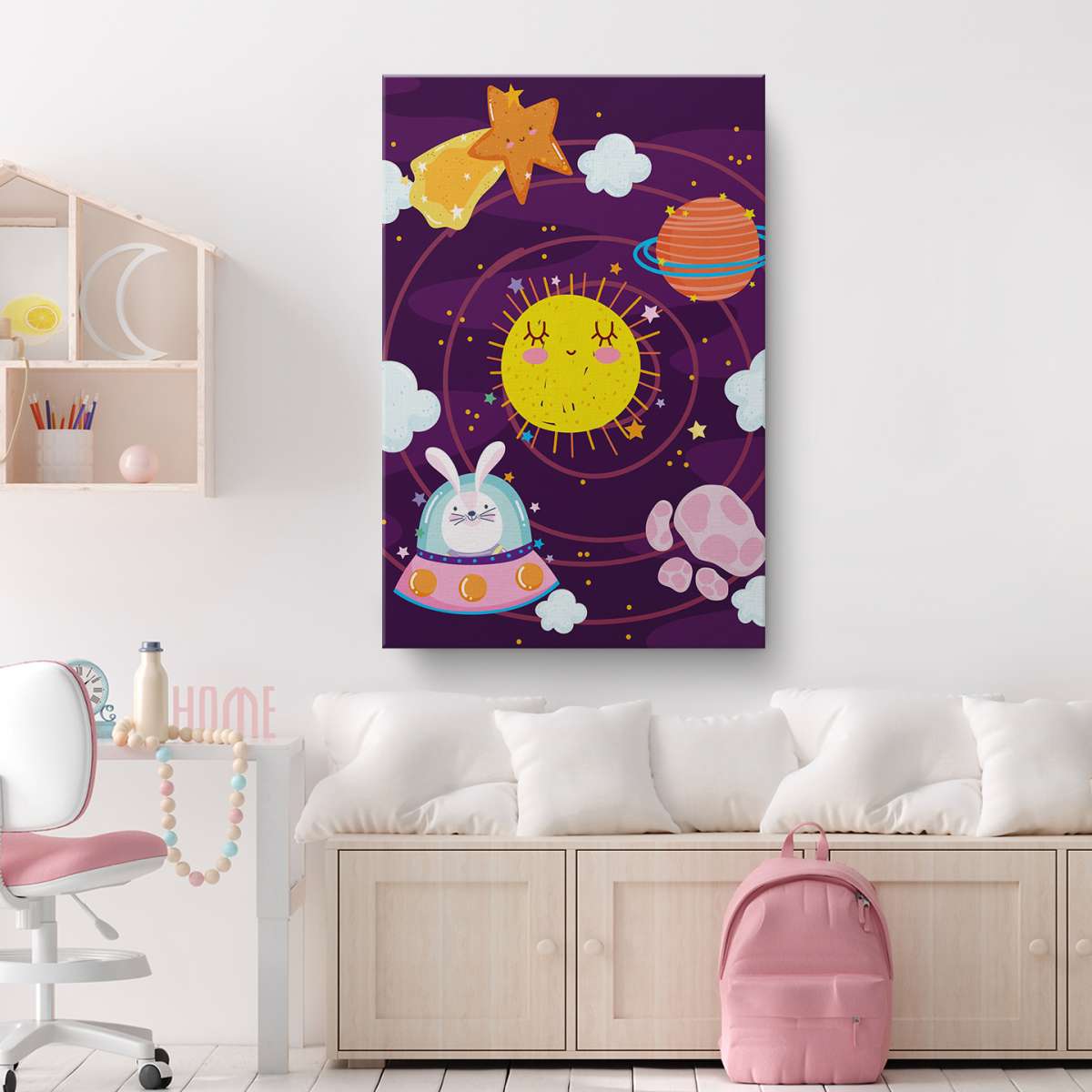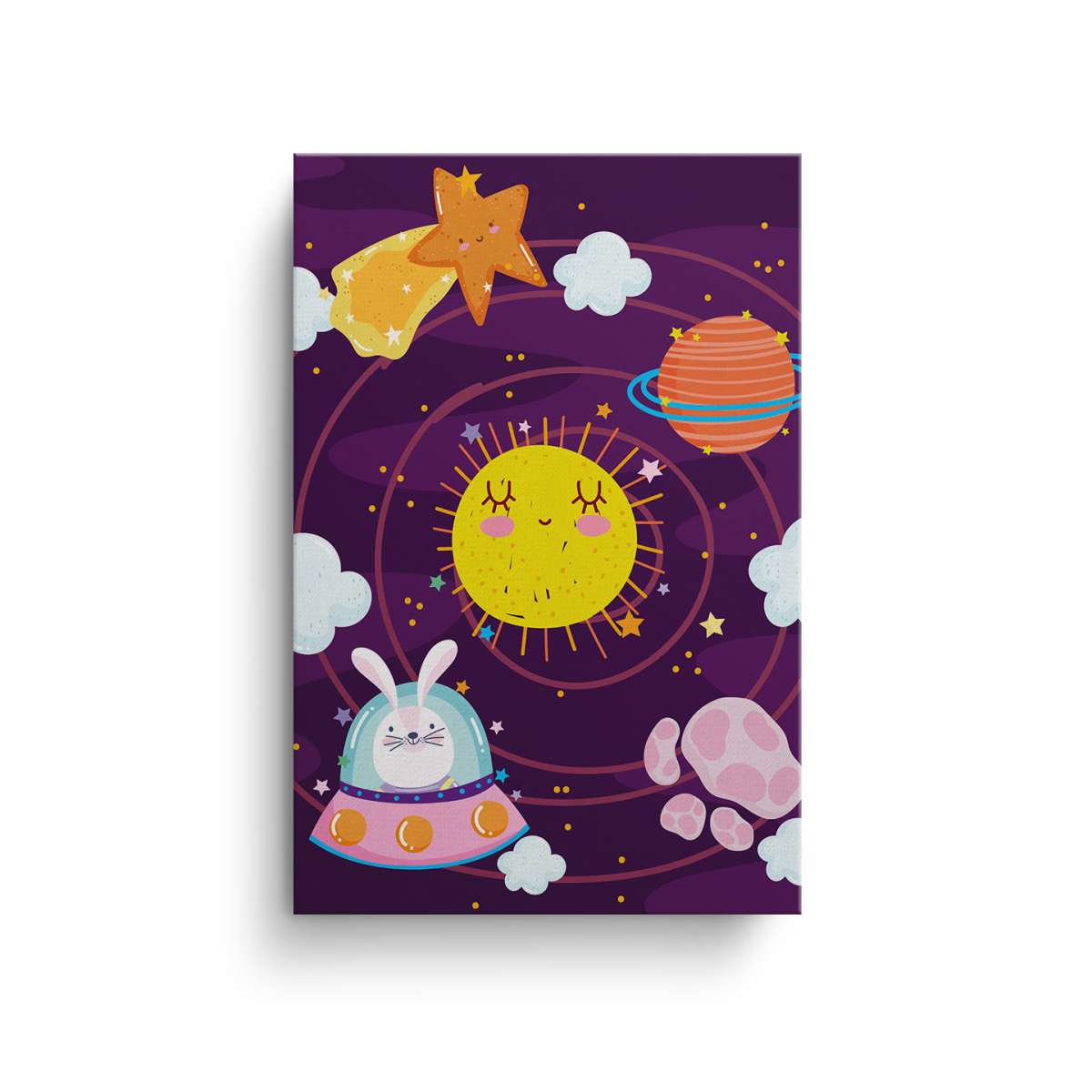 Králík v kosmické lodi ve Sluneční soustavě - ilustrace
