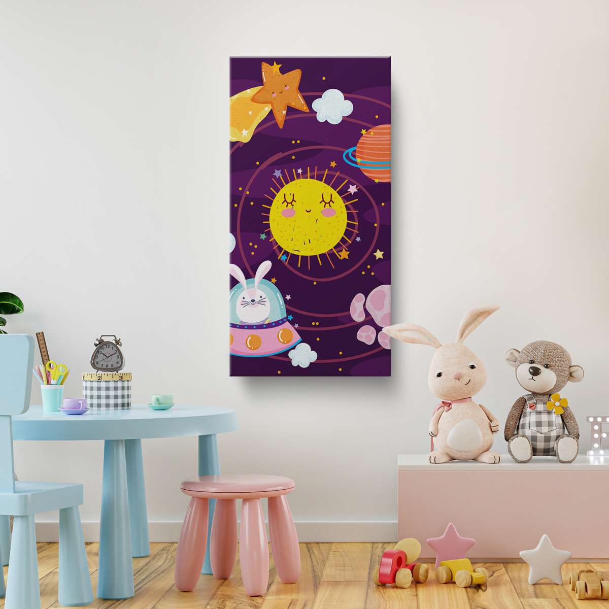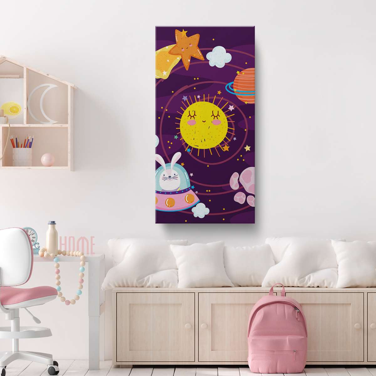 Králík v kosmické lodi ve Sluneční soustavě - ilustrace