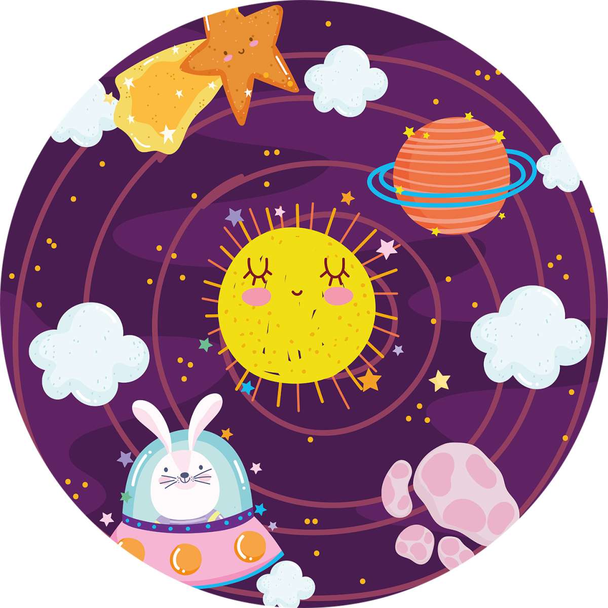 Králík v kosmické lodi ve Sluneční soustavě - ilustrace