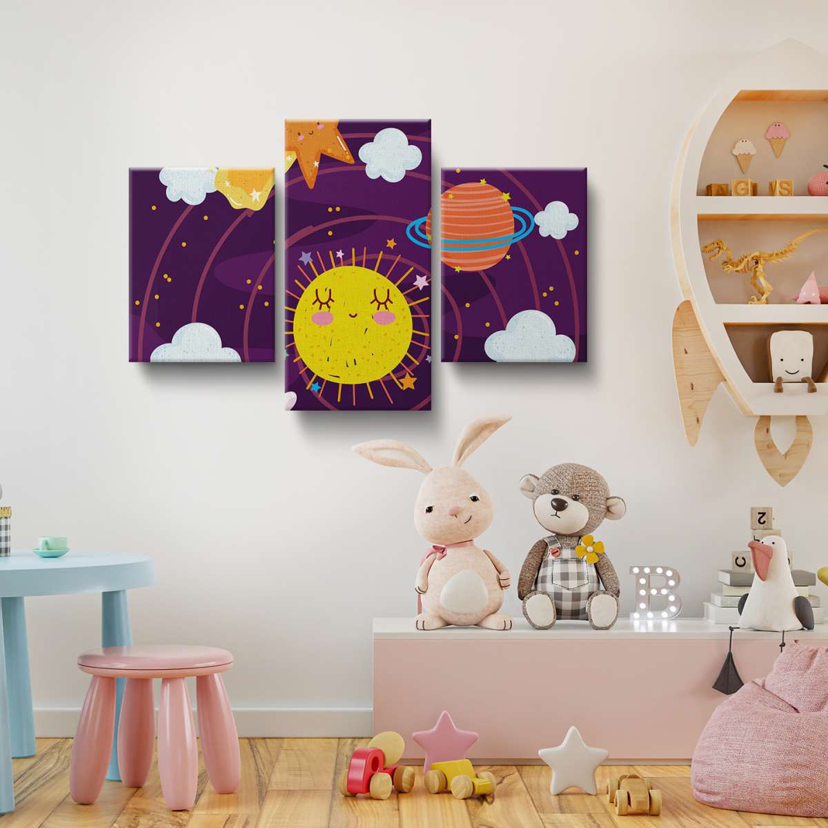 Králík v kosmické lodi ve Sluneční soustavě - ilustrace