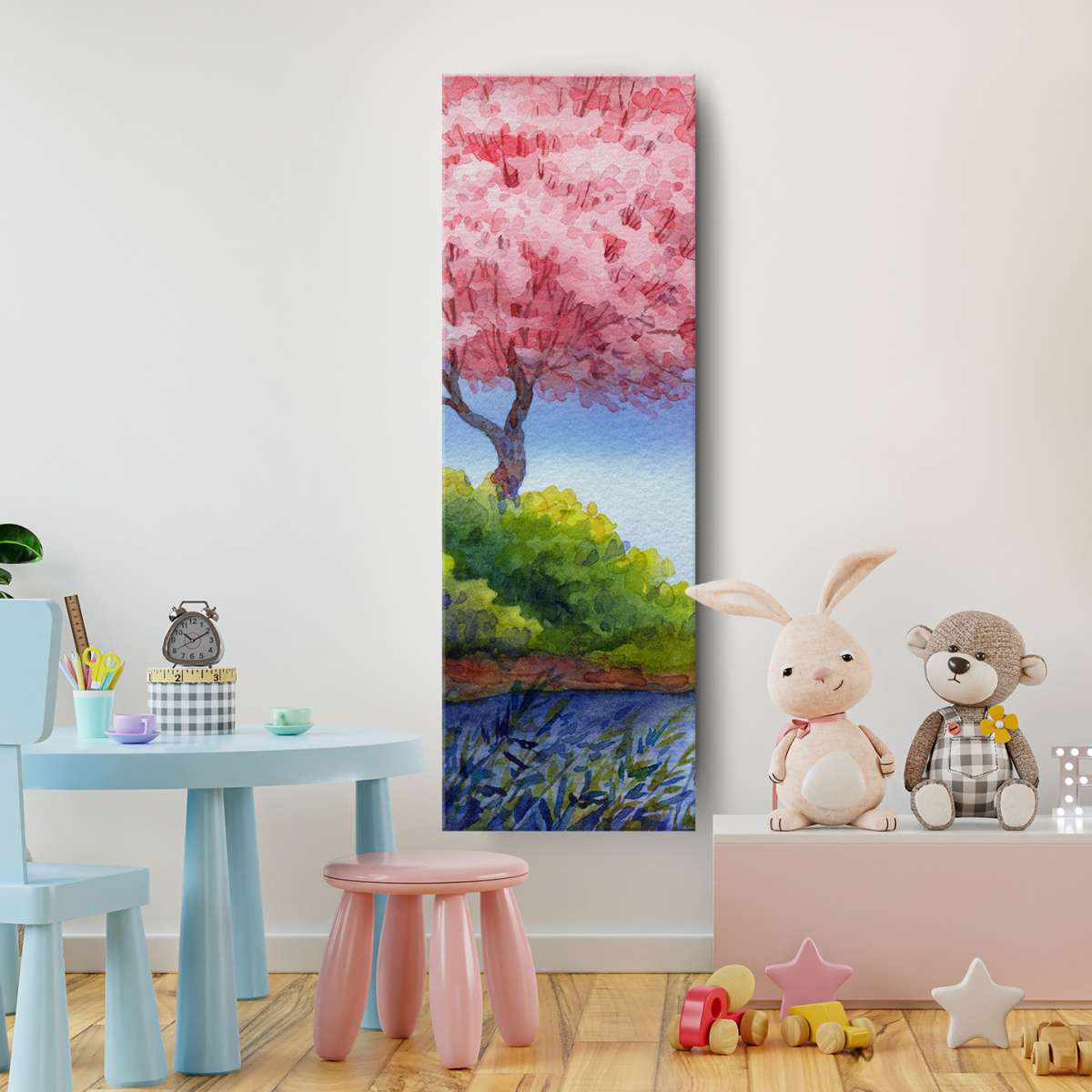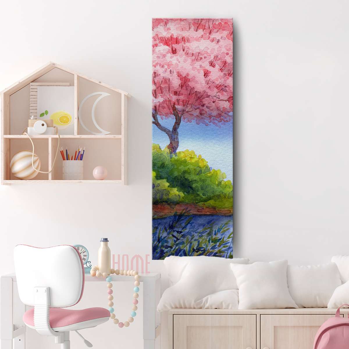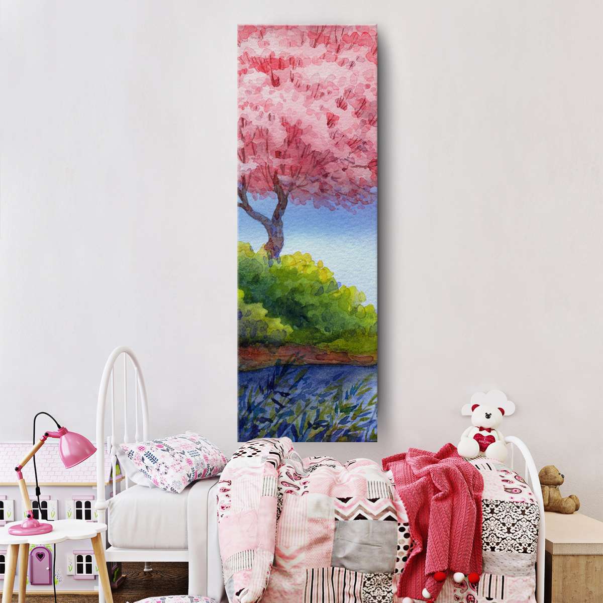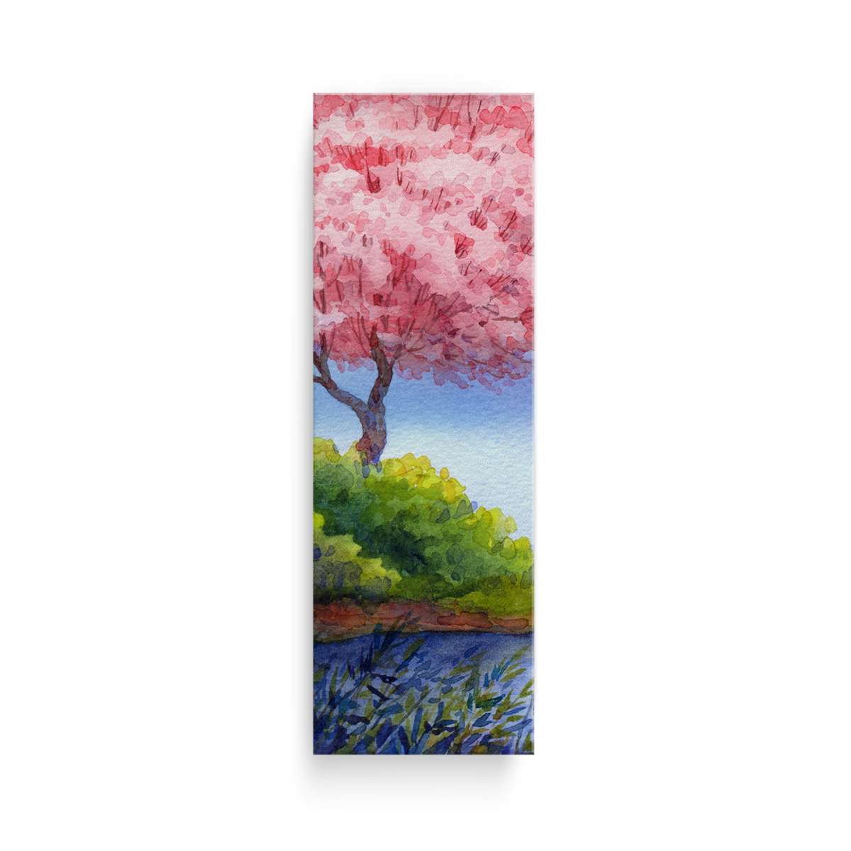 Kvetoucí stromy sakury nad jezerem - akvarel