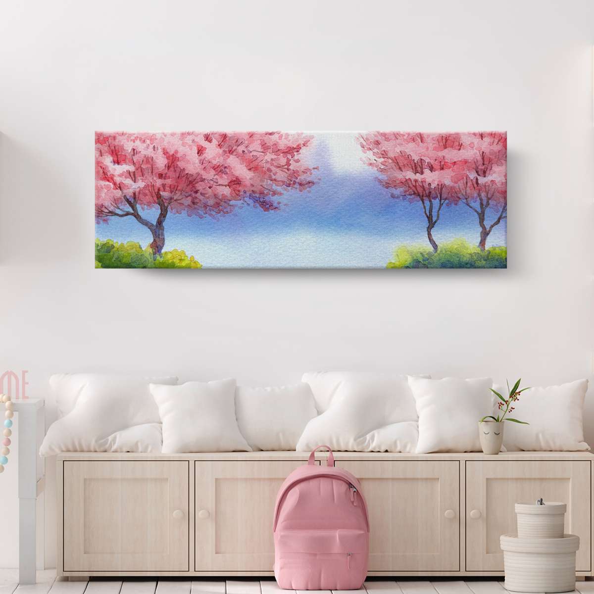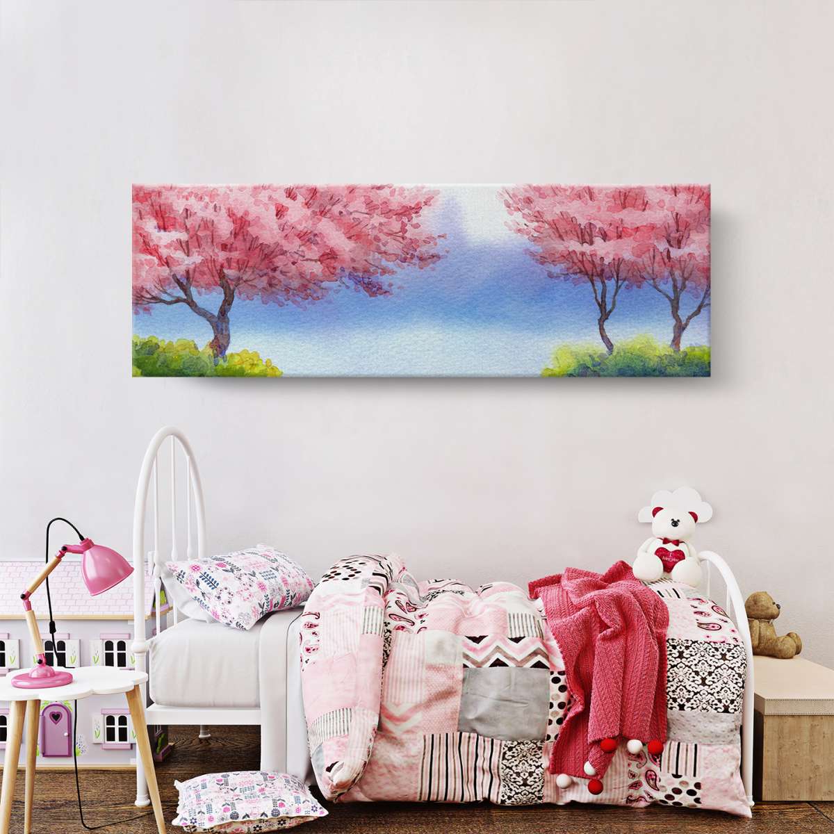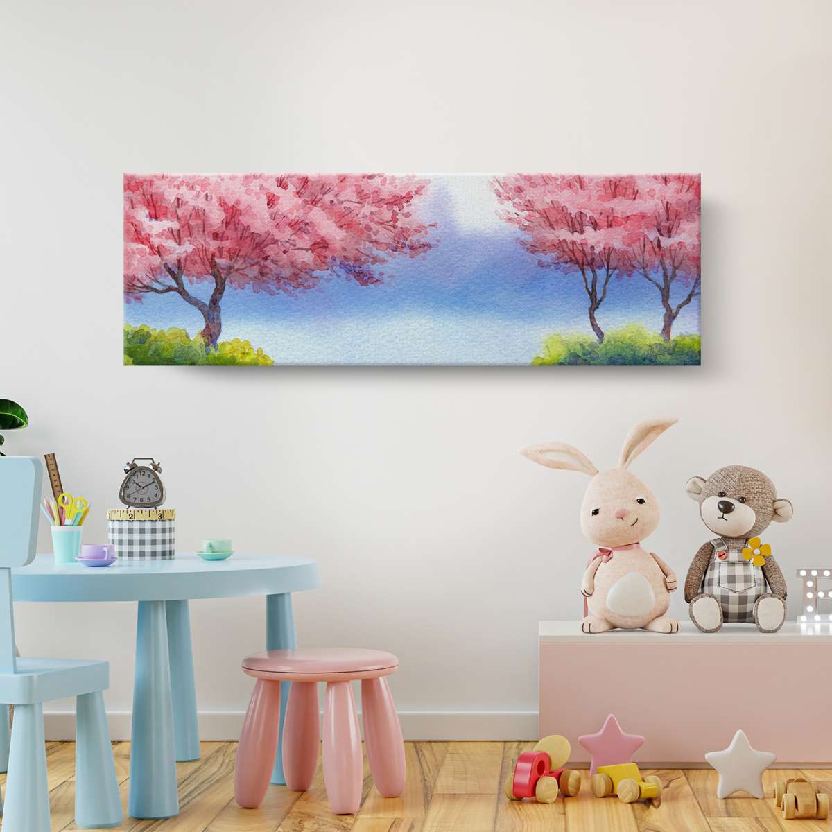 Kvetoucí stromy sakury nad jezerem - akvarel