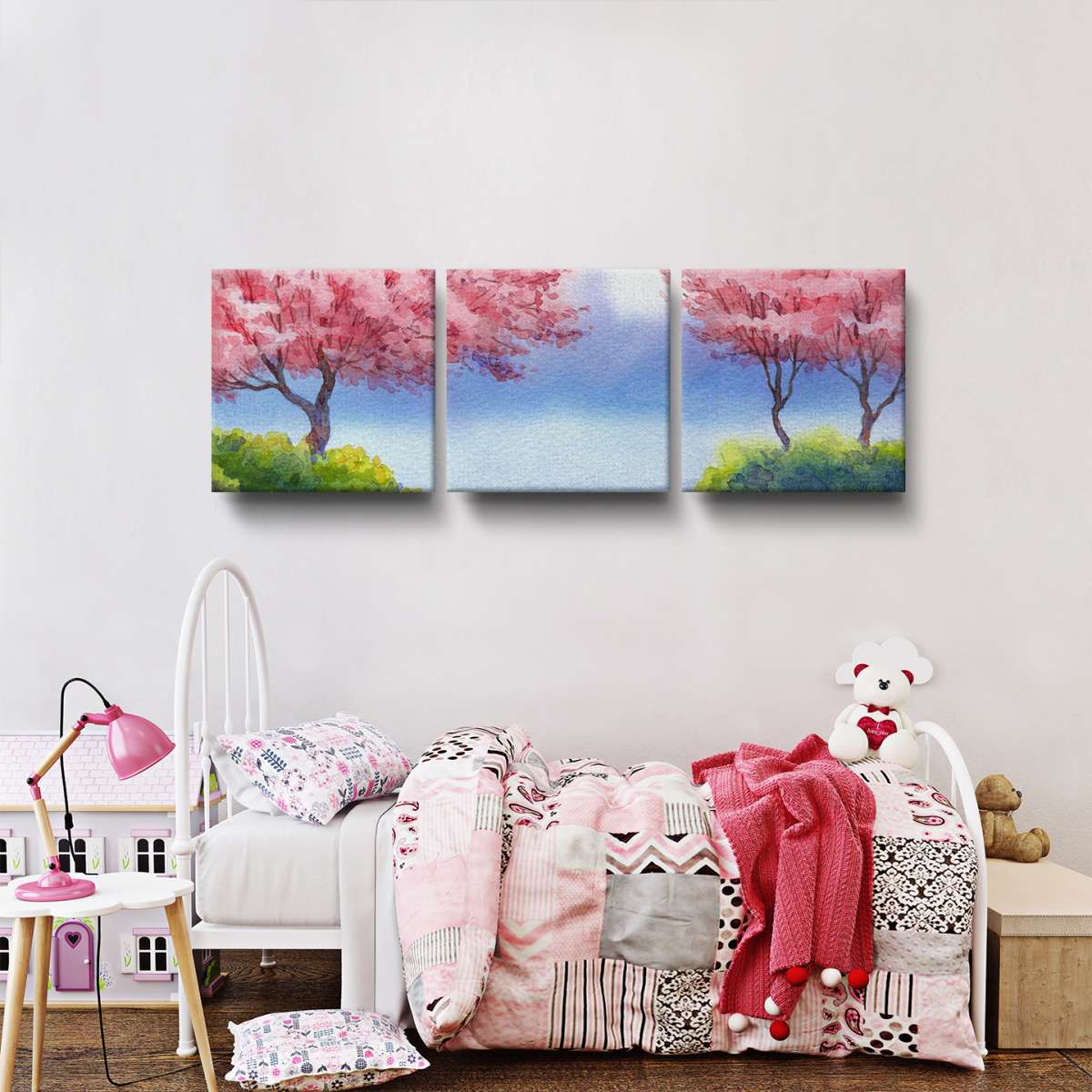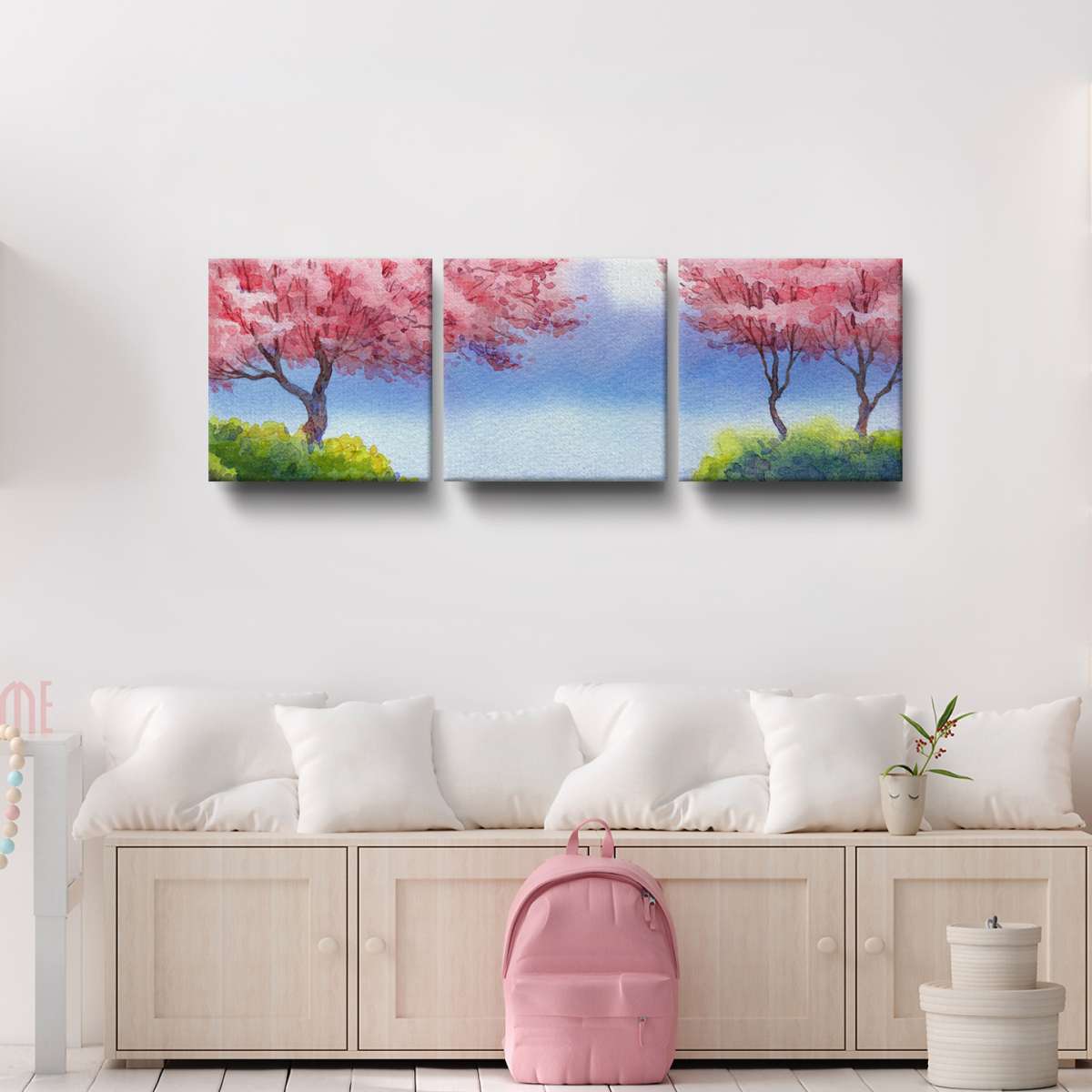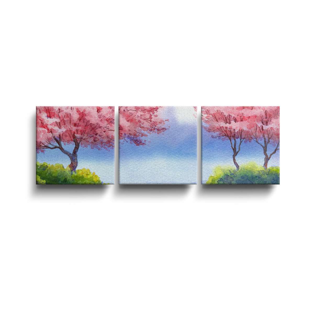 Kvetoucí stromy sakury nad jezerem - akvarel