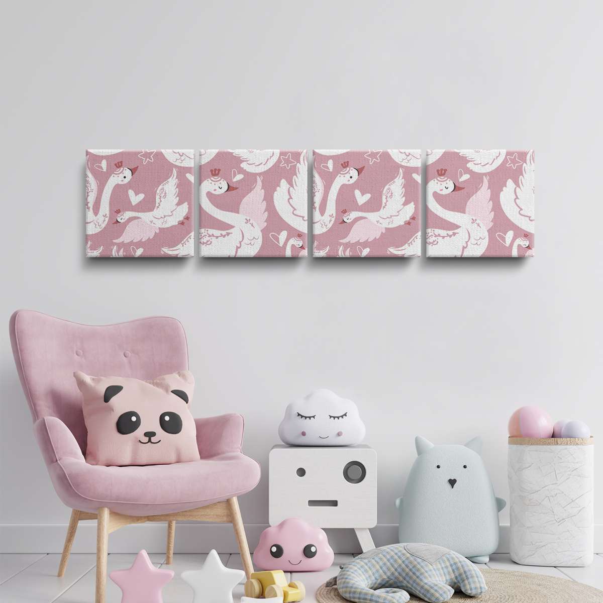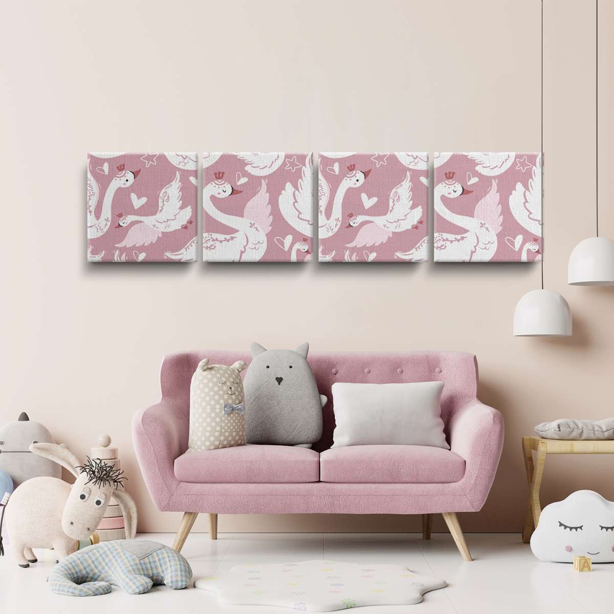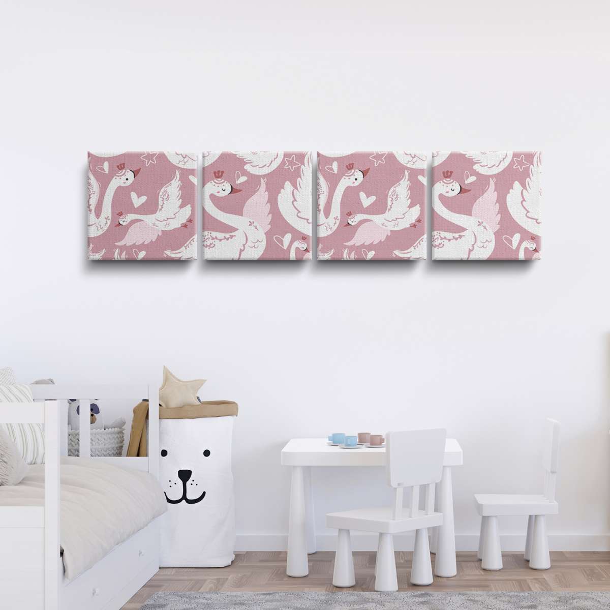 Labutě a srdíčka - růžový vzor