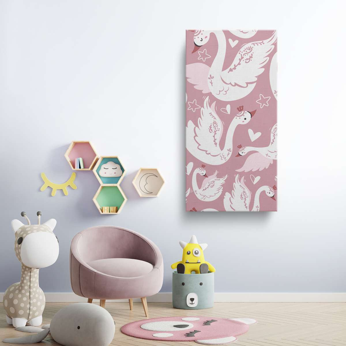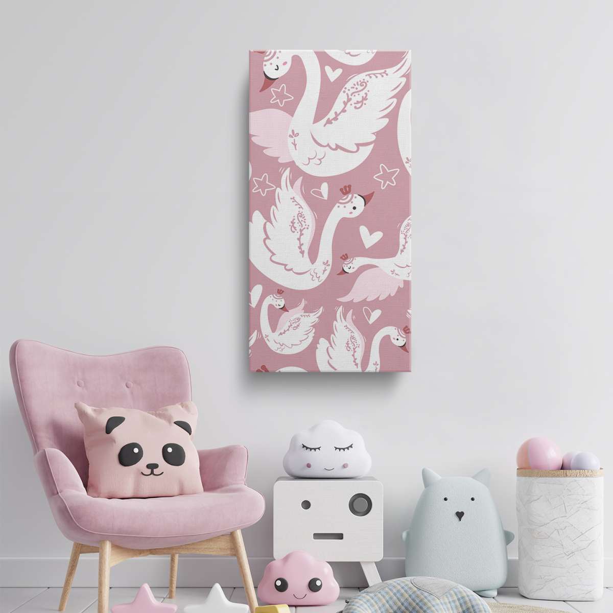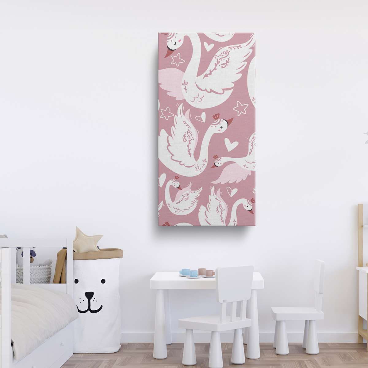 Labutě a srdíčka - růžový vzor
