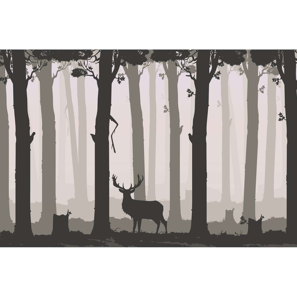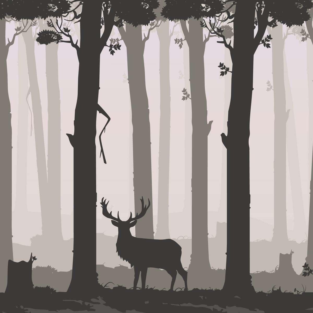 Listnatý les s jelenem - ilustrace