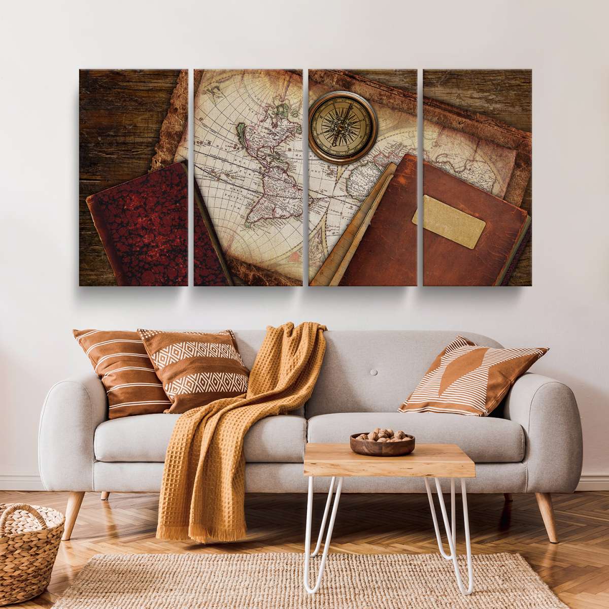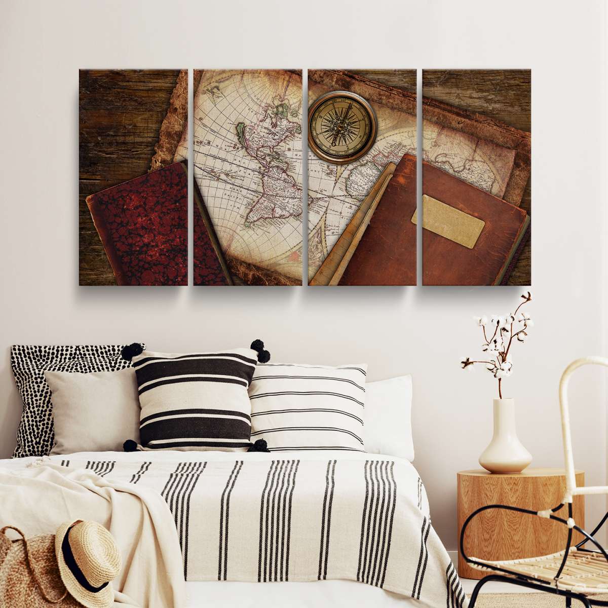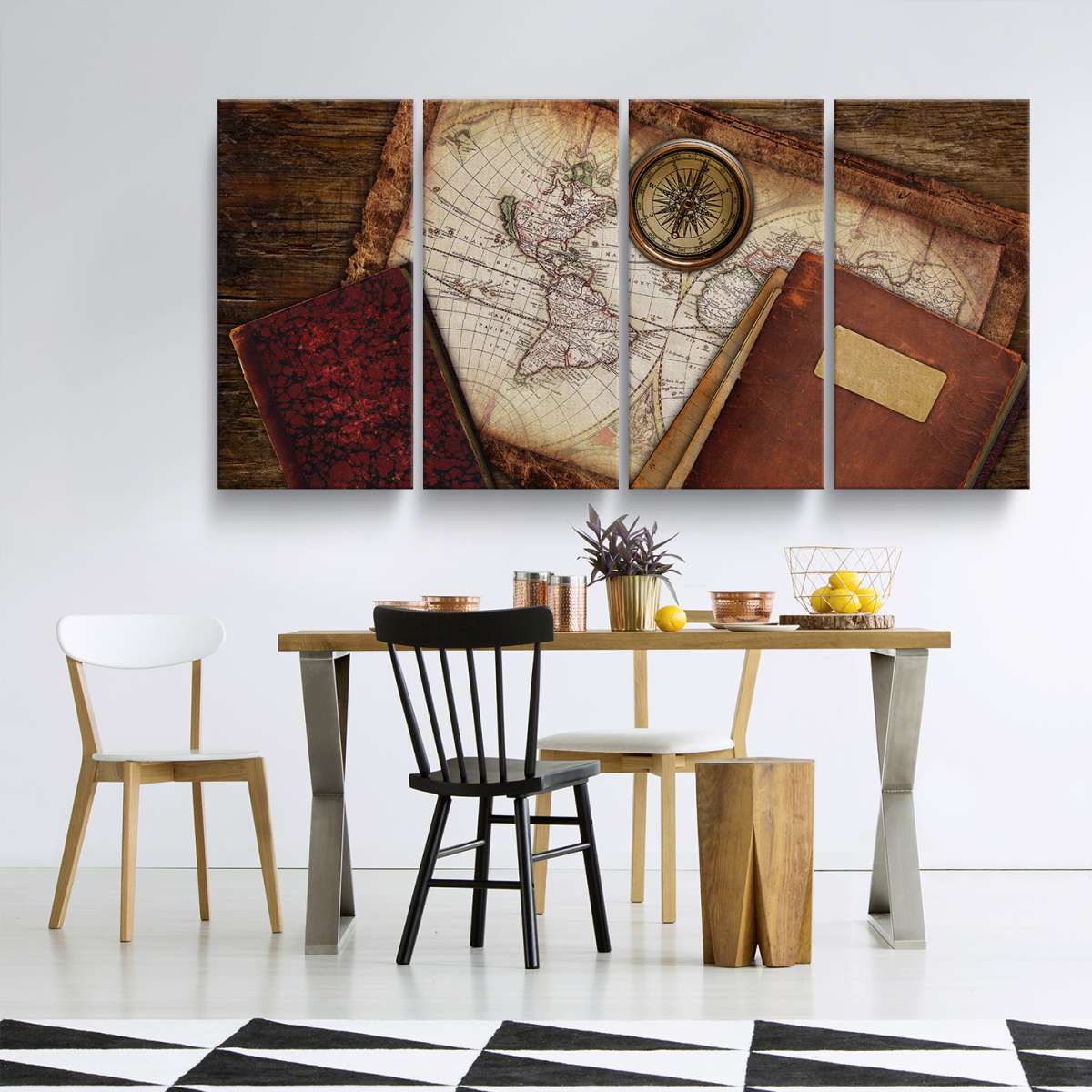 Mapa s knihami a kompasem