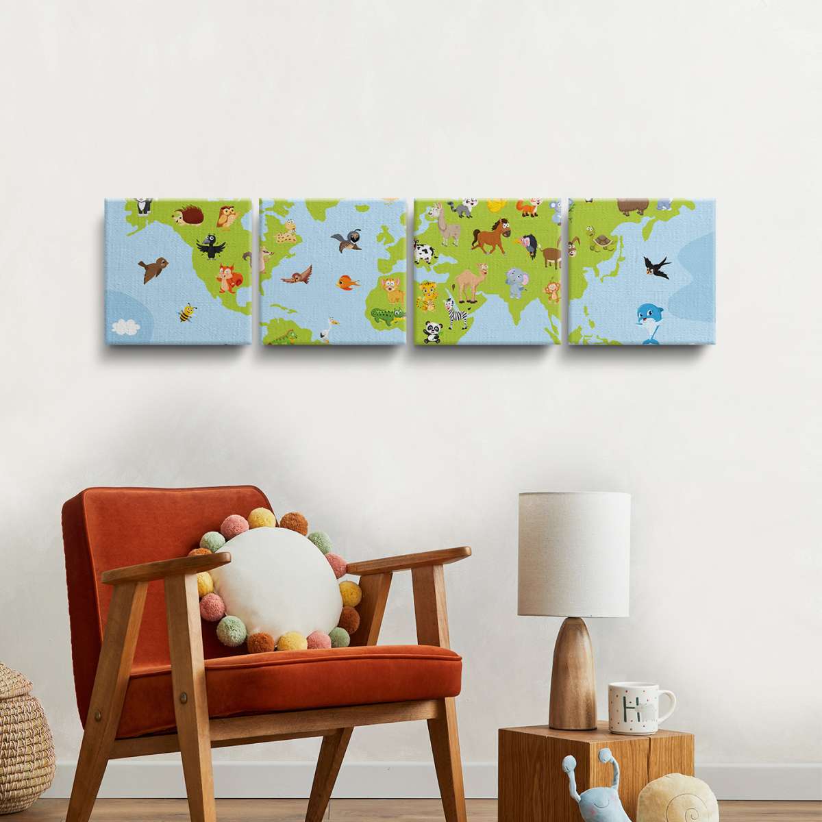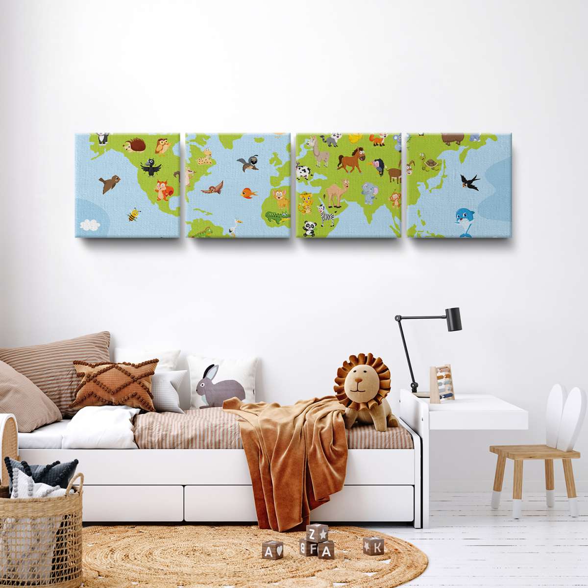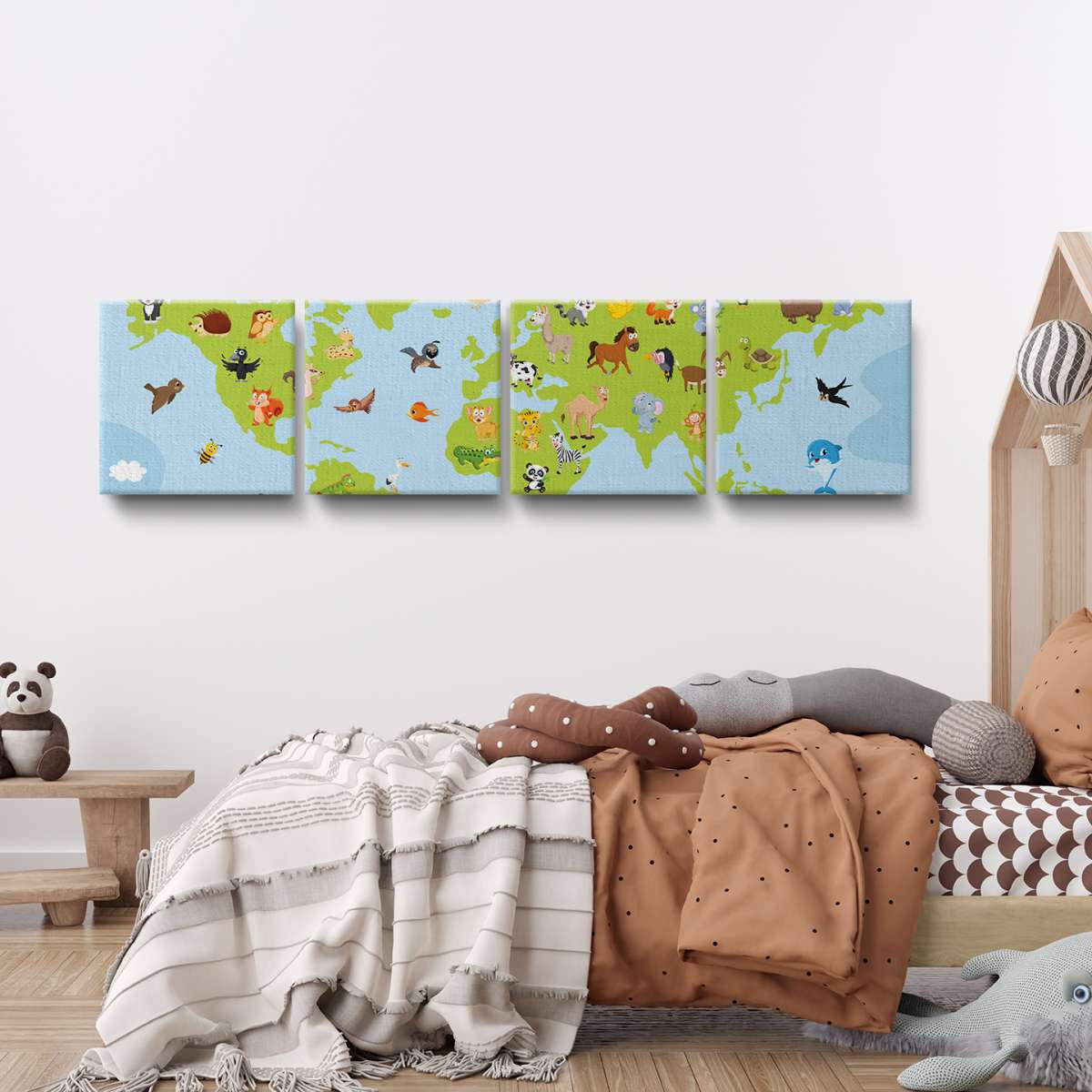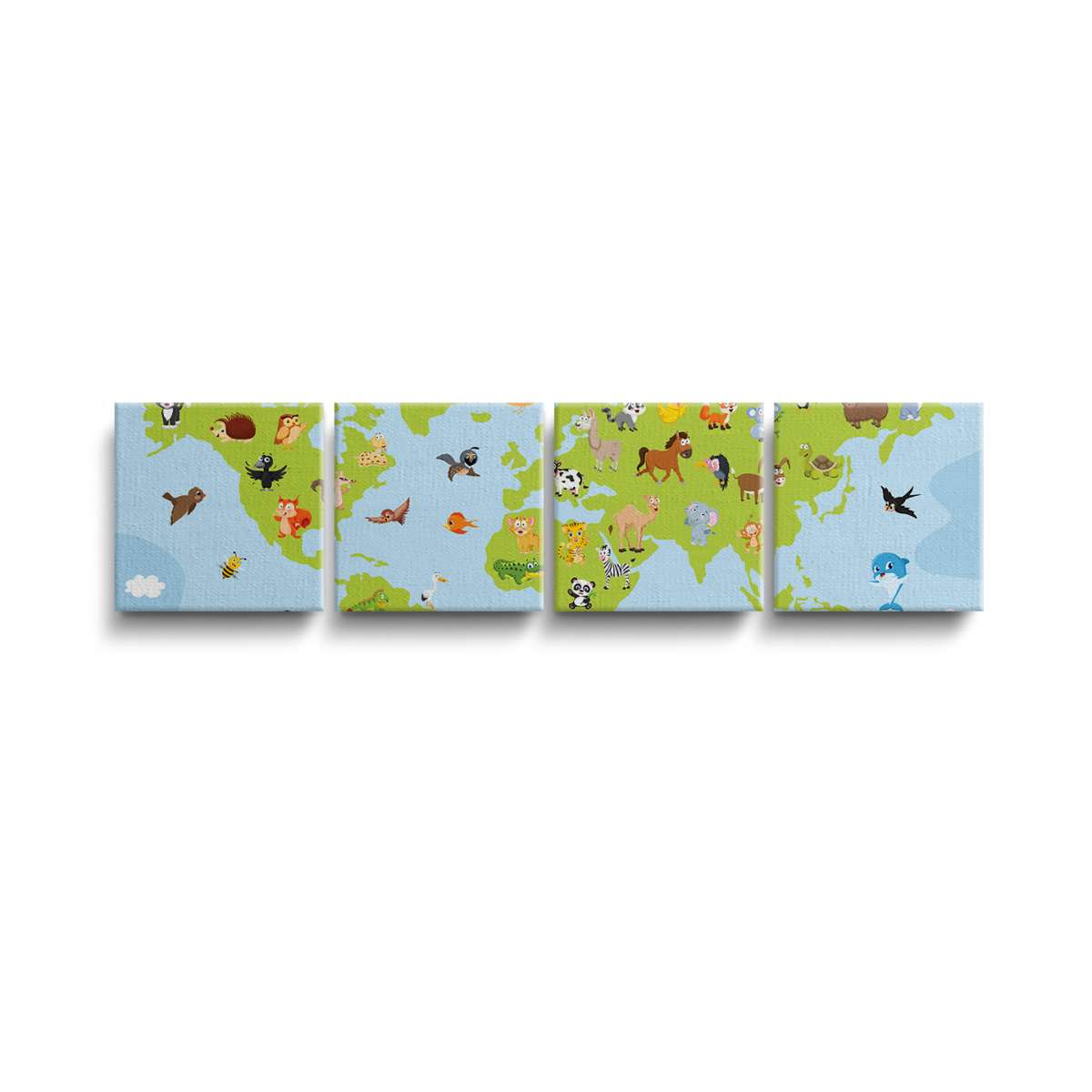Mapa světa pro děti s kreslenými zvířátky - ilustrace