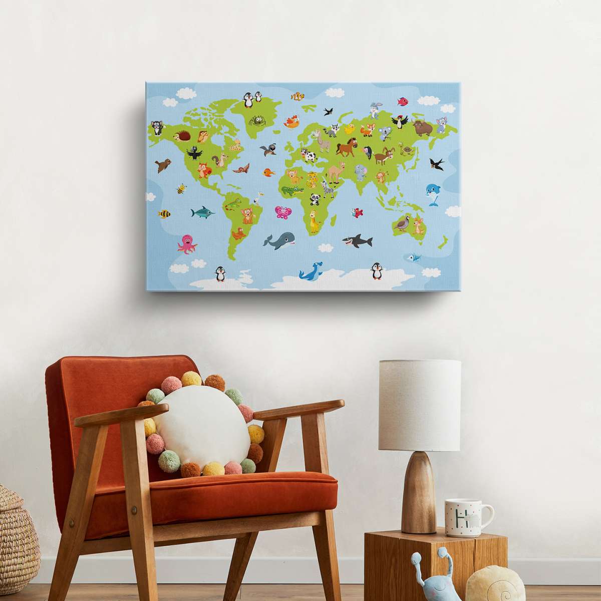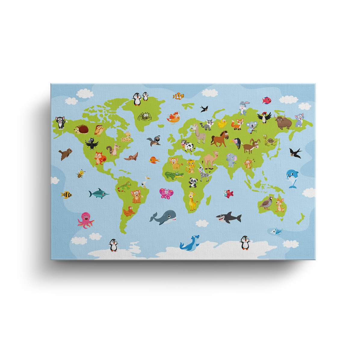 Mapa světa pro děti s kreslenými zvířátky - ilustrace