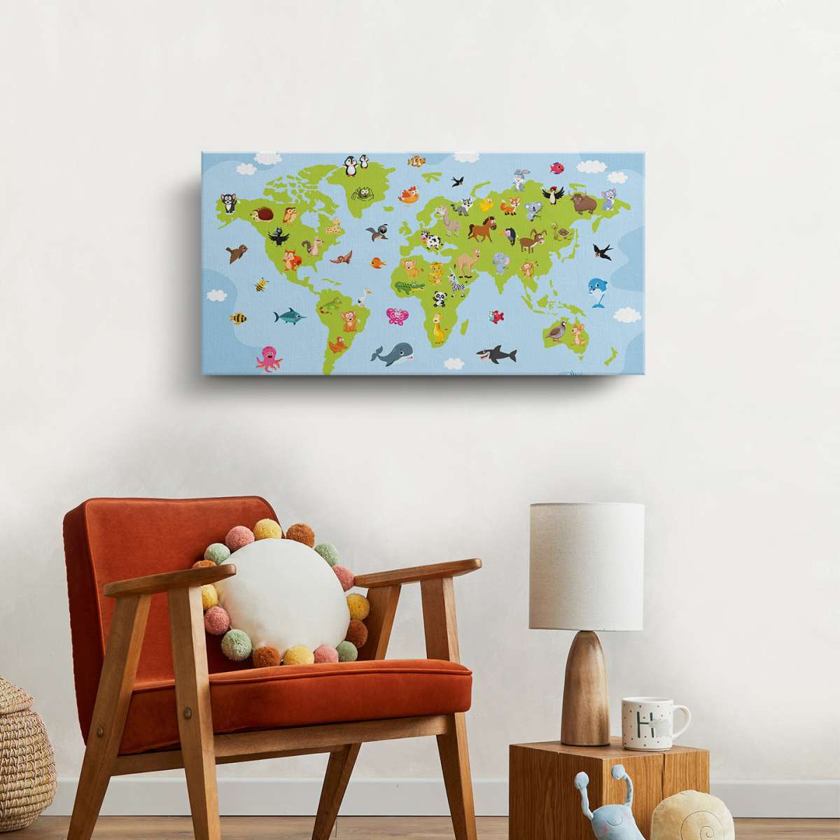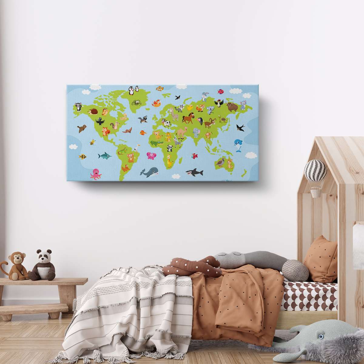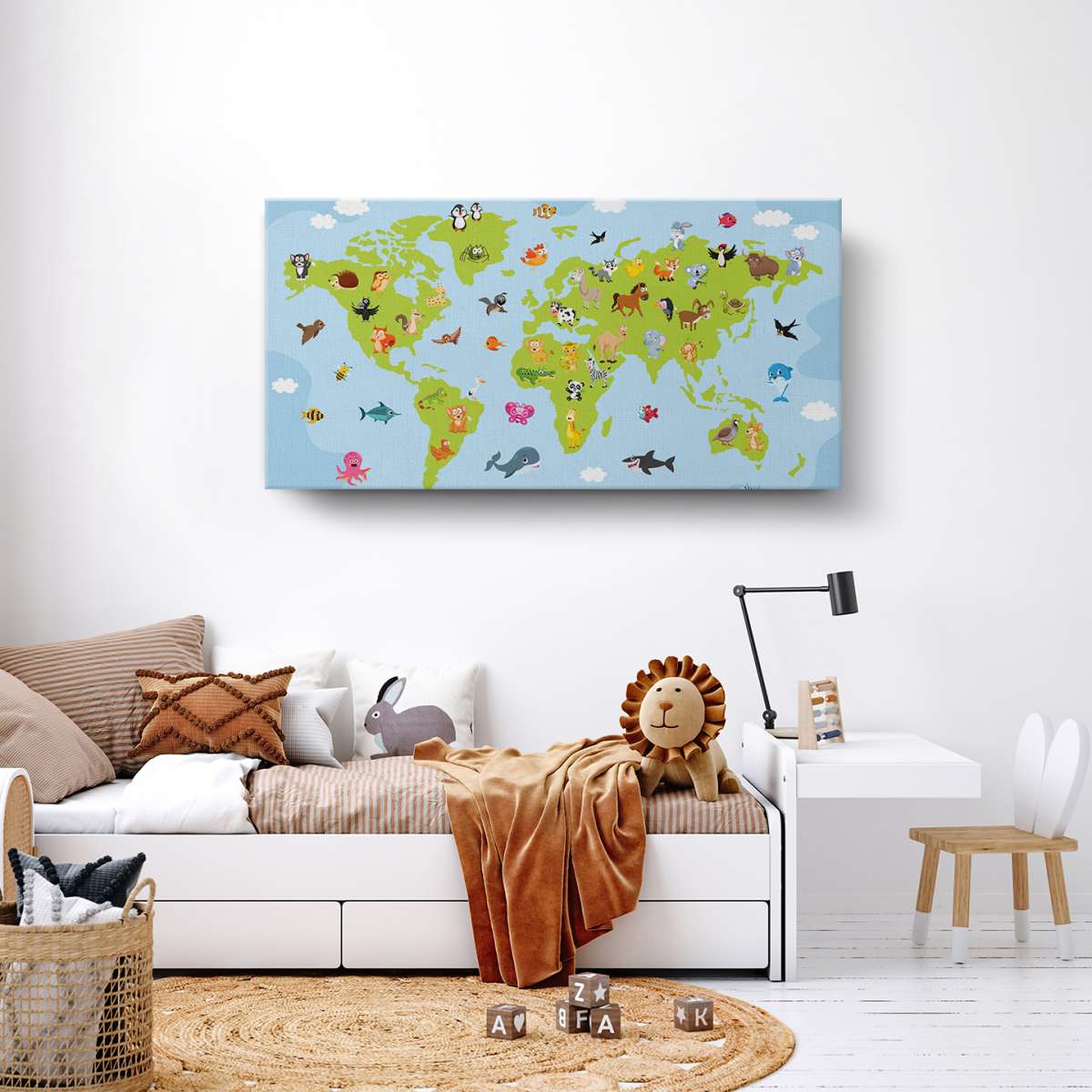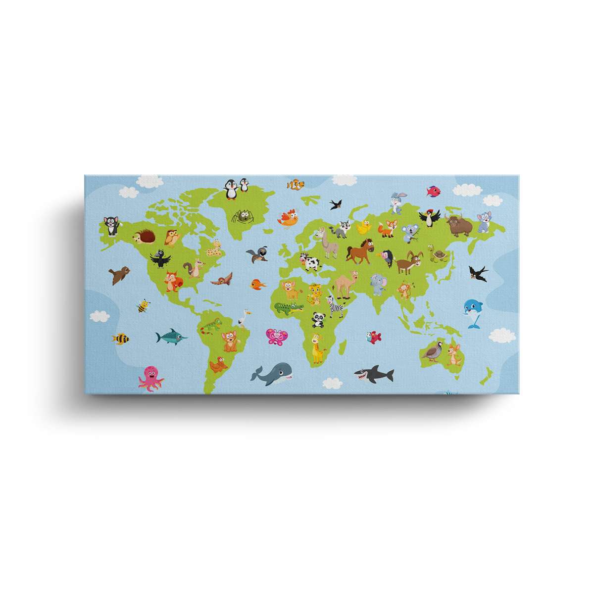 Mapa světa pro děti s kreslenými zvířátky - ilustrace