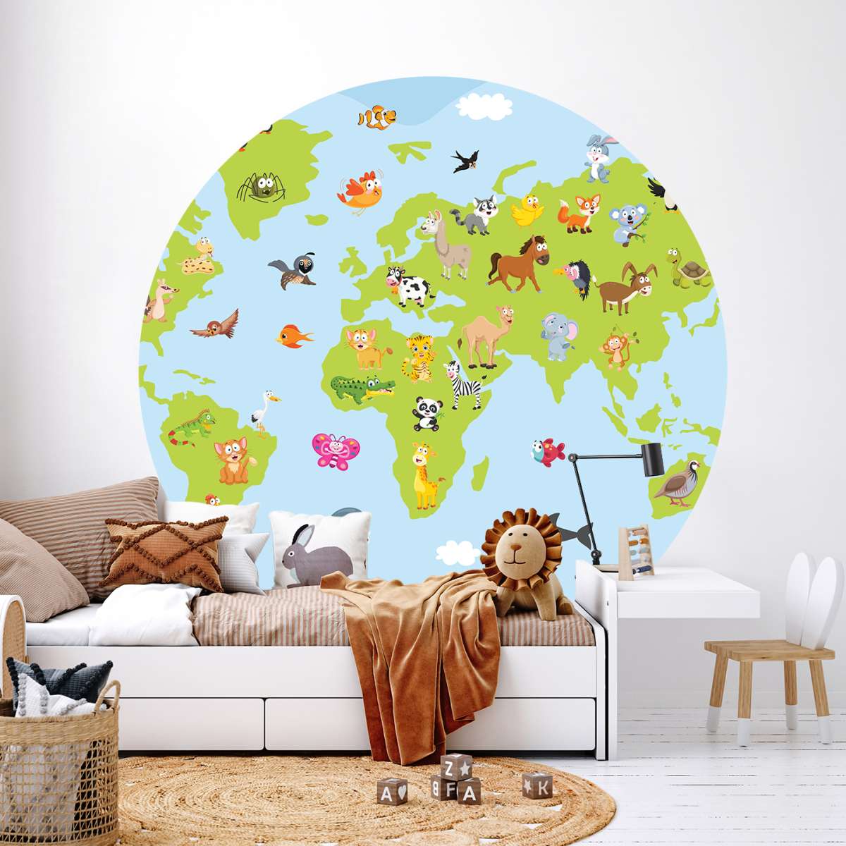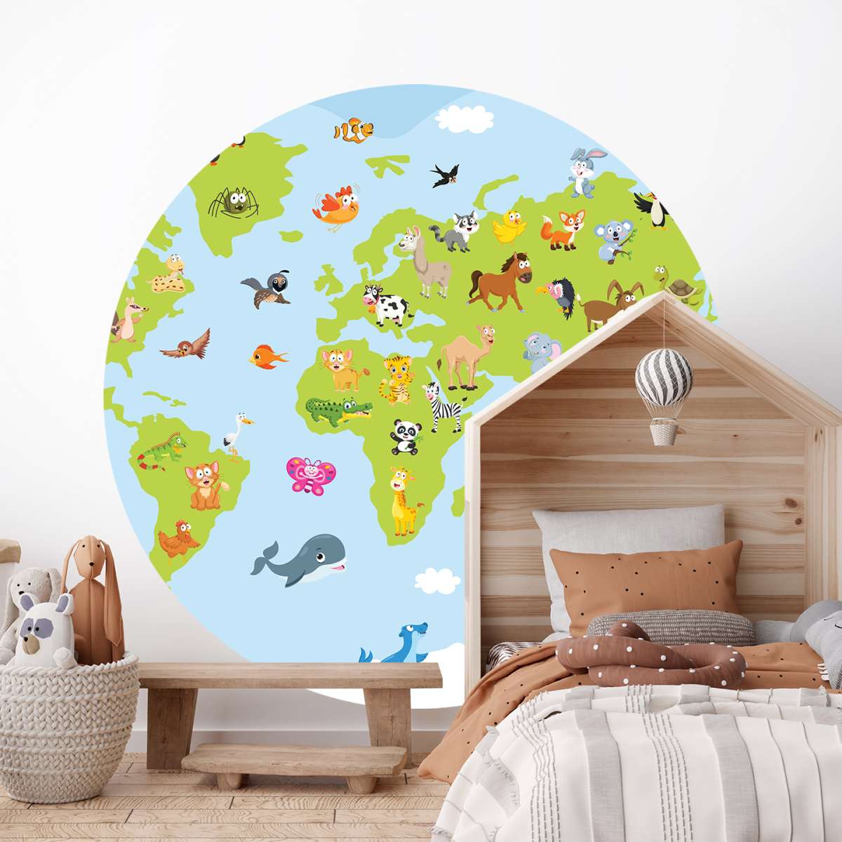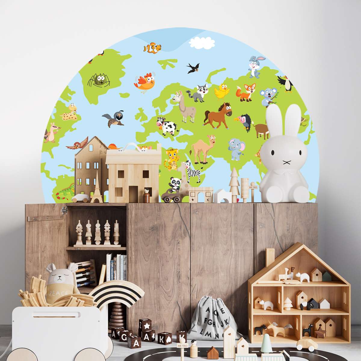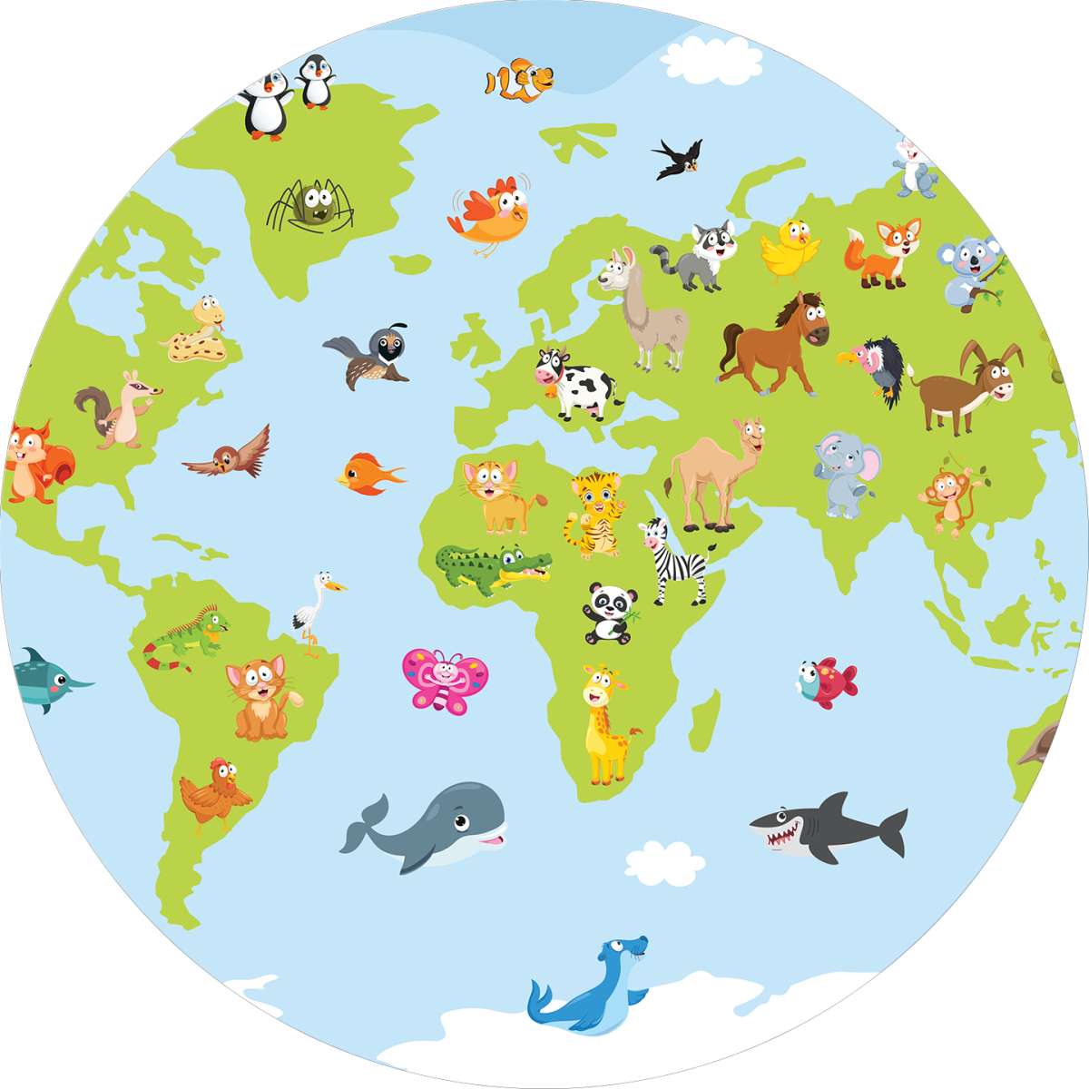 Mapa světa pro děti s kreslenými zvířátky - ilustrace