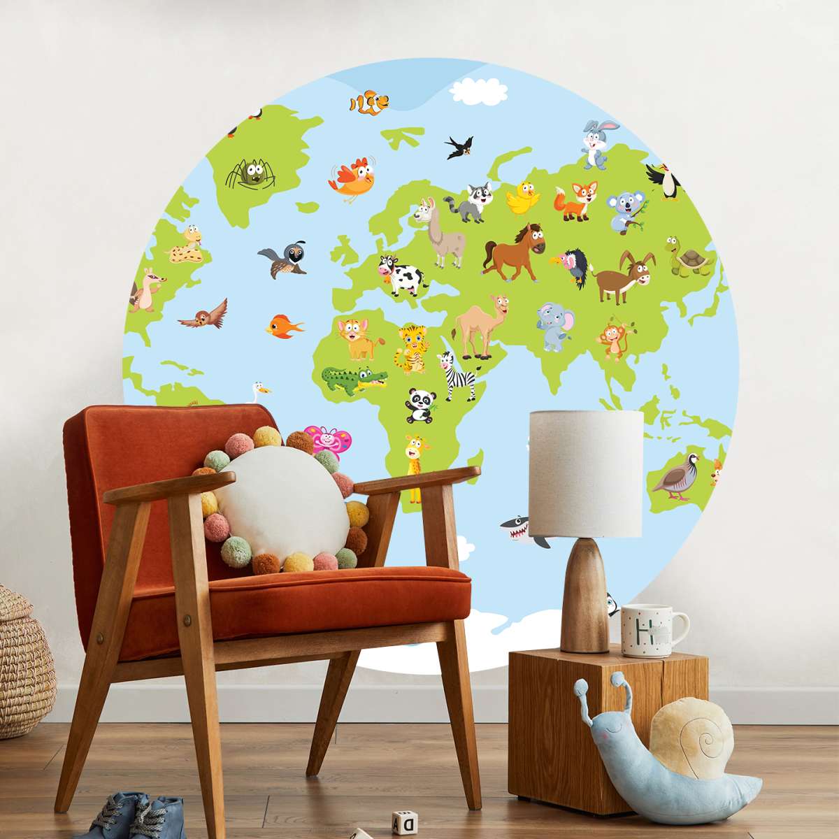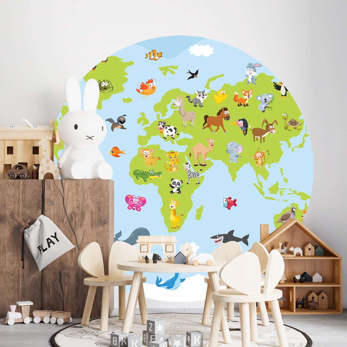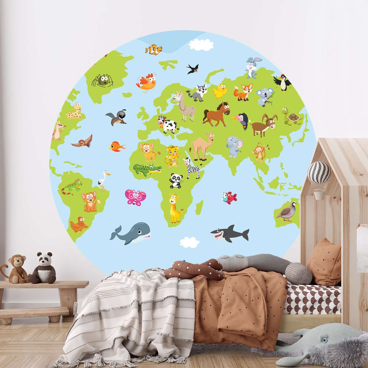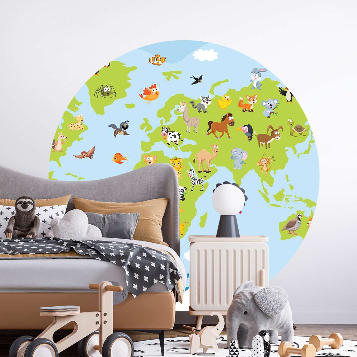 Mapa světa pro děti s kreslenými zvířátky - ilustrace