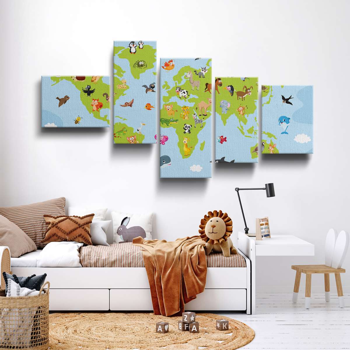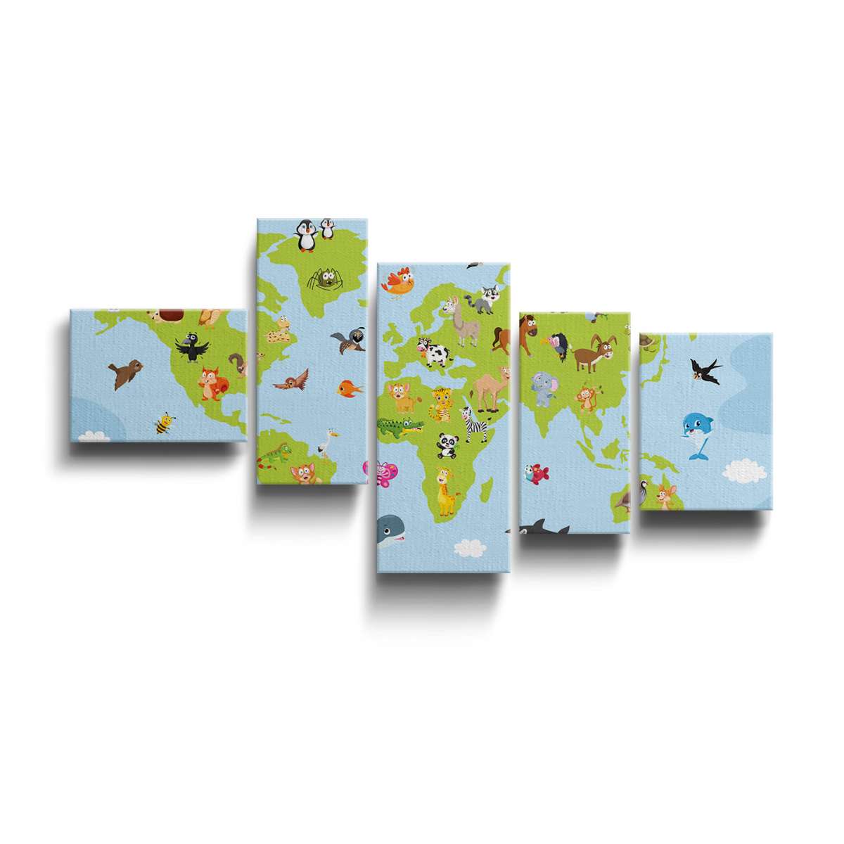 Mapa světa pro děti s kreslenými zvířátky - ilustrace