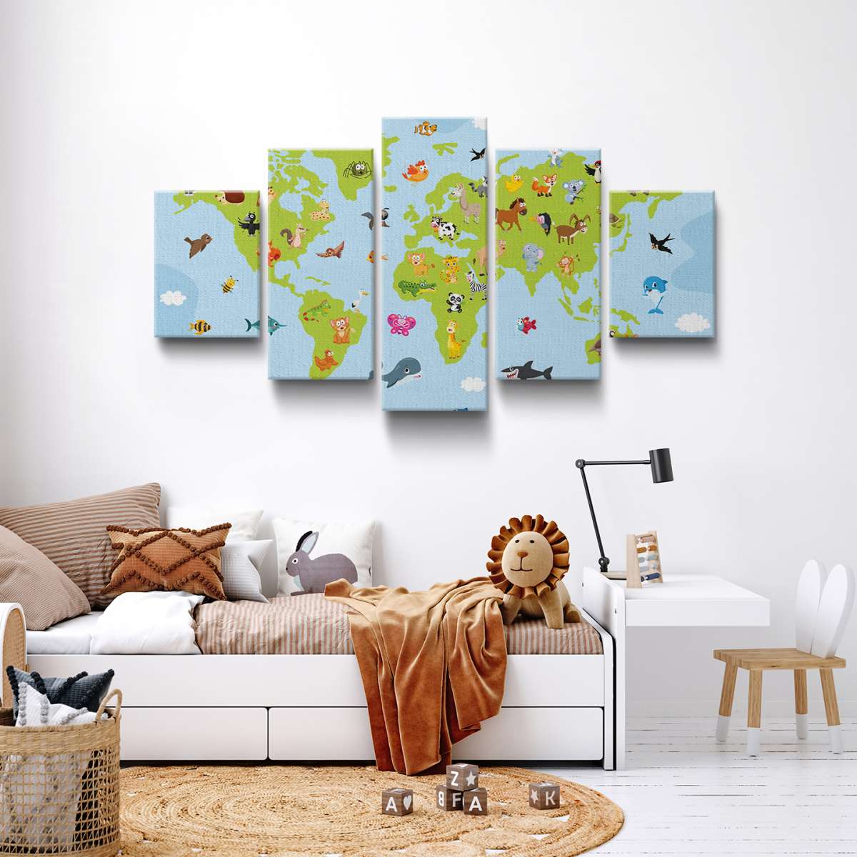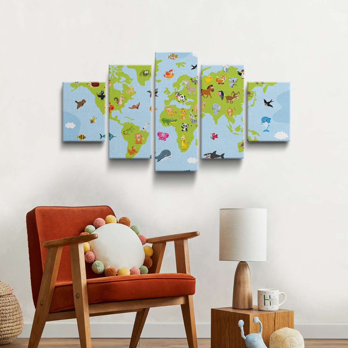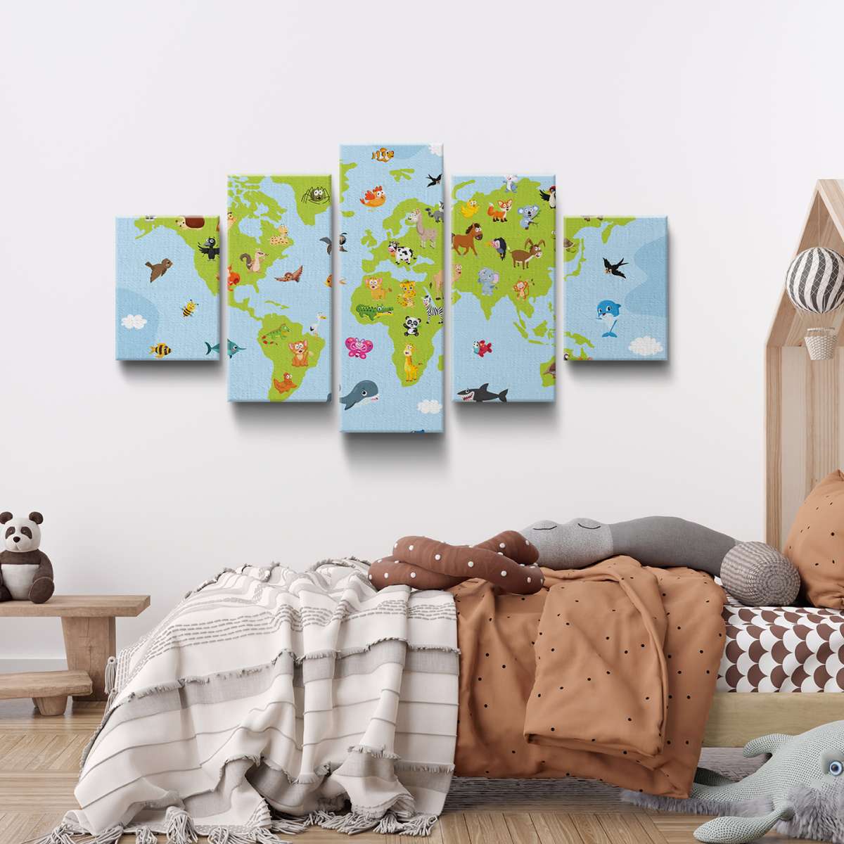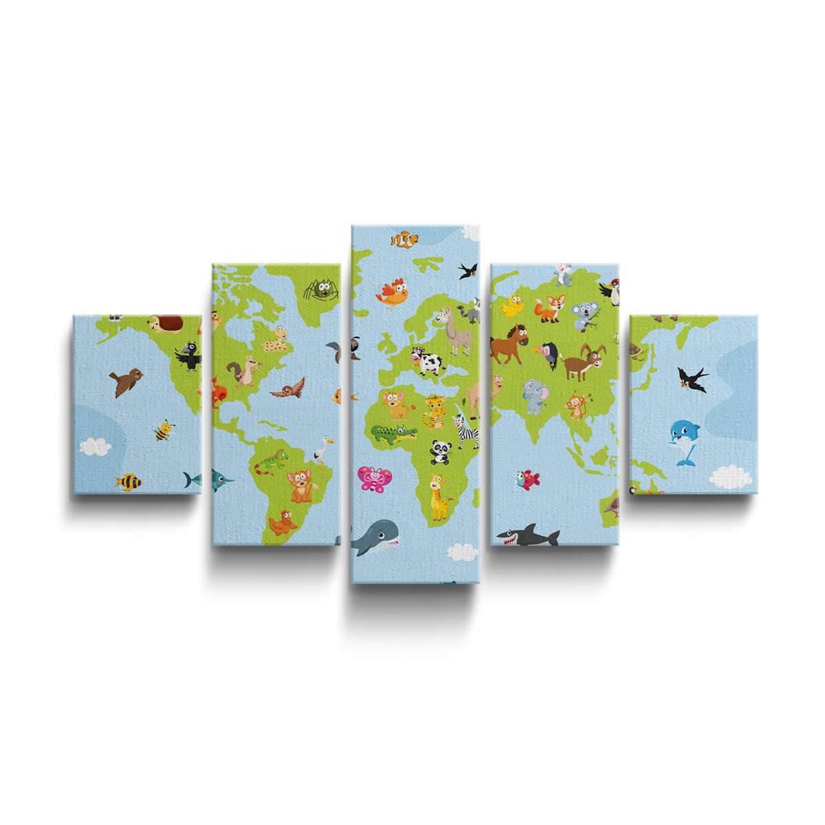 Mapa světa pro děti s kreslenými zvířátky - ilustrace