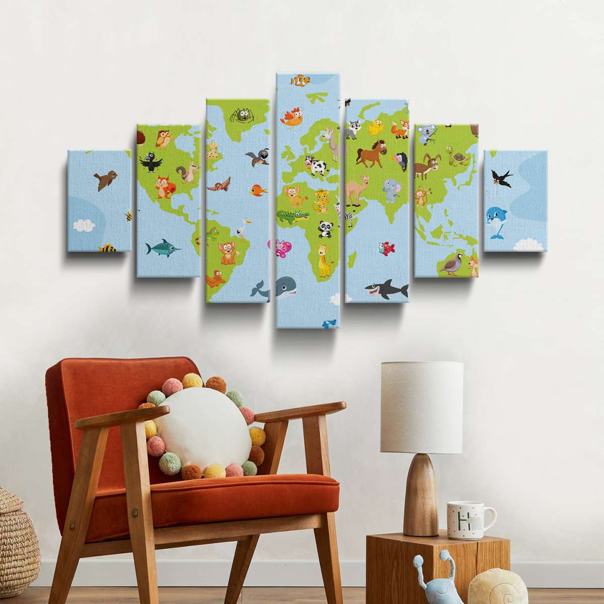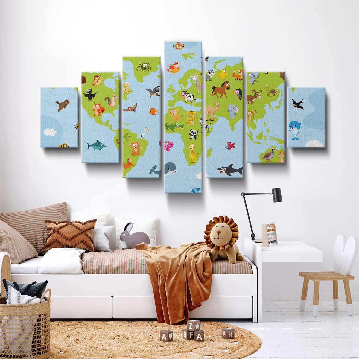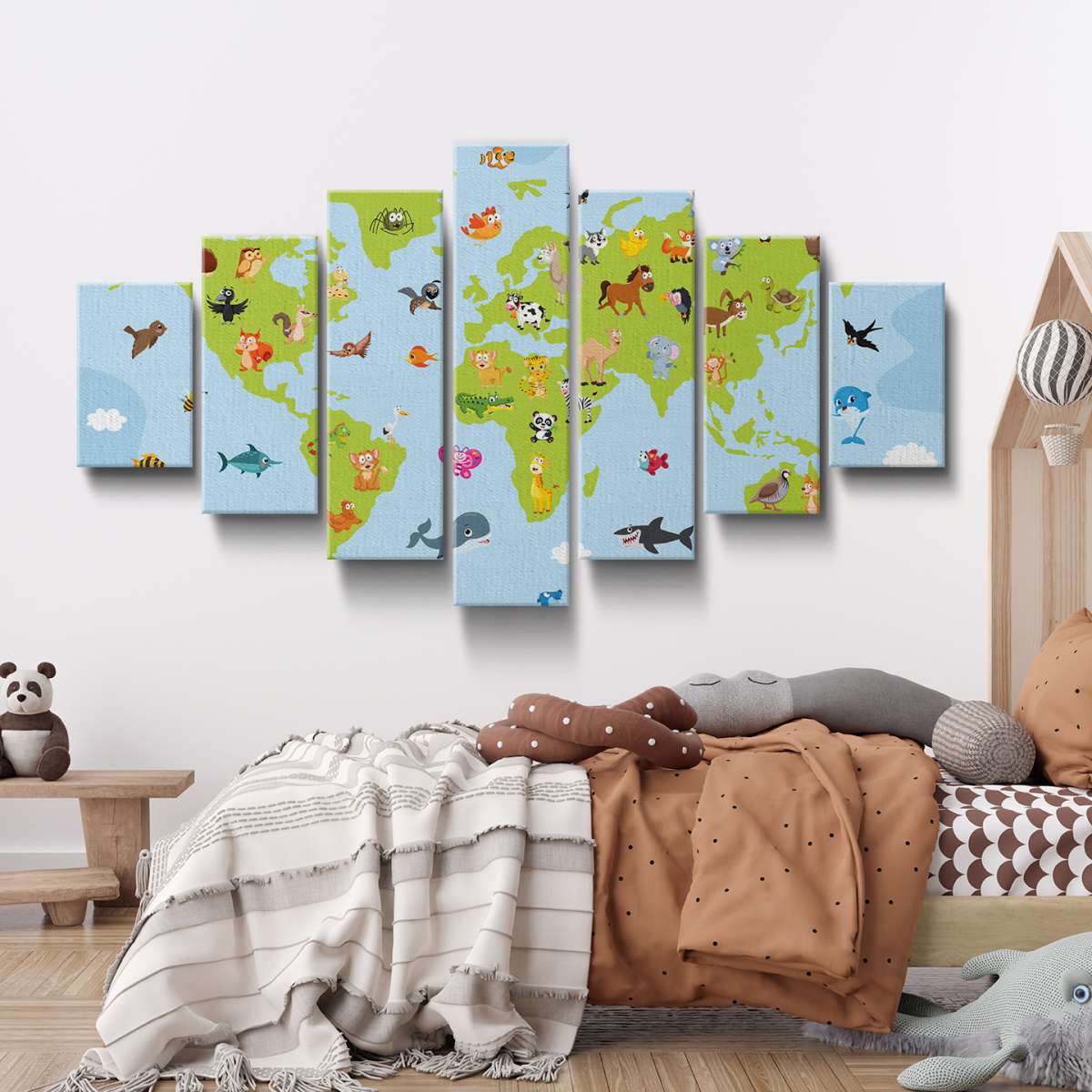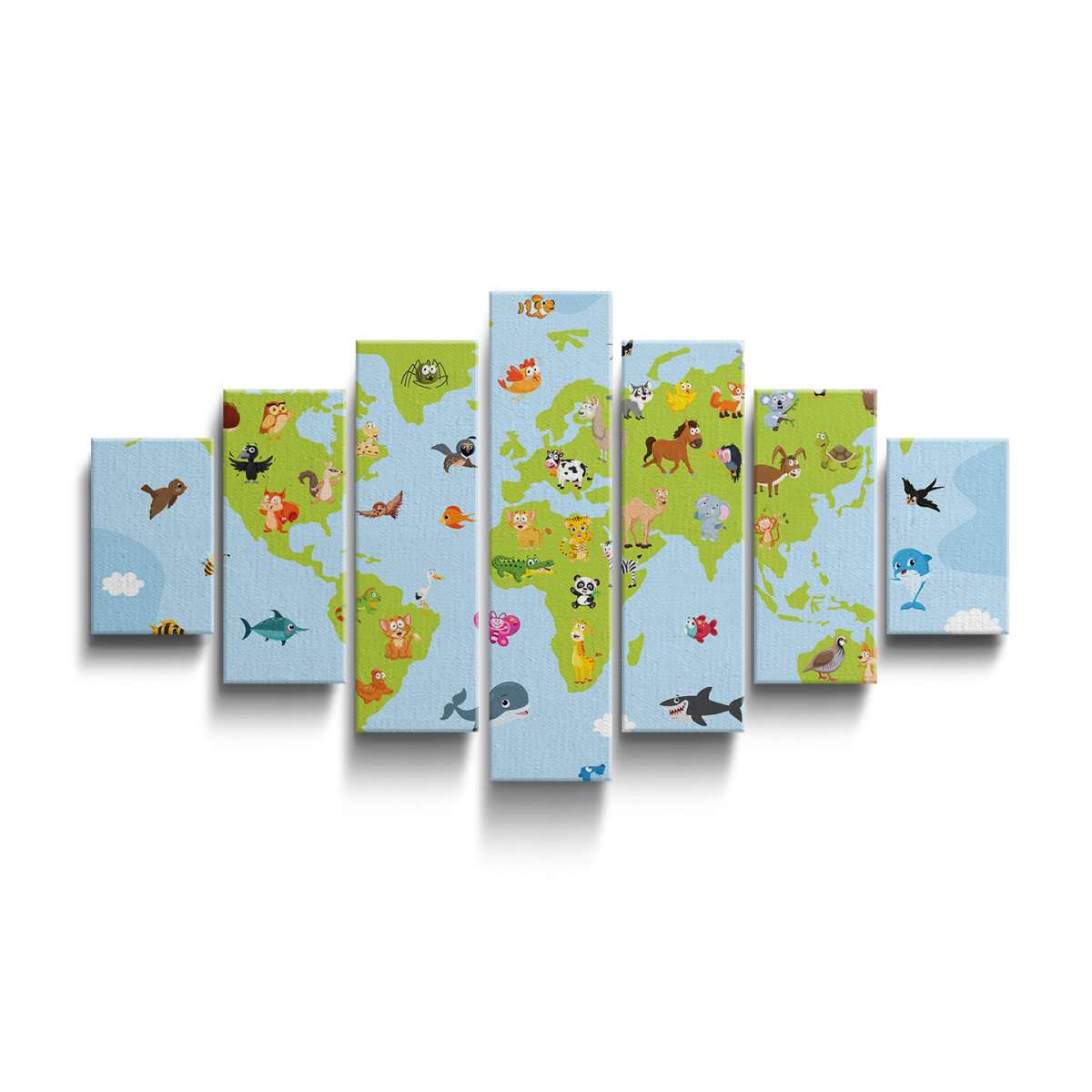 Mapa světa pro děti s kreslenými zvířátky - ilustrace