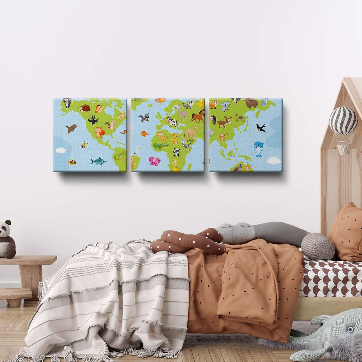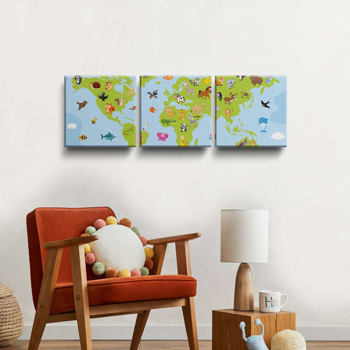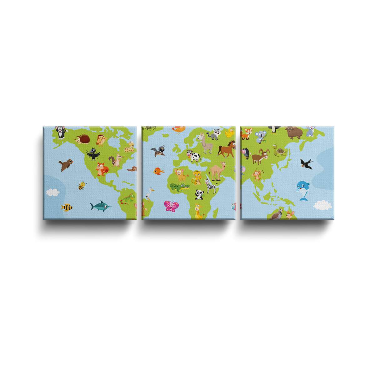 Mapa světa pro děti s kreslenými zvířátky - ilustrace