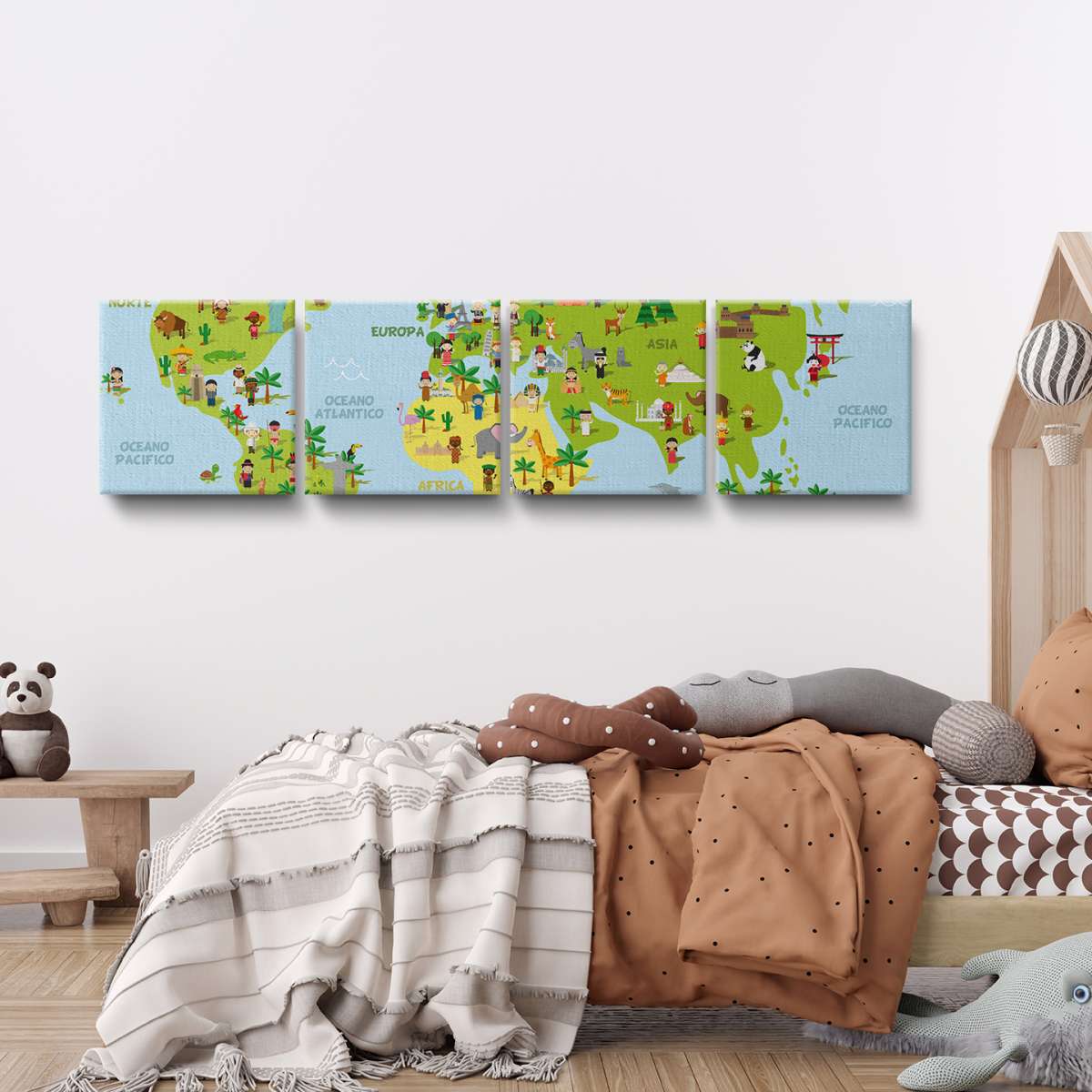 Mapa světa s dětmi různých národností - ilustrace
