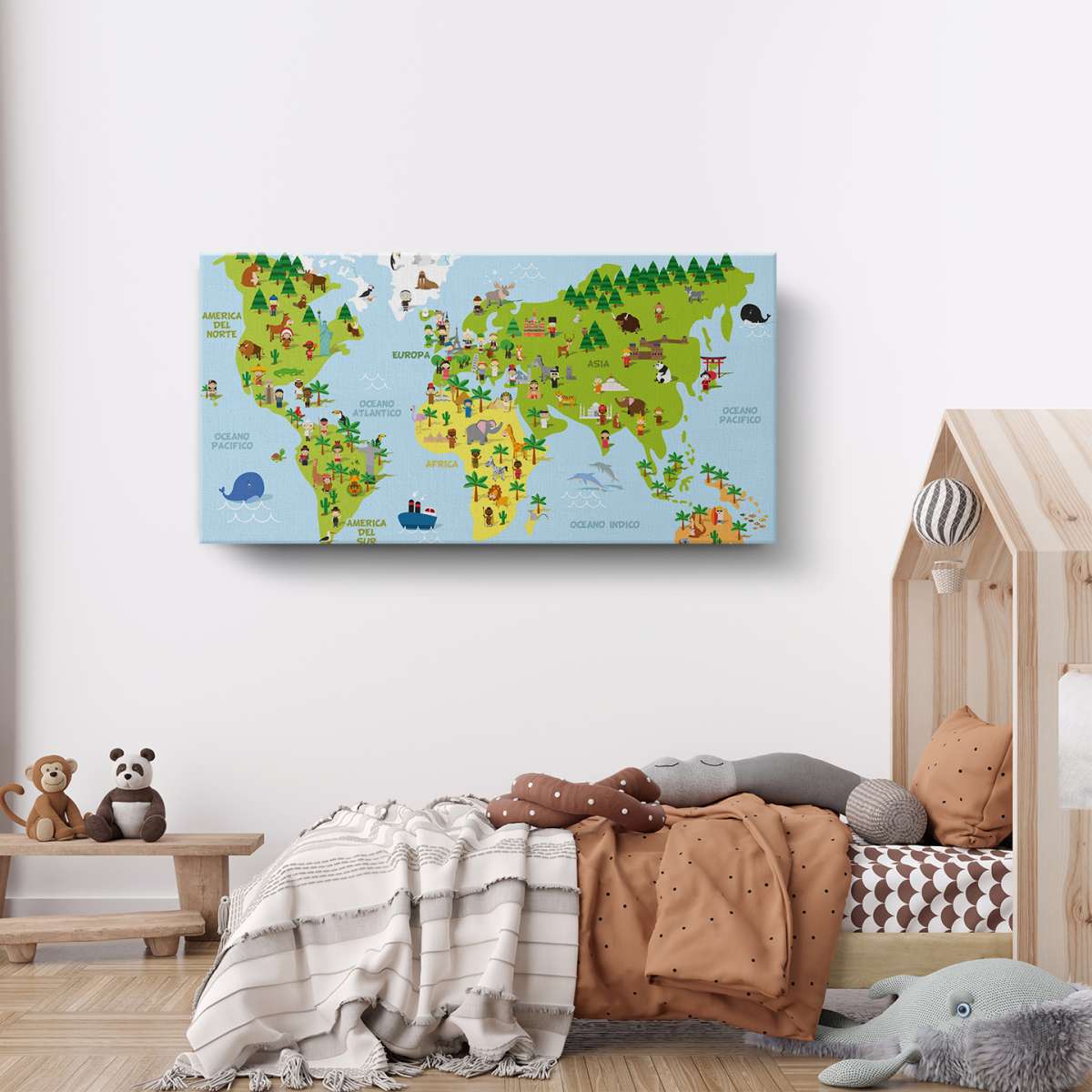 Mapa světa s dětmi různých národností - ilustrace