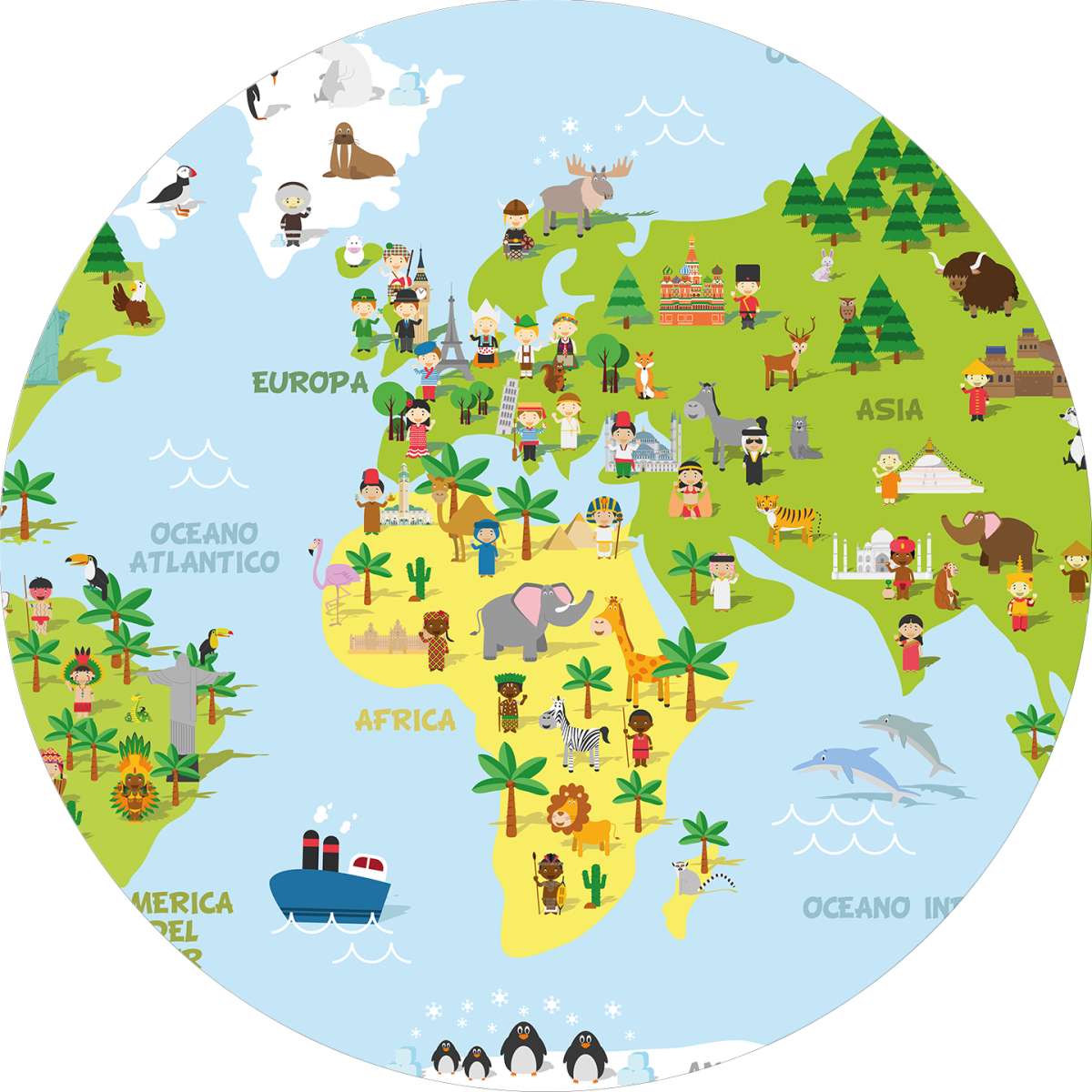 Mapa světa s dětmi různých národností - ilustrace