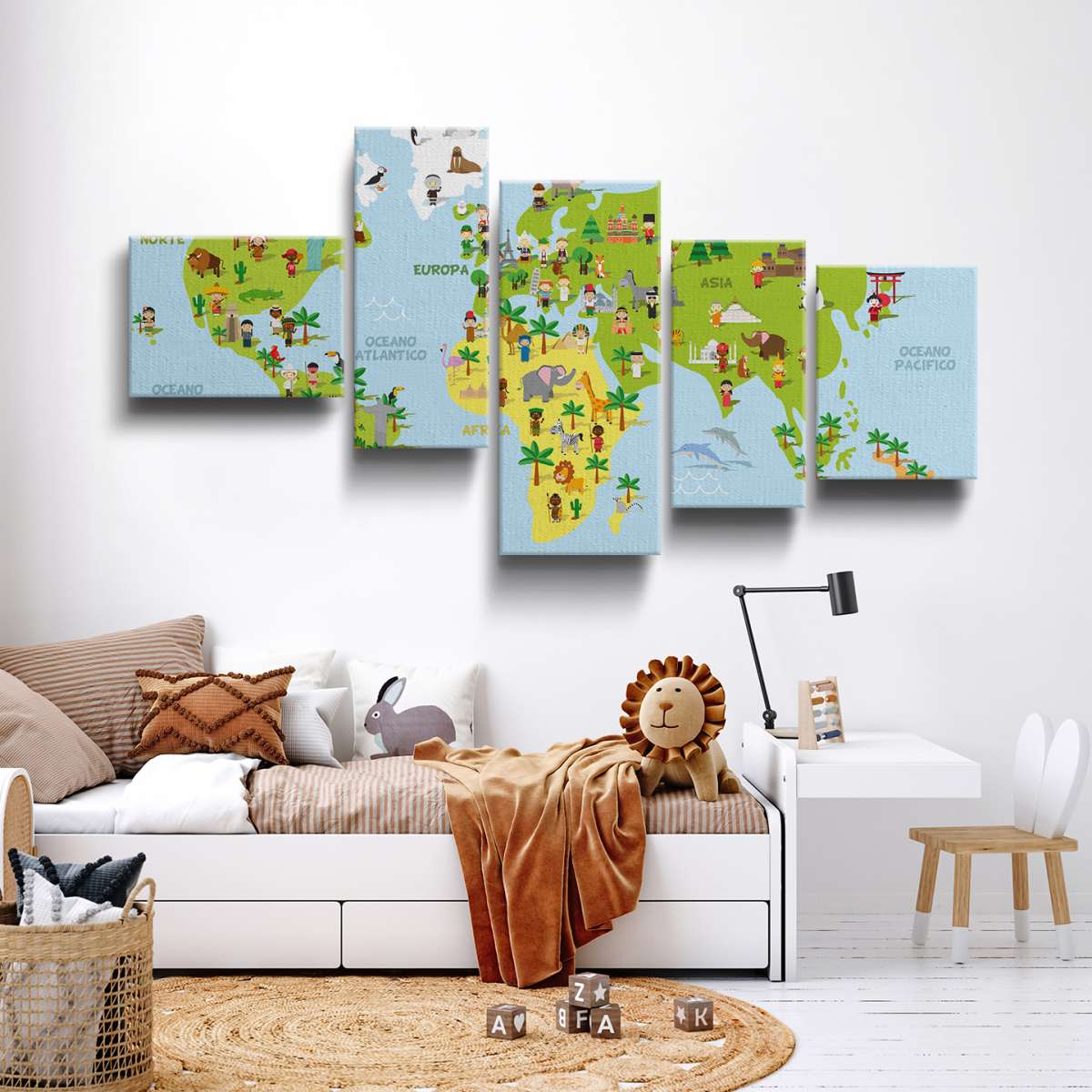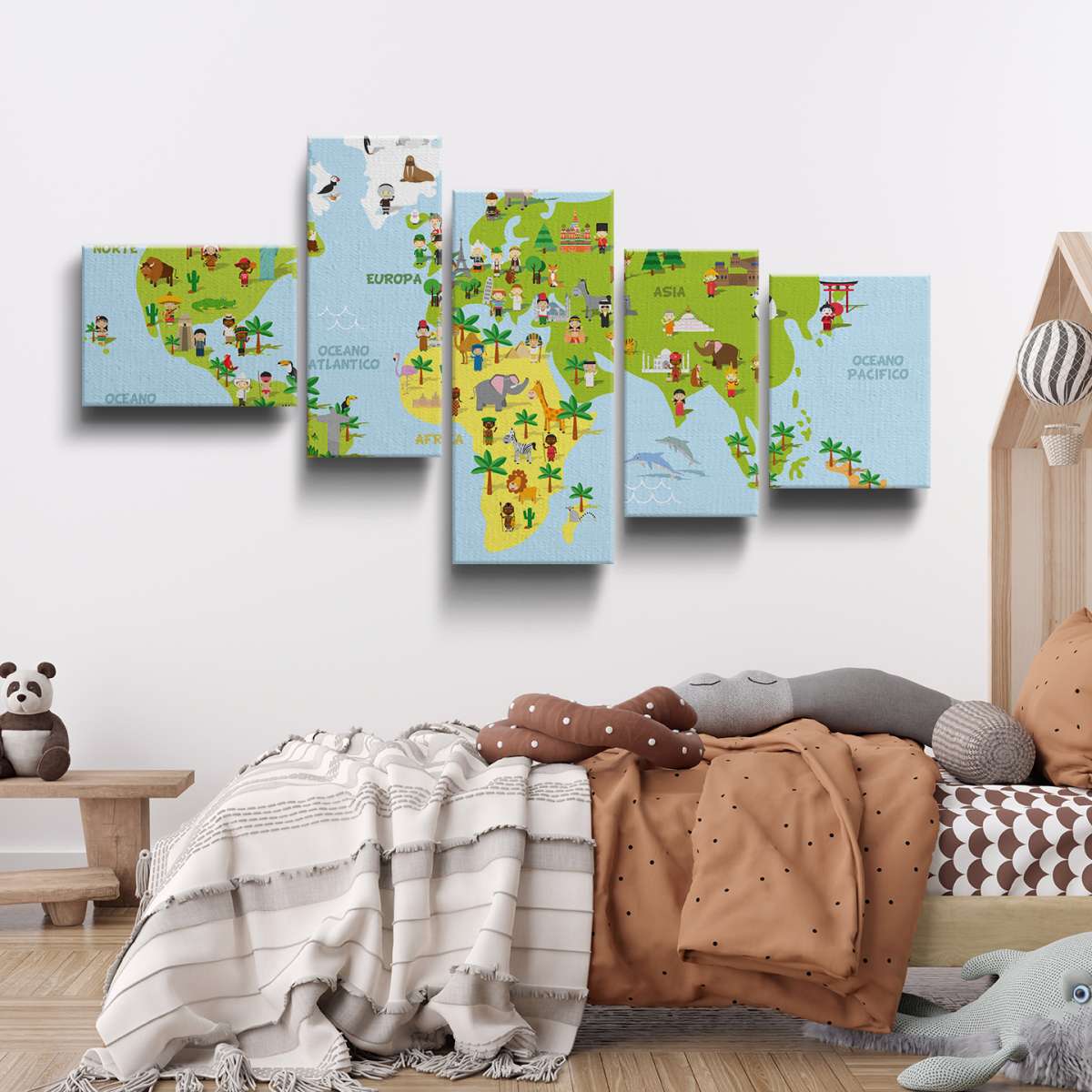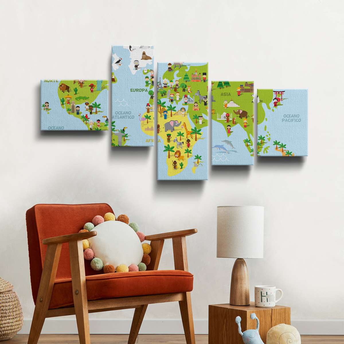 Mapa světa s dětmi různých národností - ilustrace
