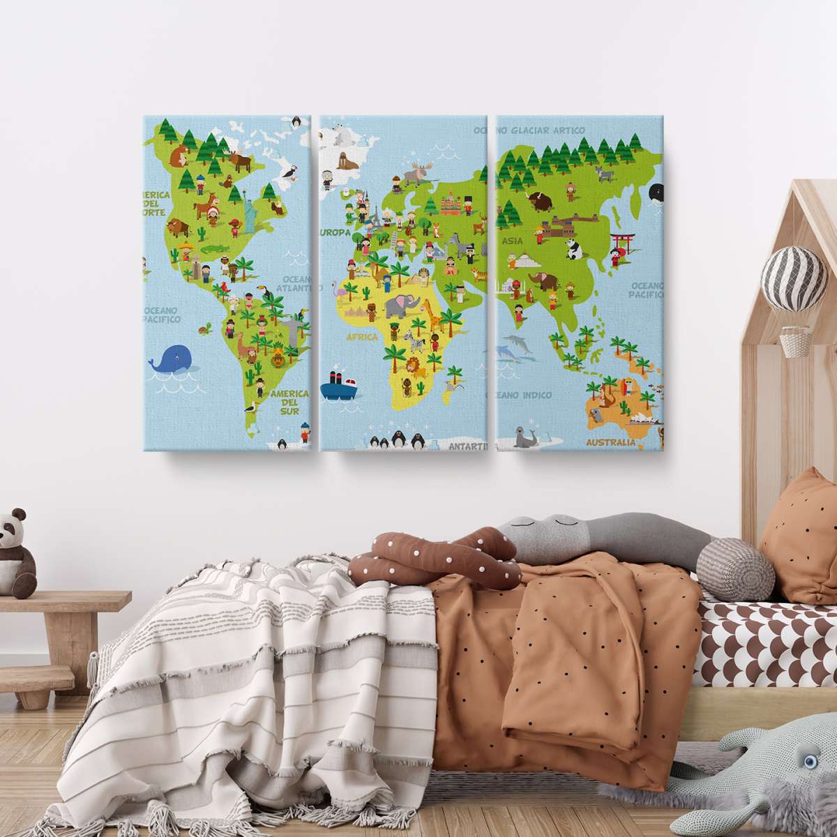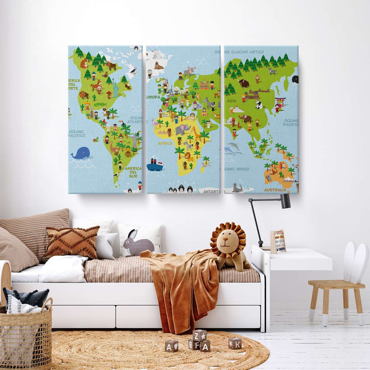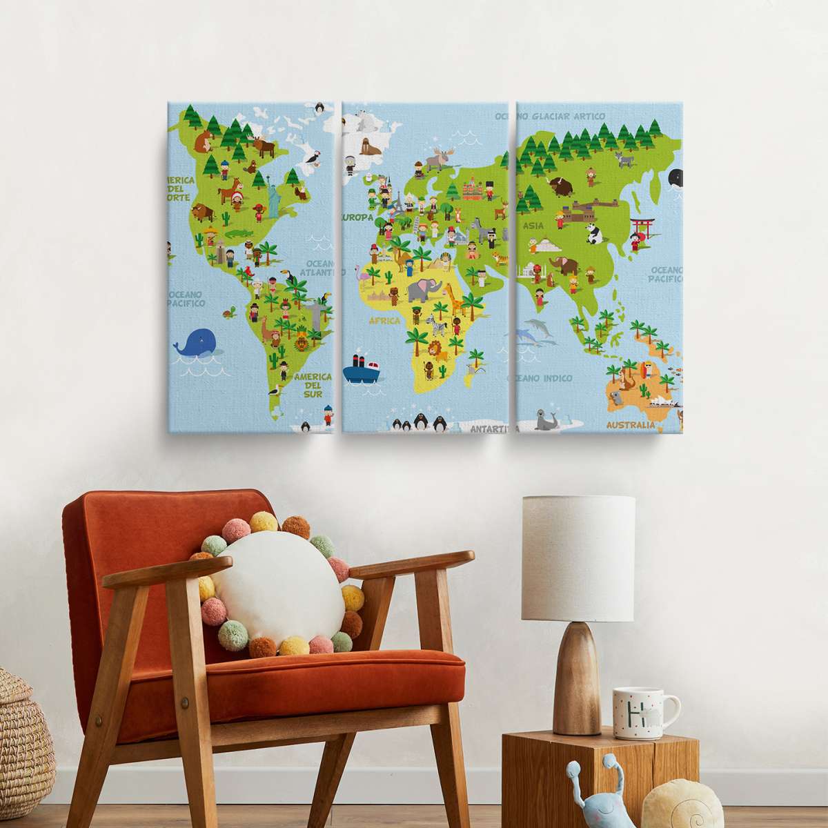 Mapa světa s dětmi různých národností - ilustrace