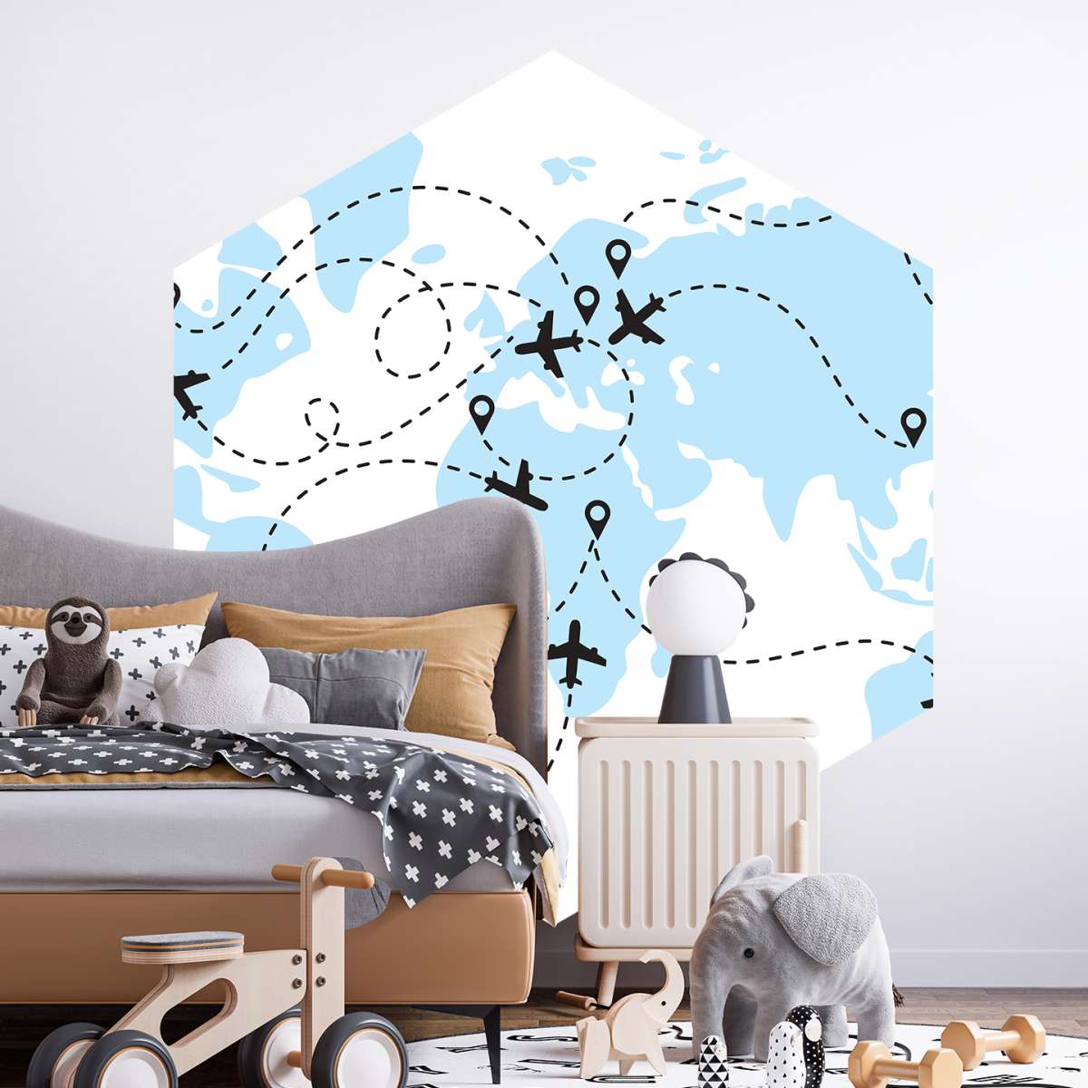 Mapa světa s letadly - ilustrace