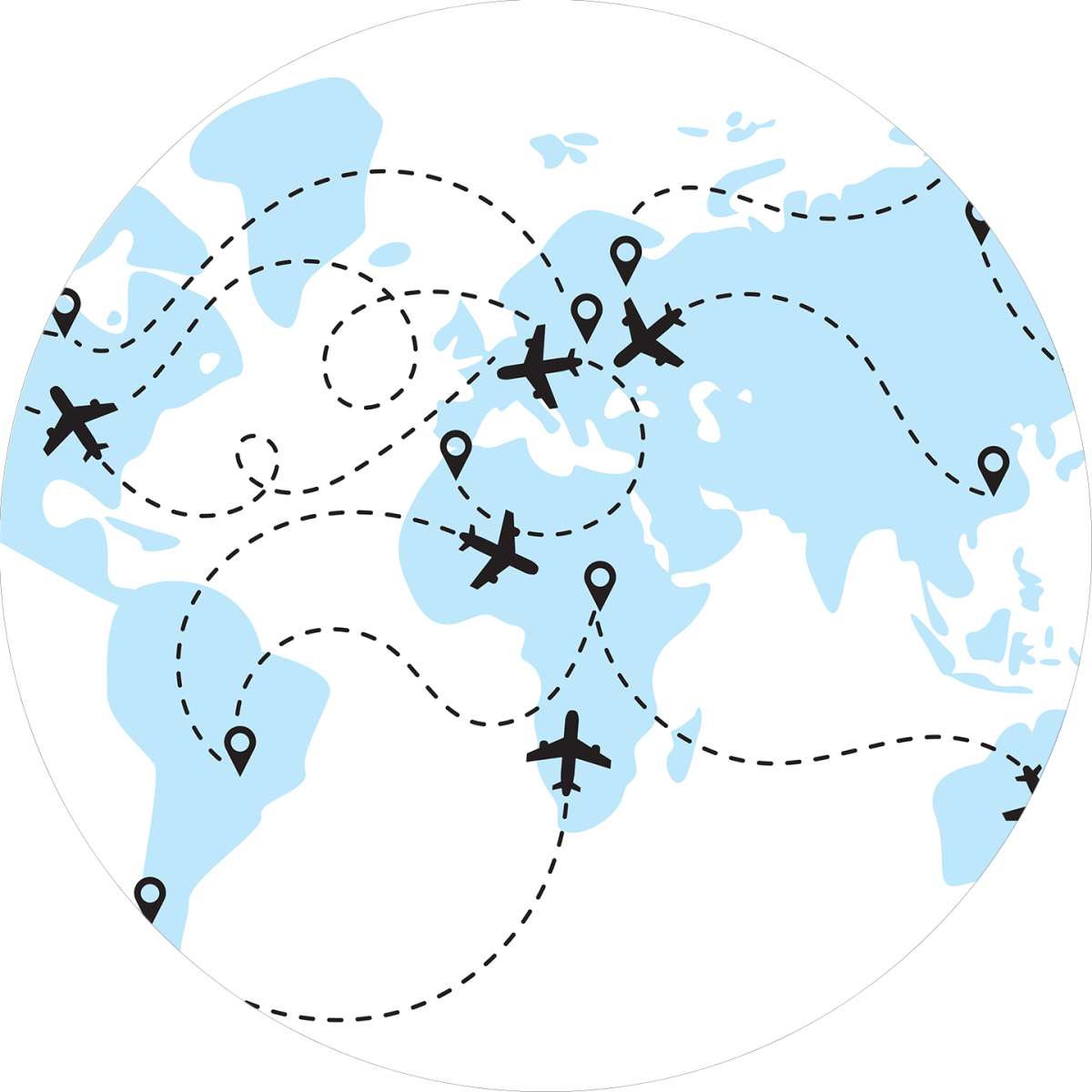 Mapa světa s letadly - ilustrace