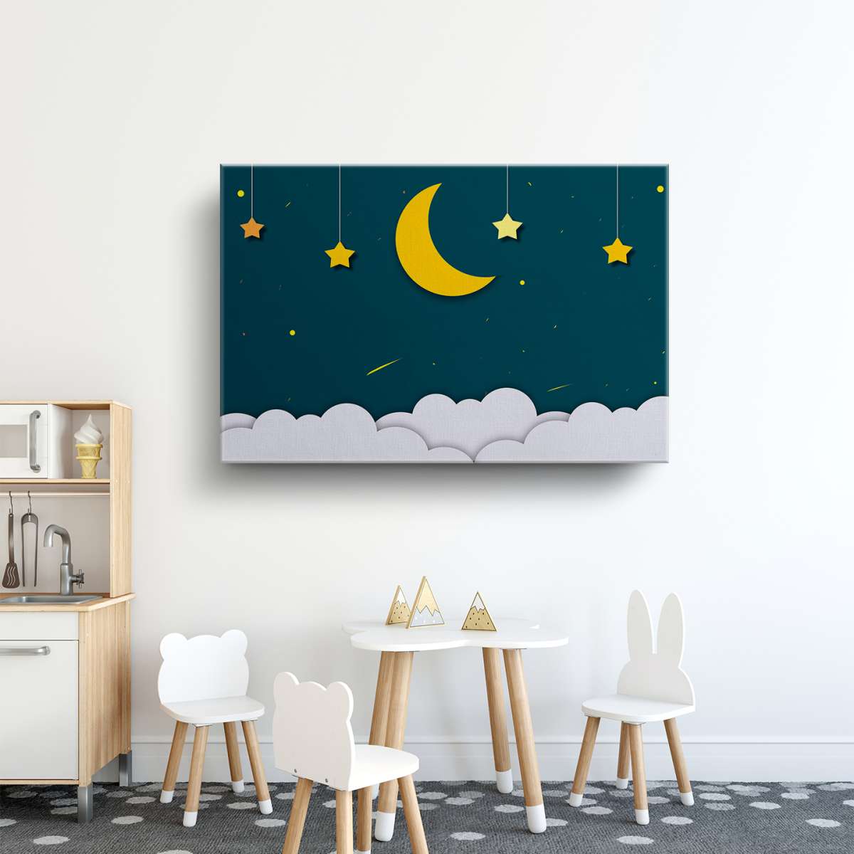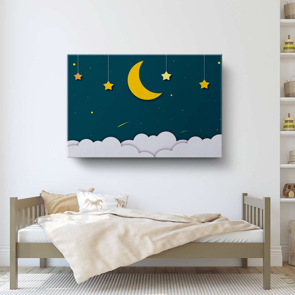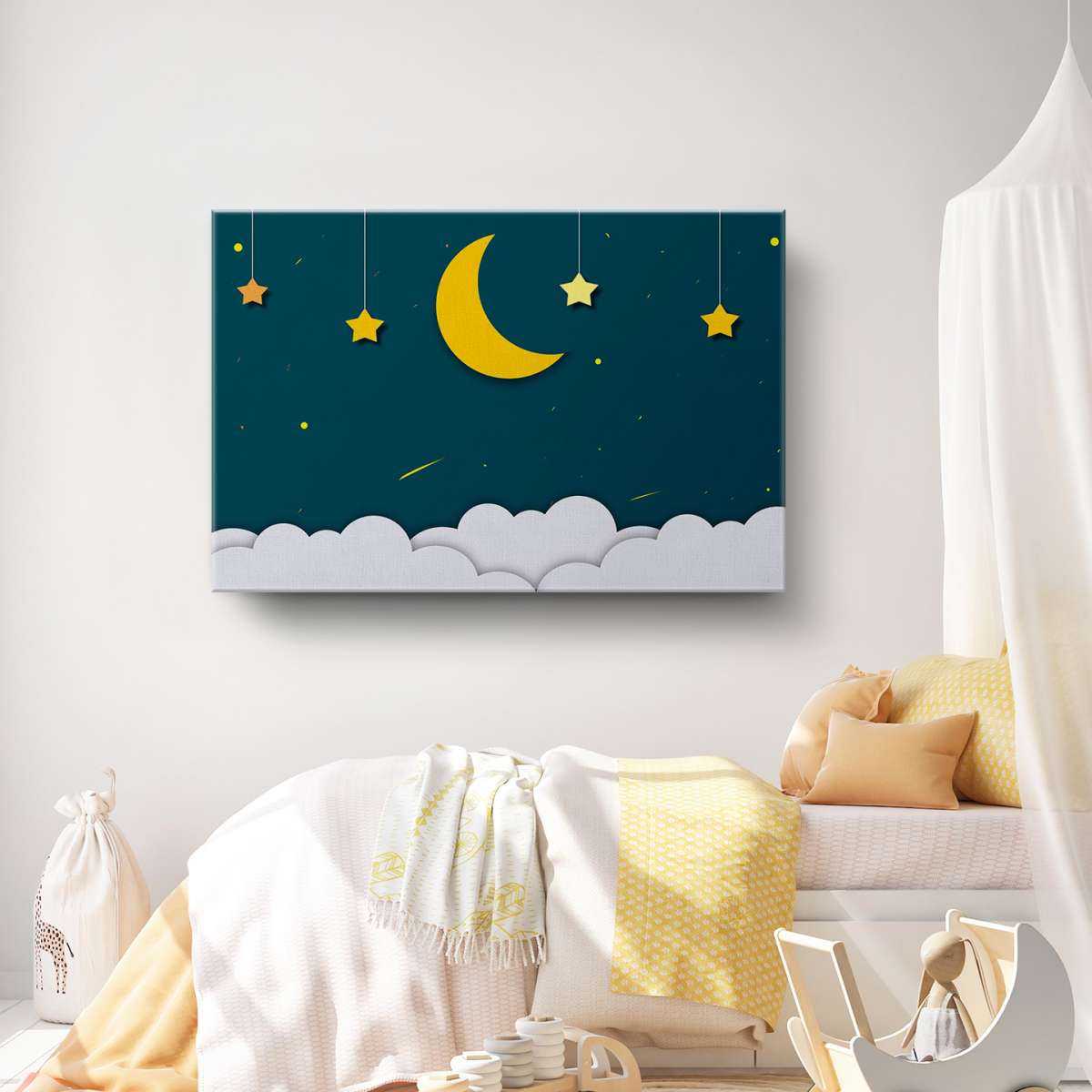 Měsíc s hvězdami a mraky - papirové ilustrace