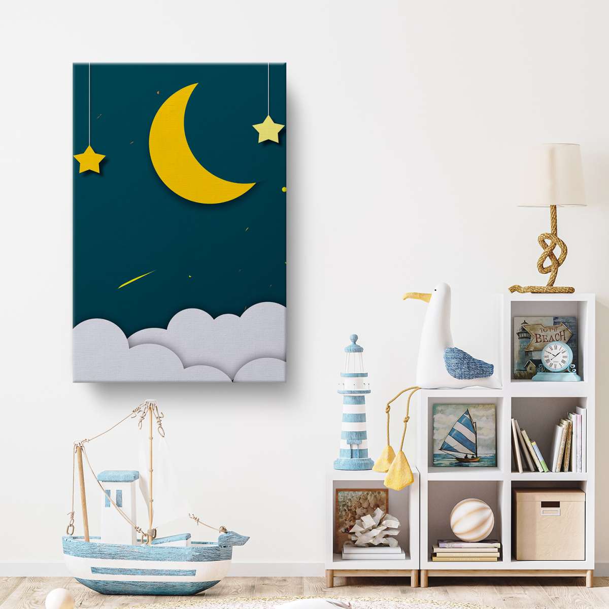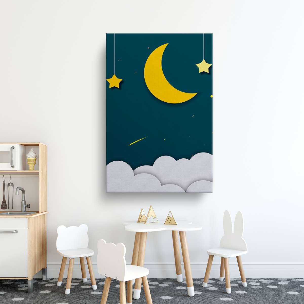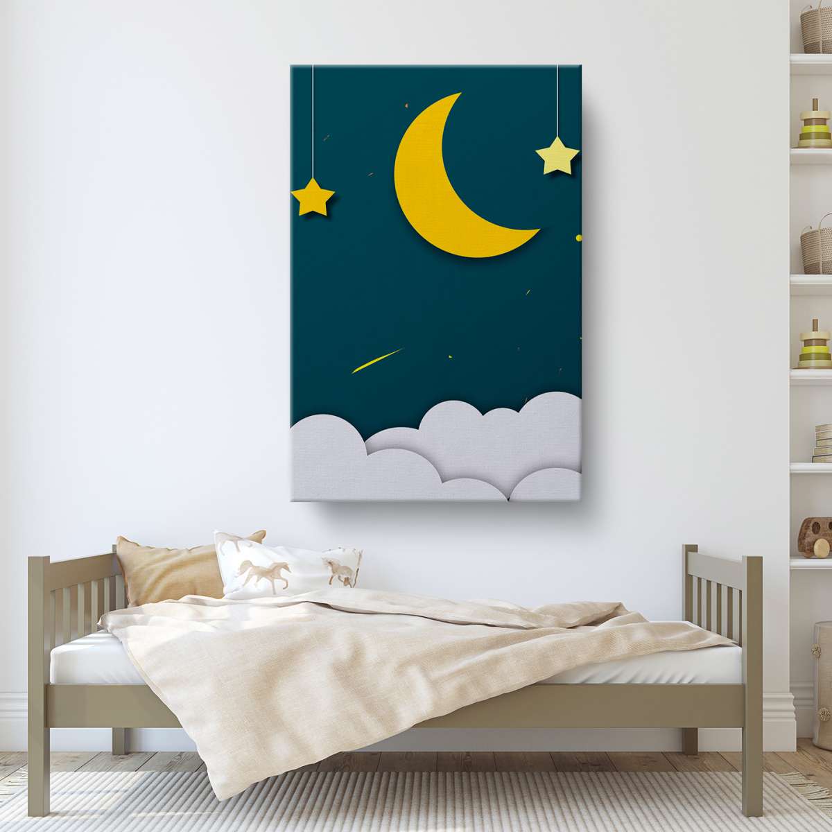 Měsíc s hvězdami a mraky - papirové ilustrace