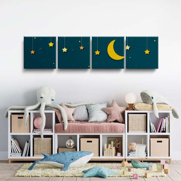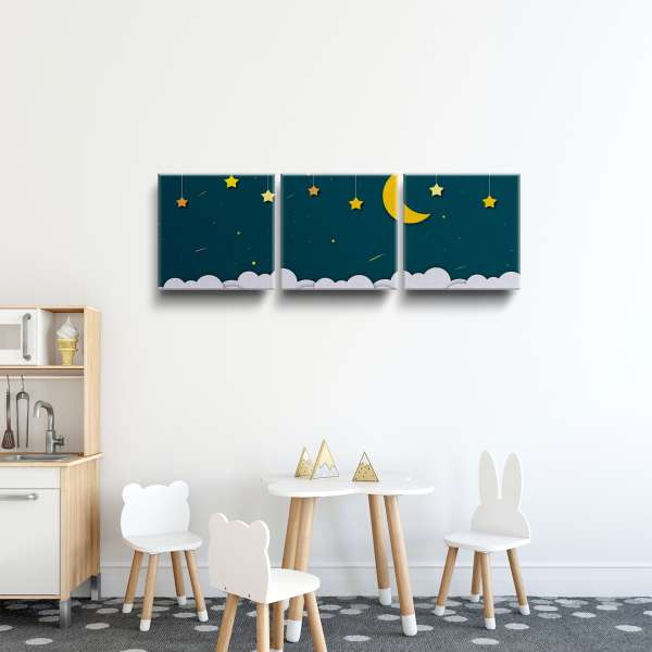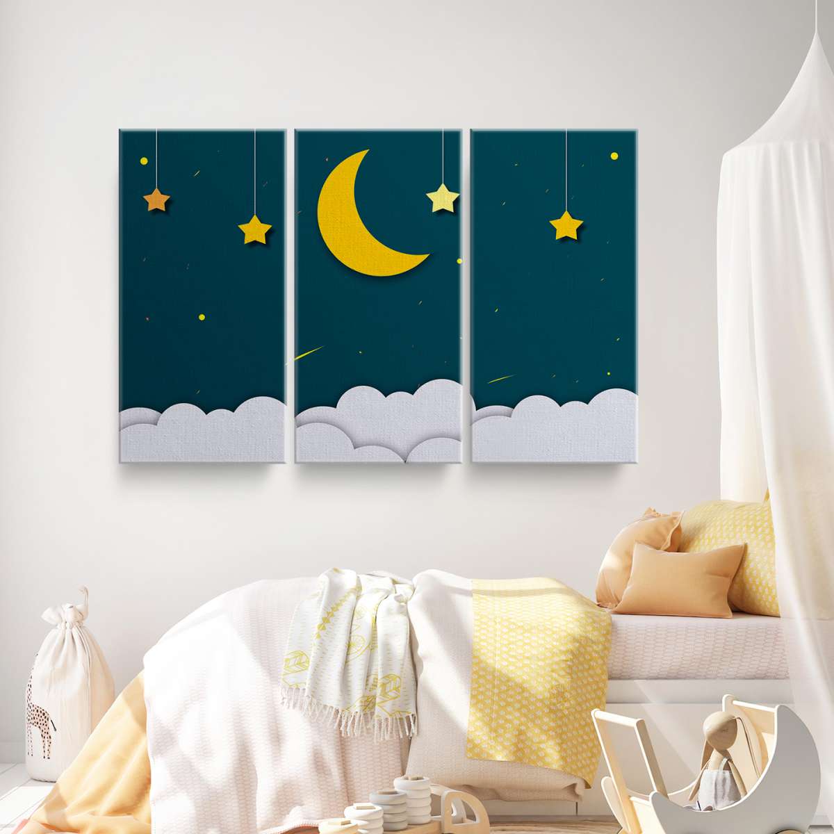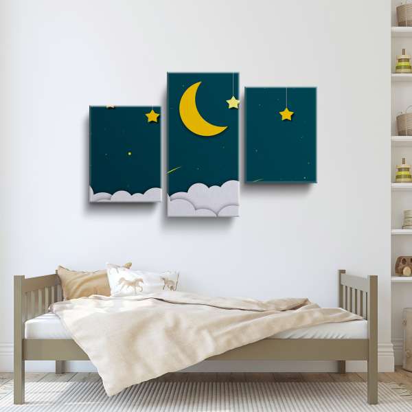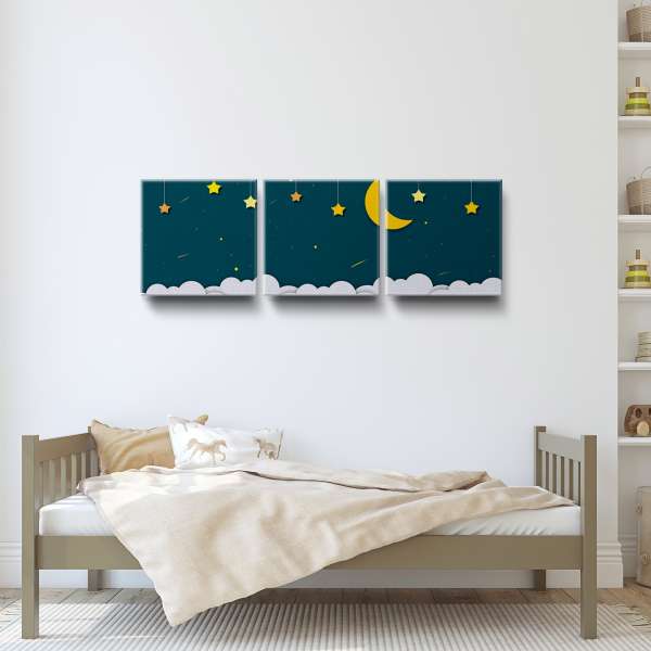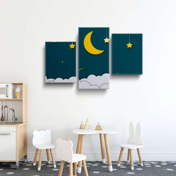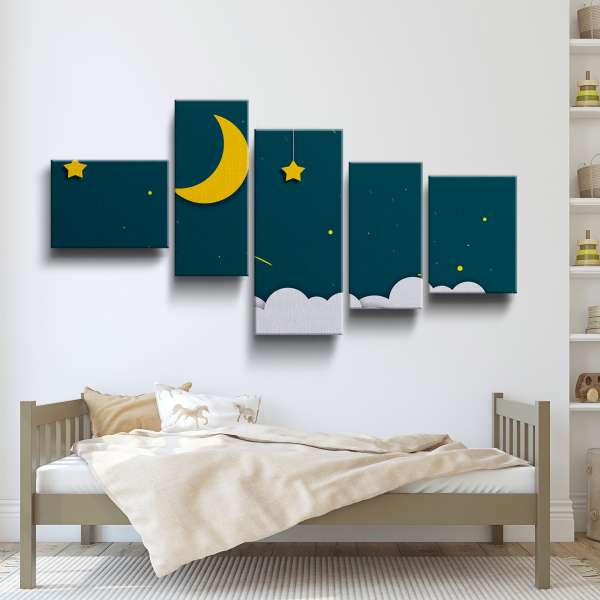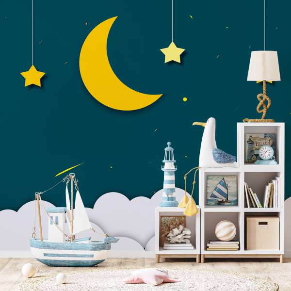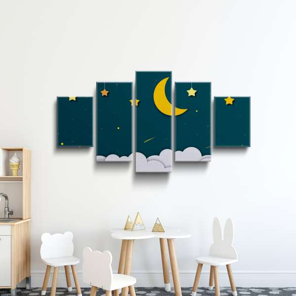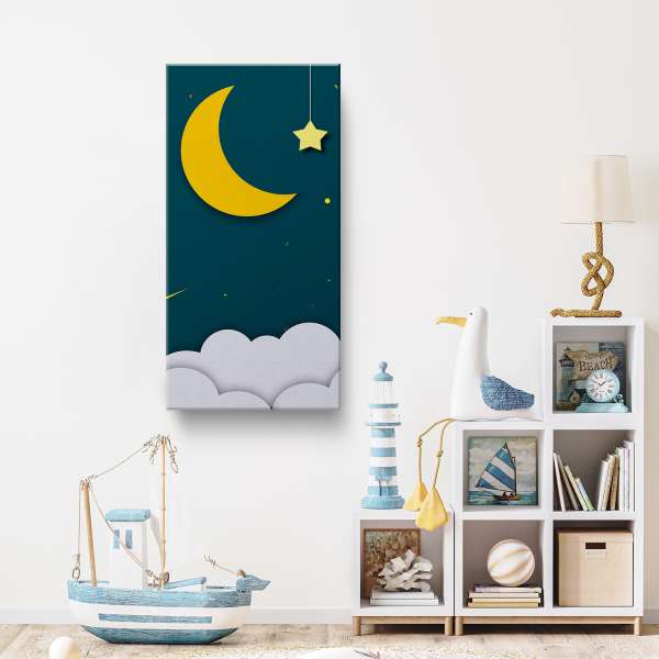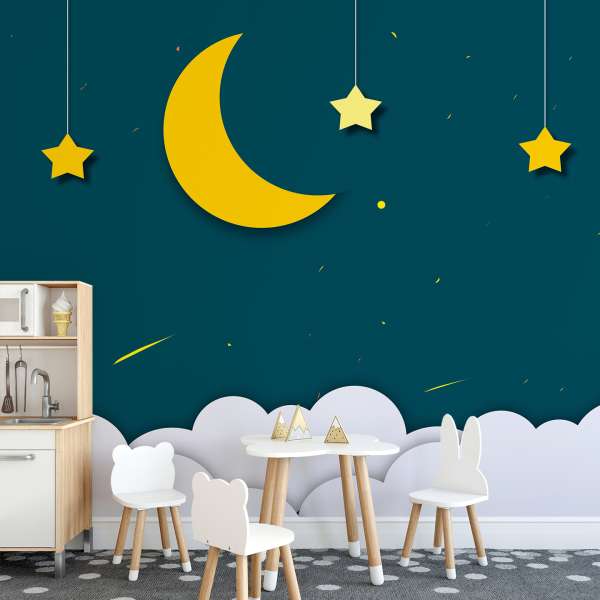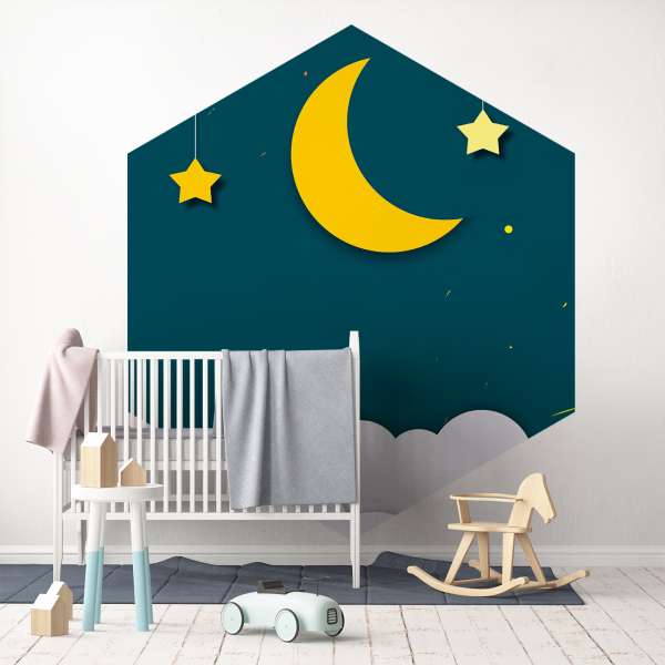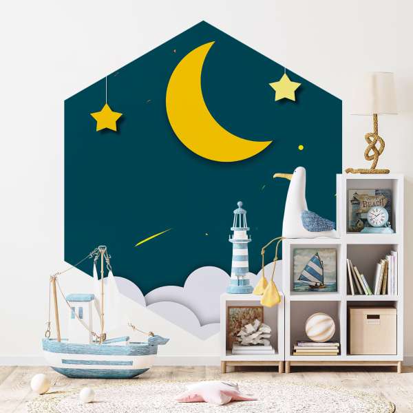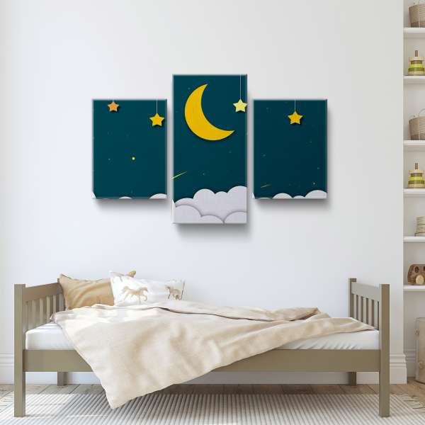 Měsíc s hvězdami a mraky - papirové ilustrace