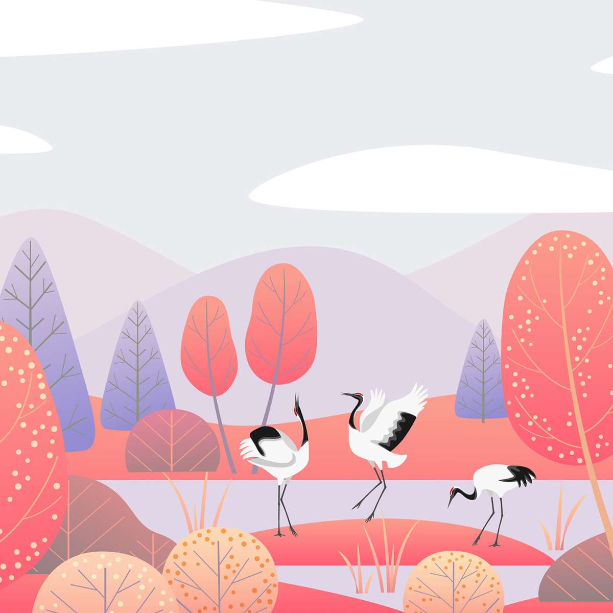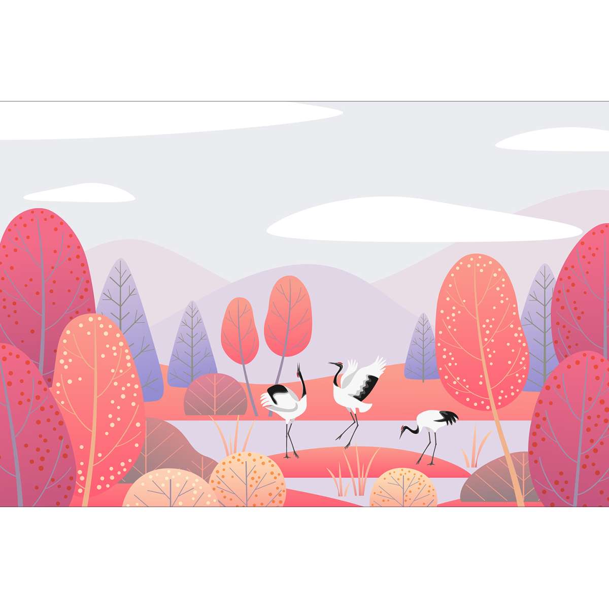 Mokřady v krajině a tanec jeřábů - ilustrace