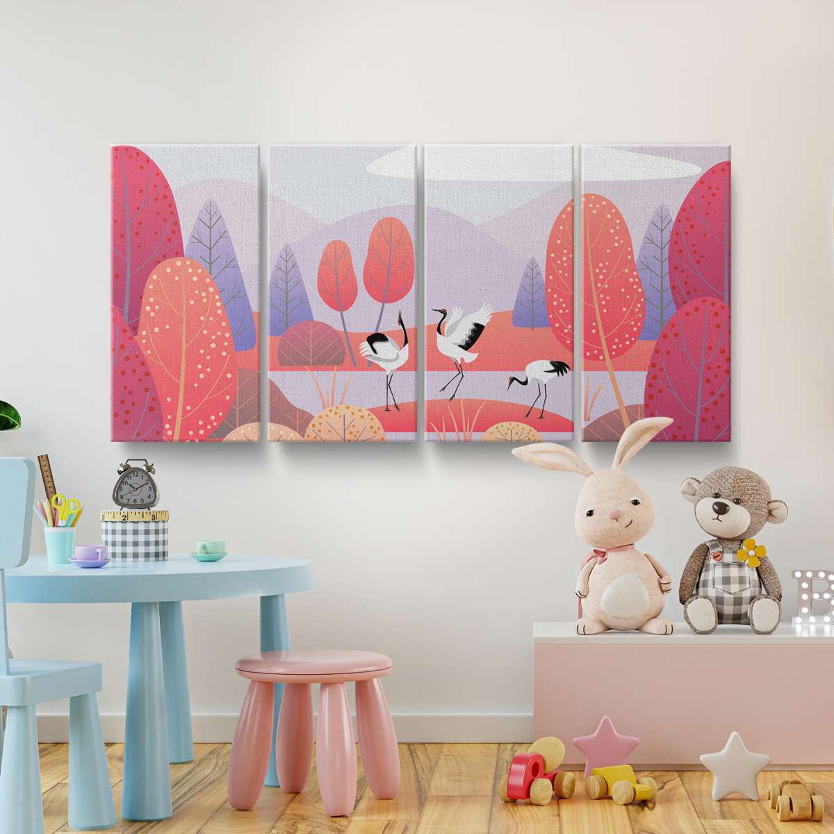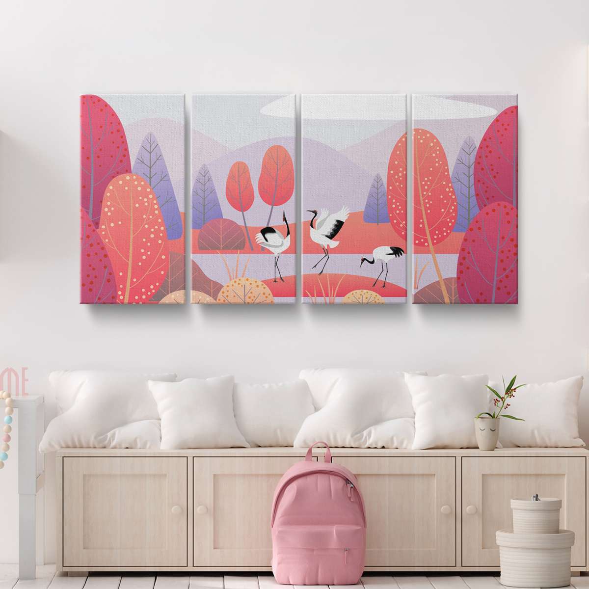 Mokřady v krajině a tanec jeřábů - ilustrace