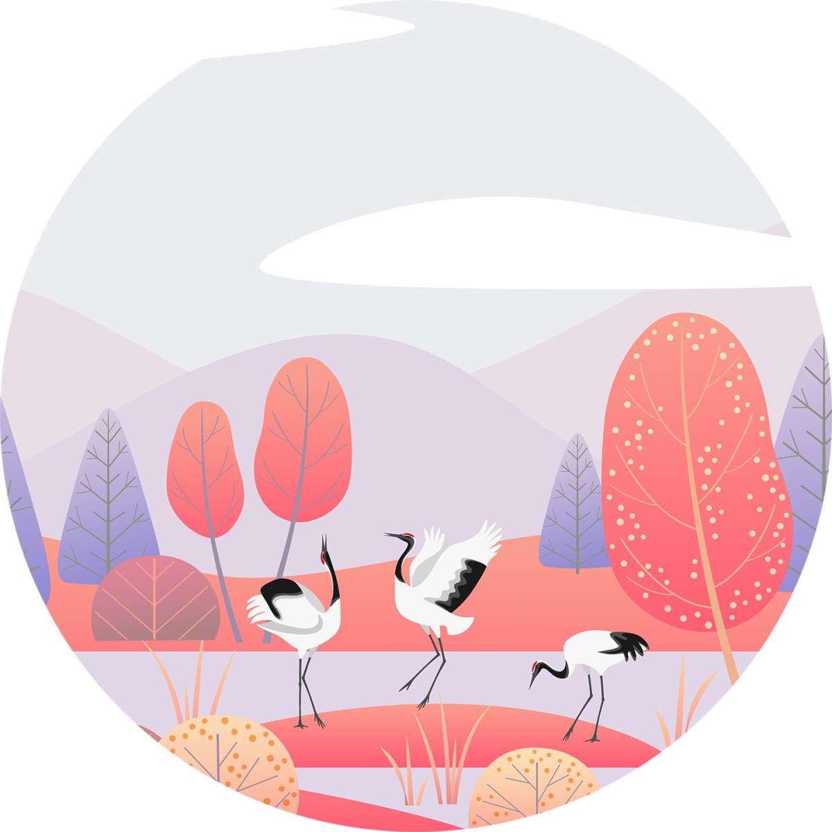 Mokřady v krajině a tanec jeřábů - ilustrace