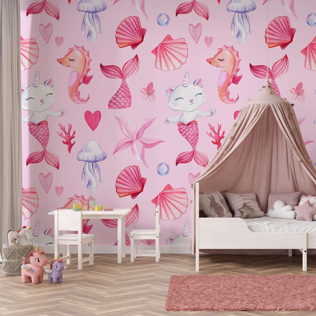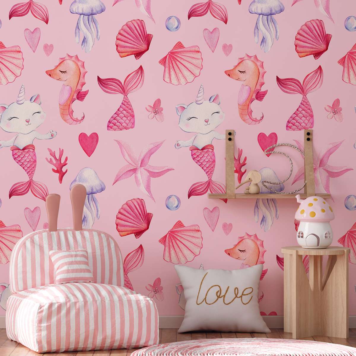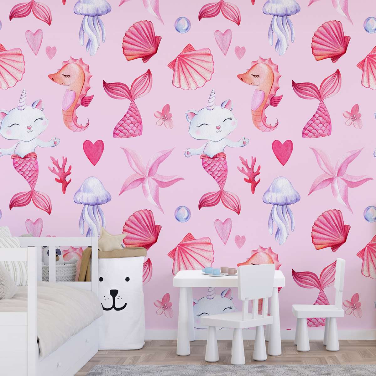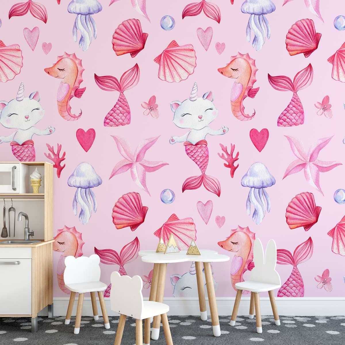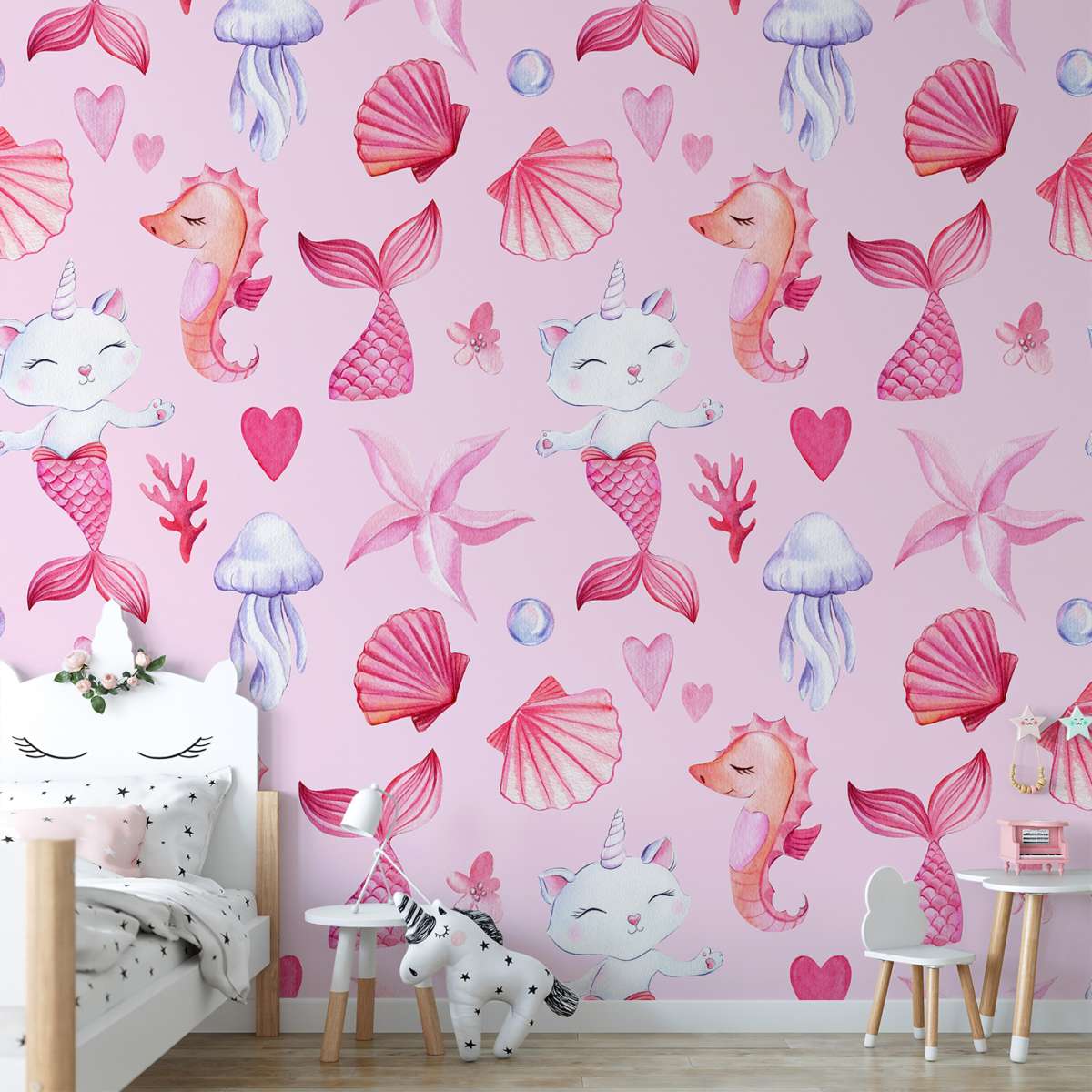 Mořská kočko-panna, růžový vzor - akvarel
