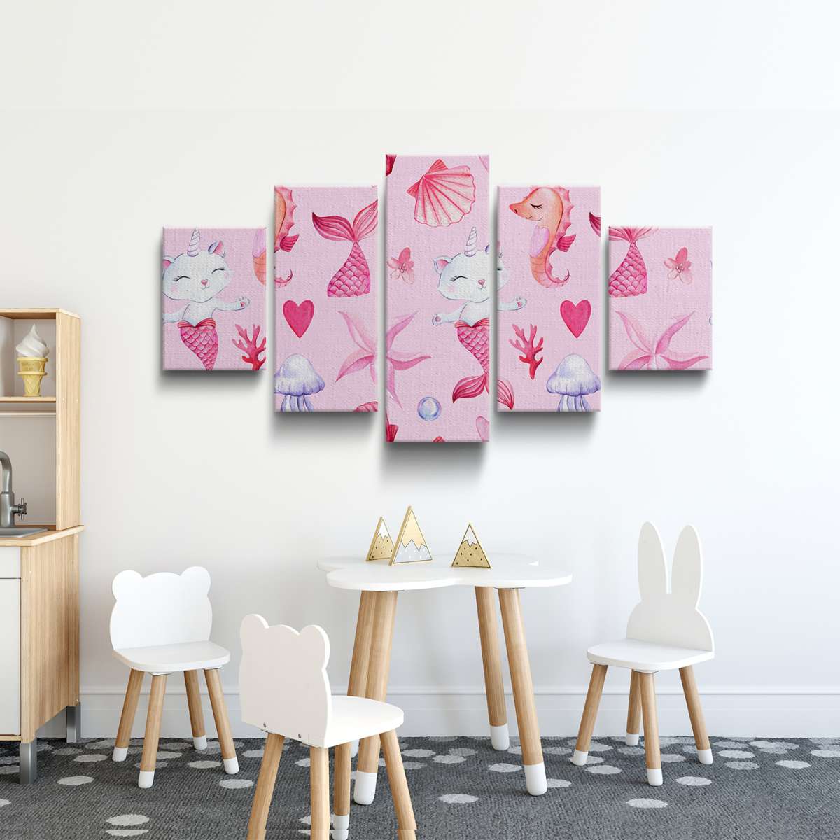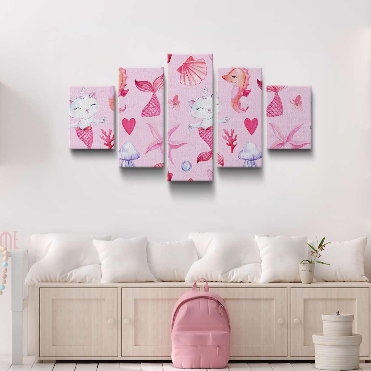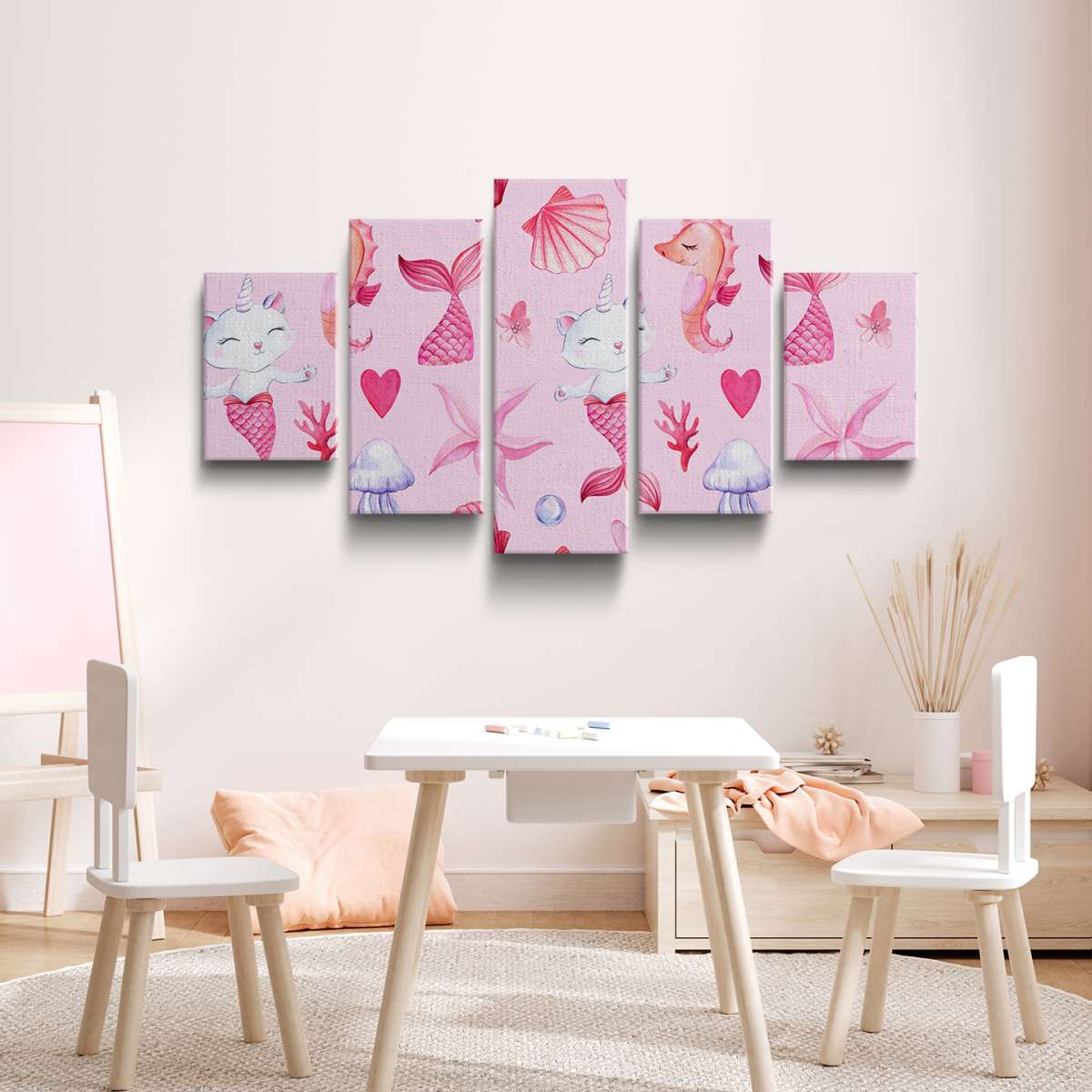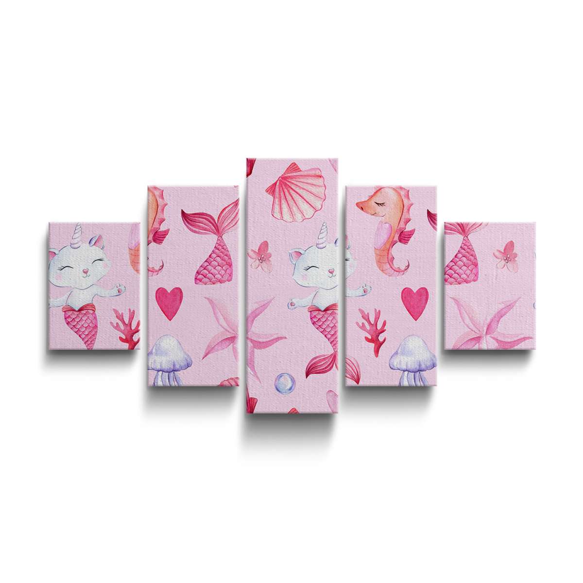 Mořská kočko-panna, růžový vzor - akvarel
