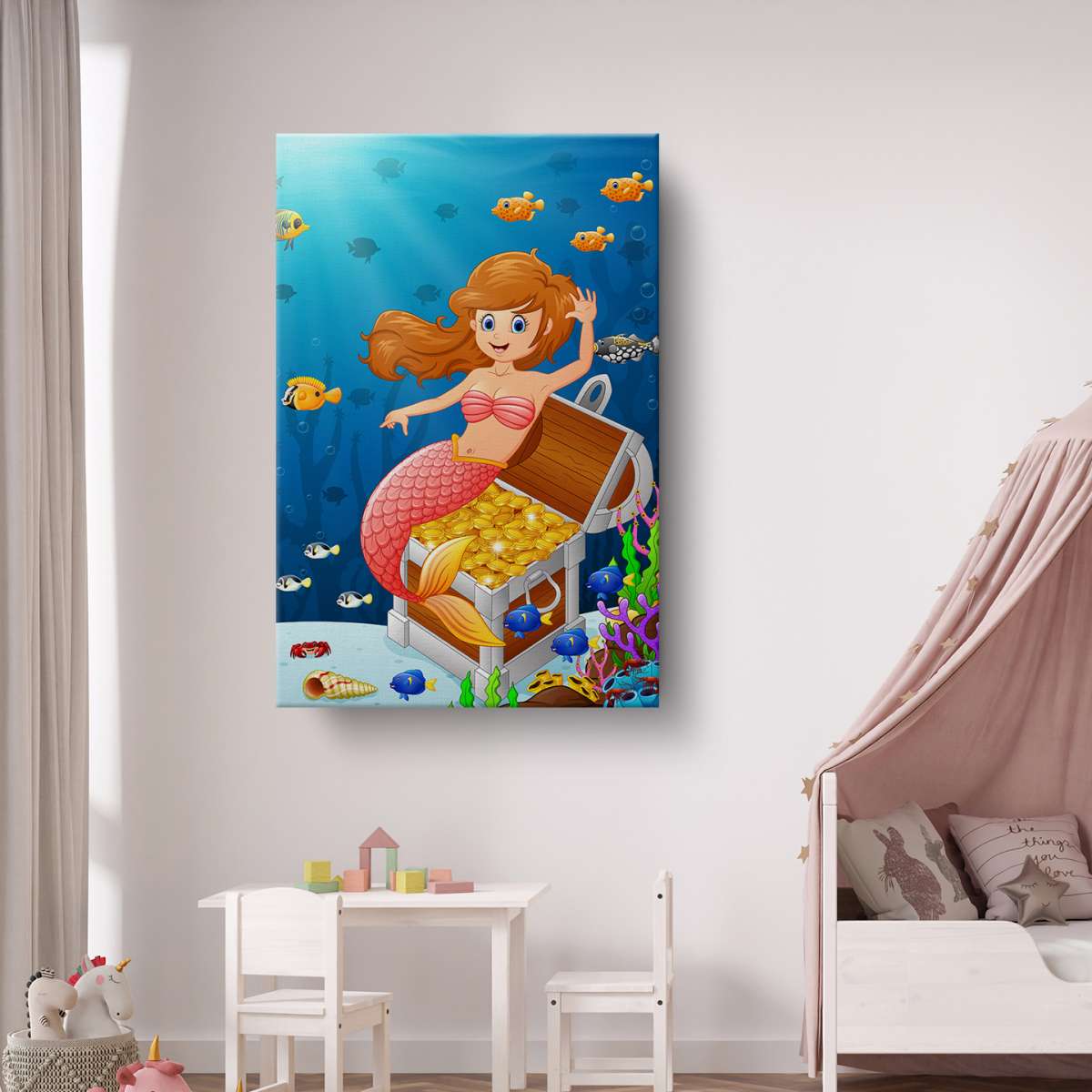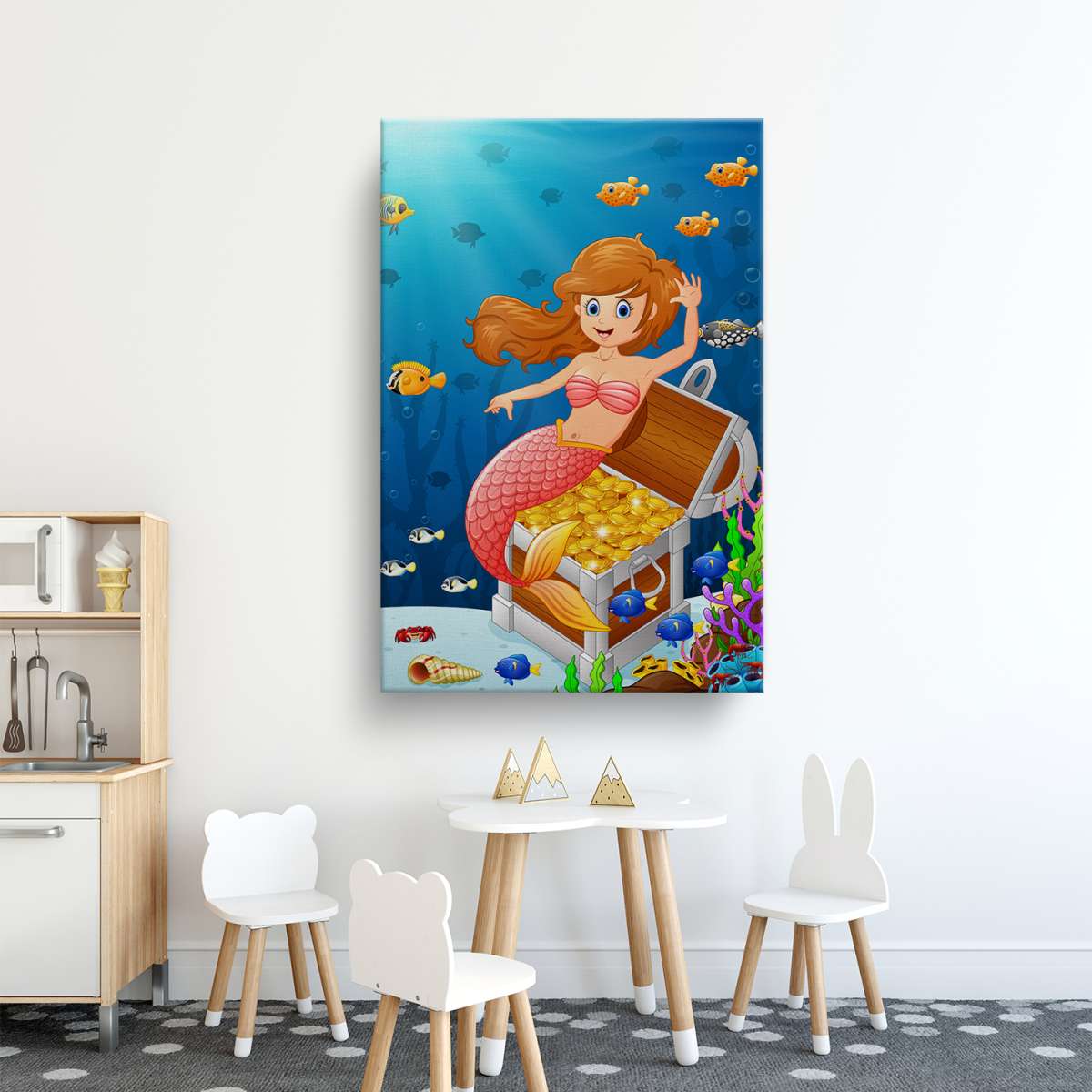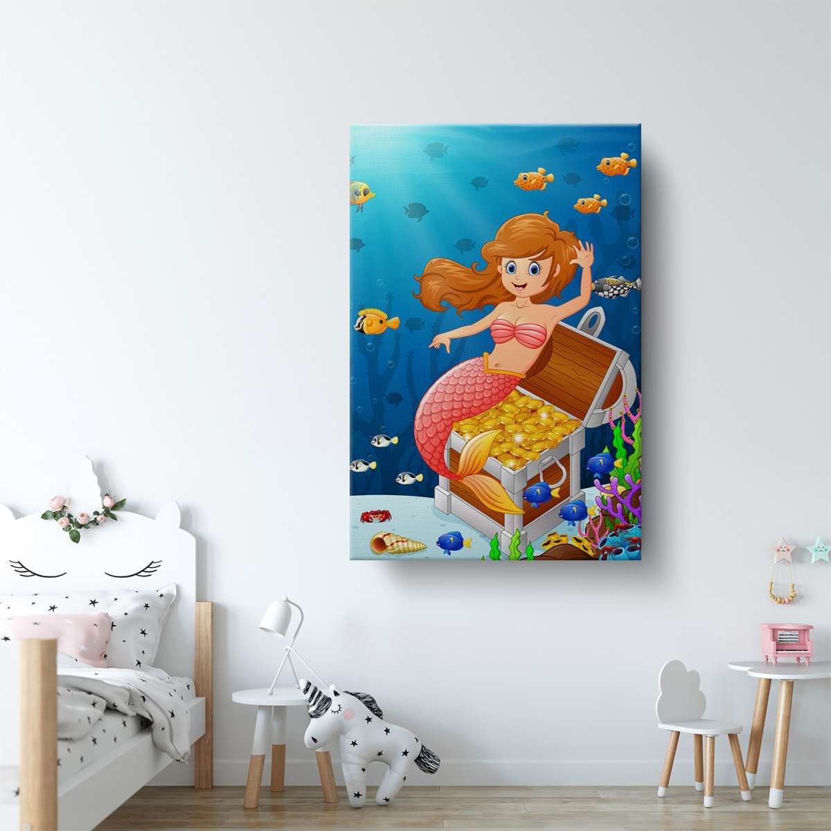 Mořské panny v moři s pokladem - ilustrace