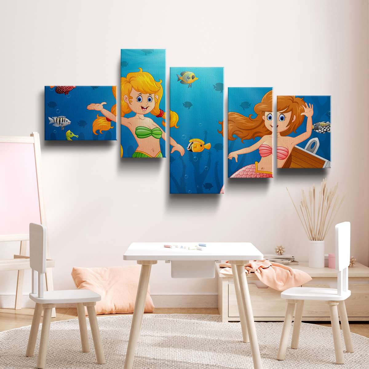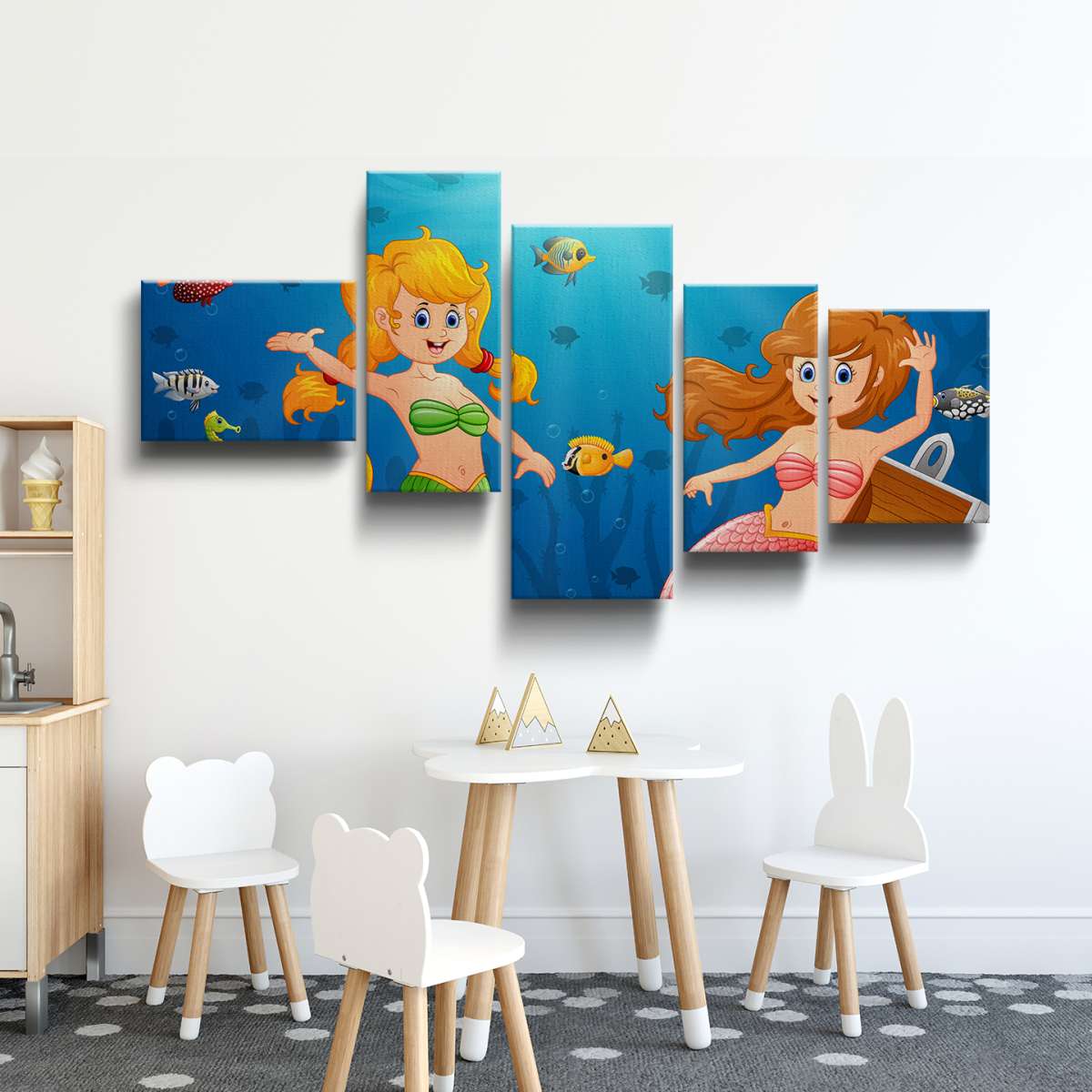 Mořské panny v moři s pokladem - ilustrace