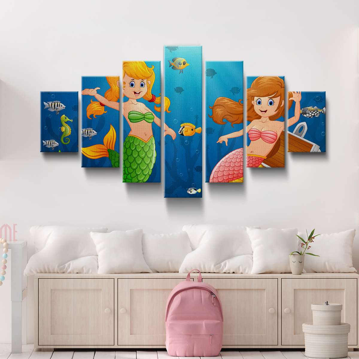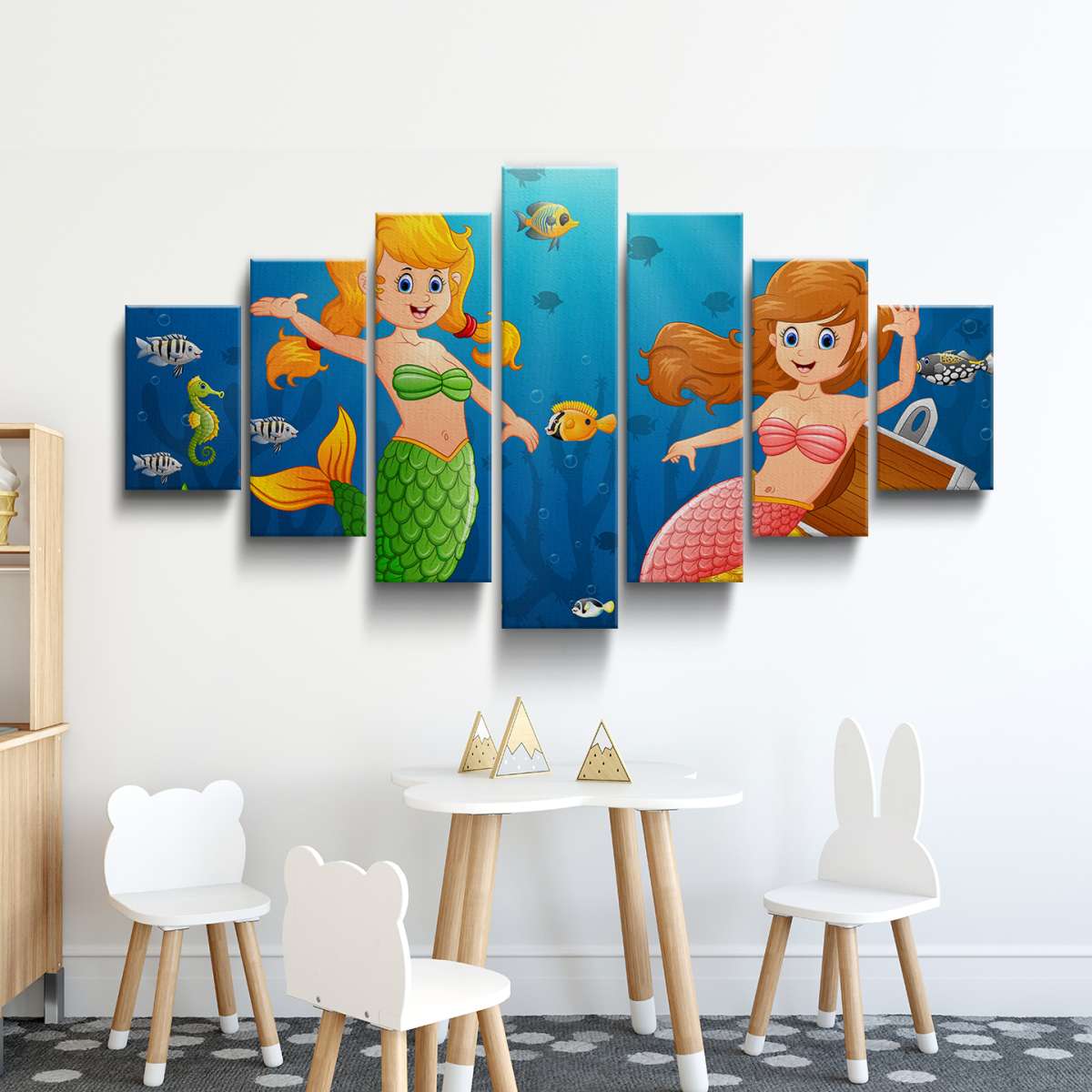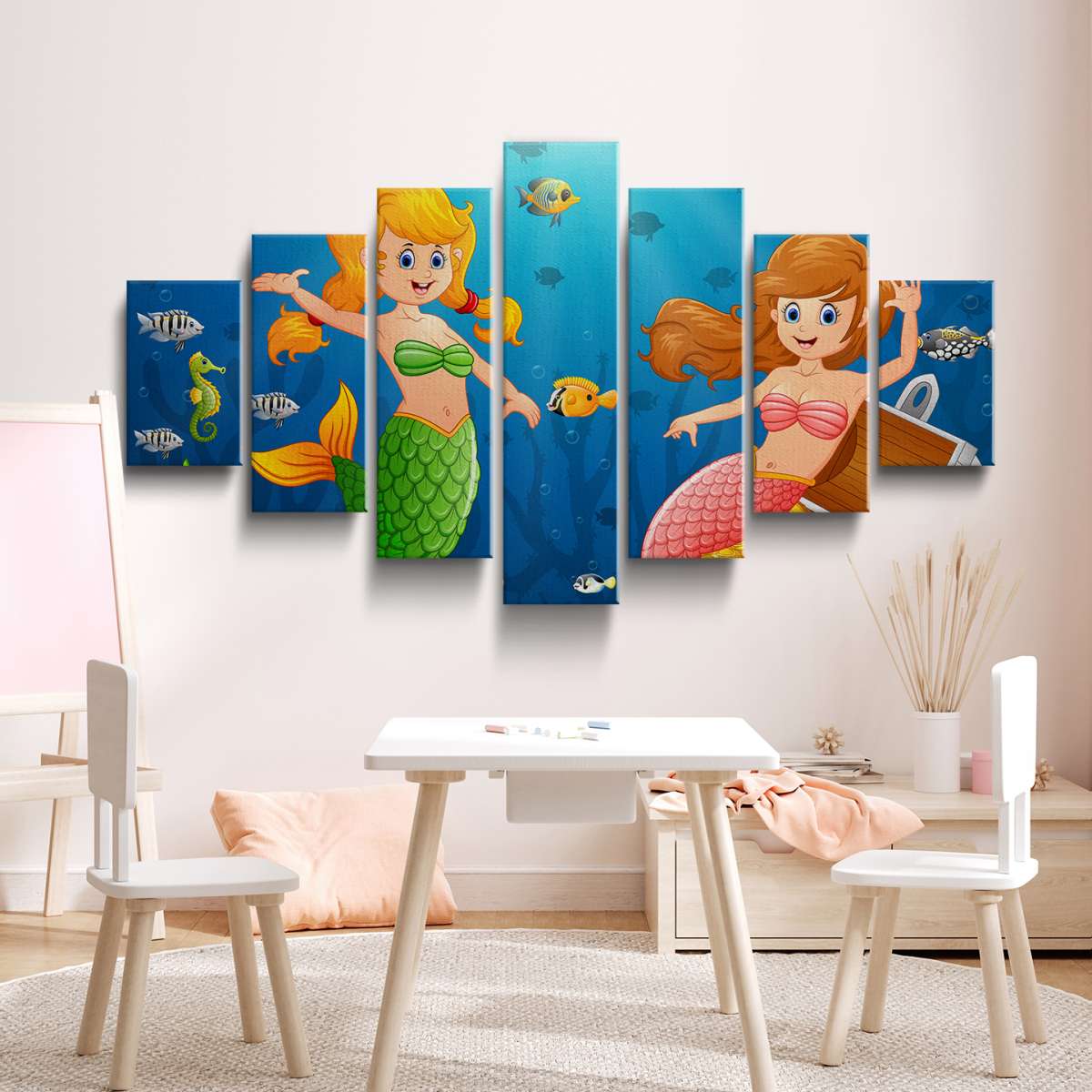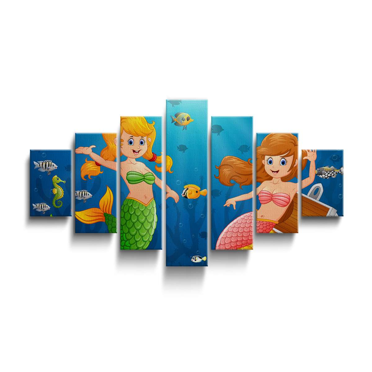 Mořské panny v moři s pokladem - ilustrace