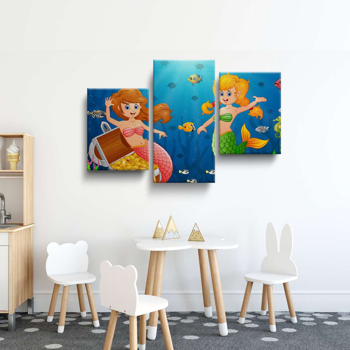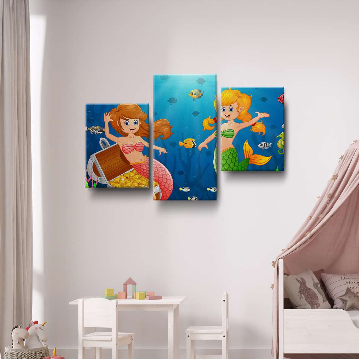 Mořské panny v moři s pokladem - ilustrace