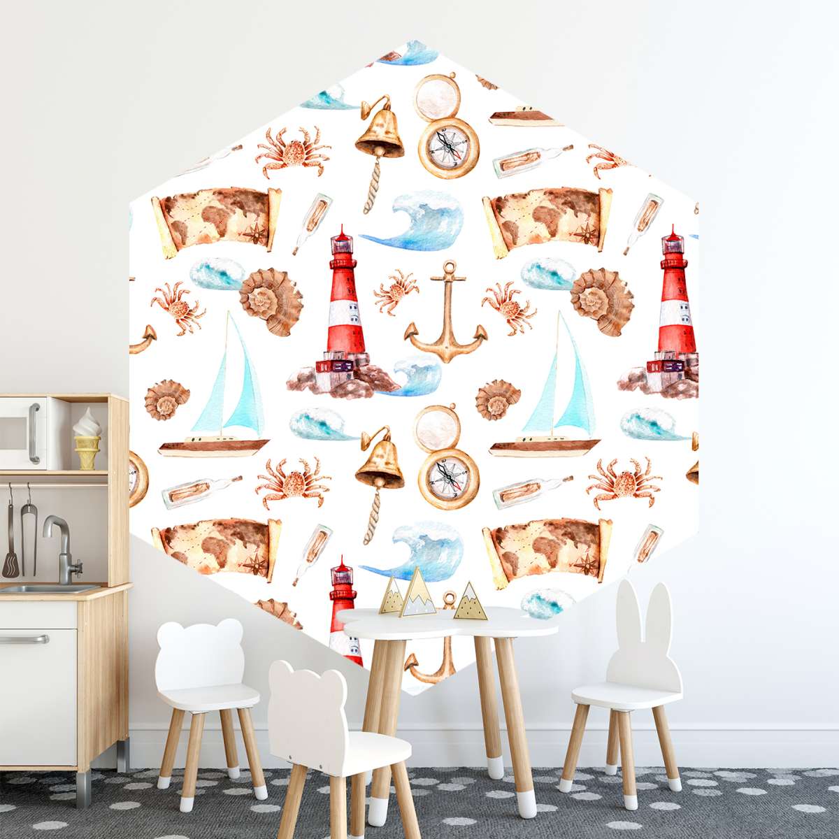 Mořský vzor - cestování lodí - akvarel
