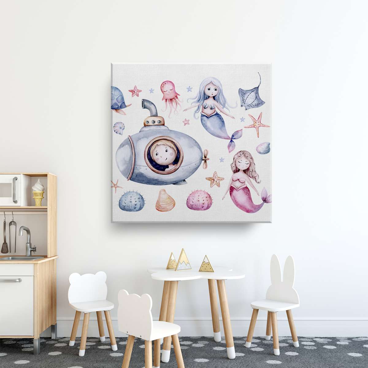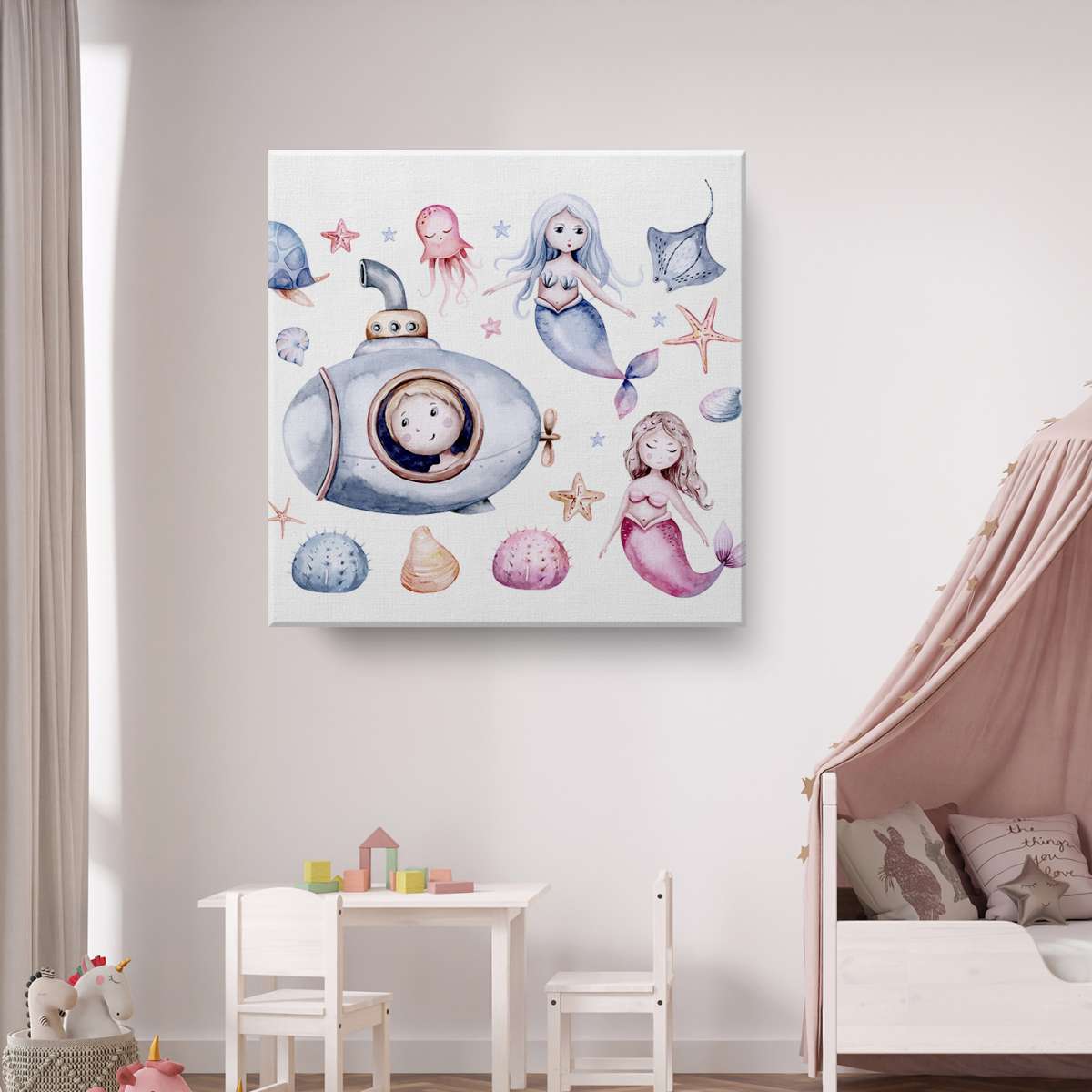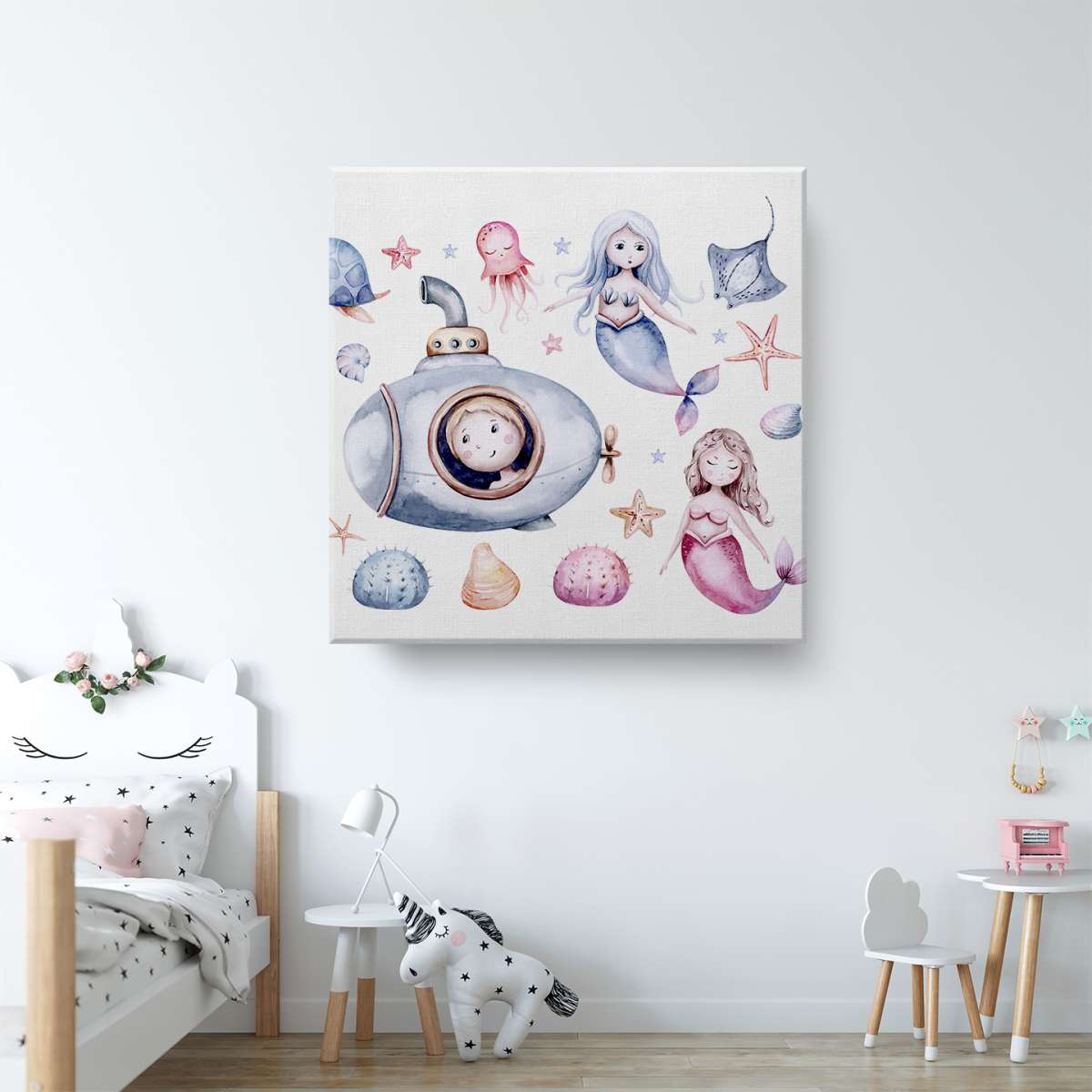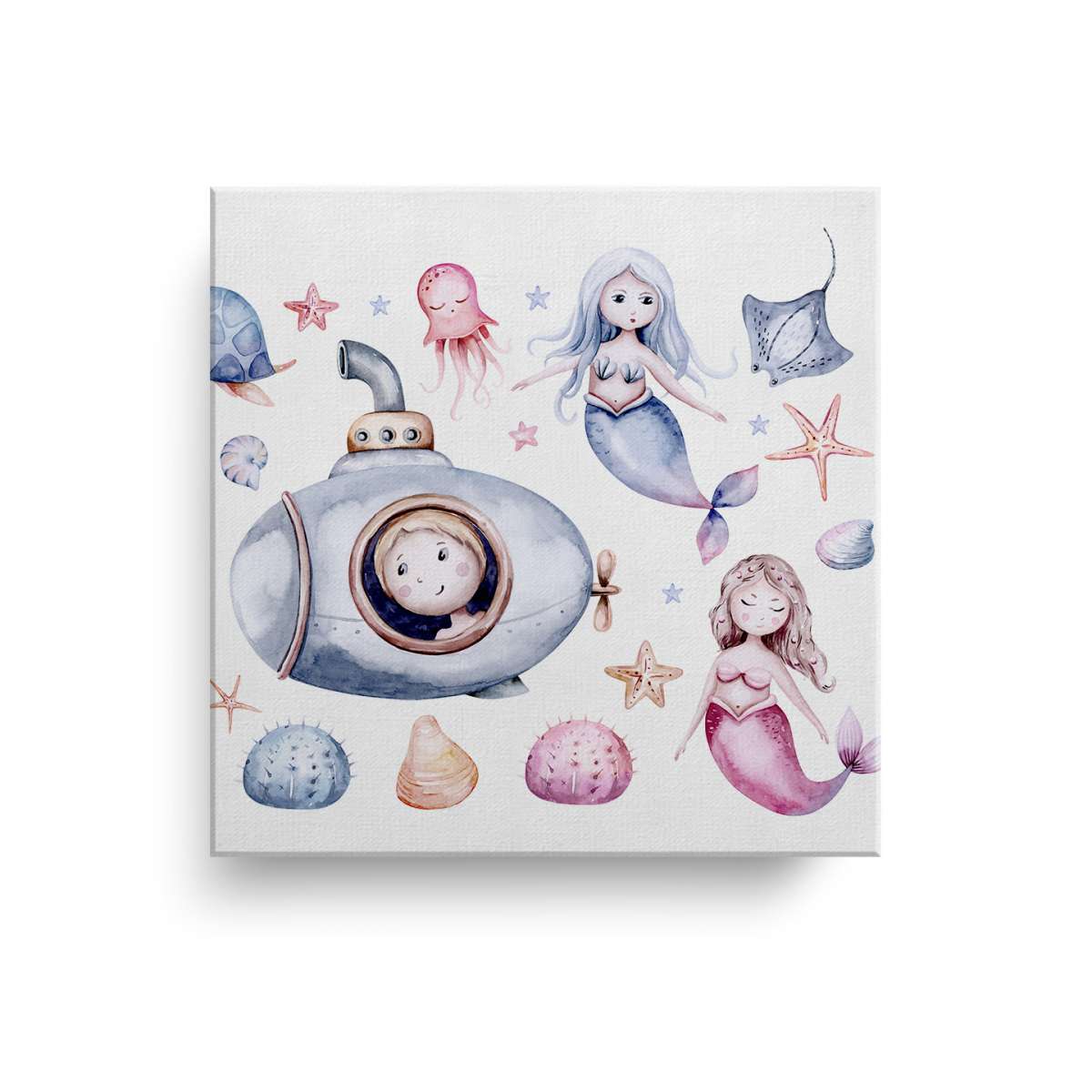 Mořský život s mořskými pannami - akvarel